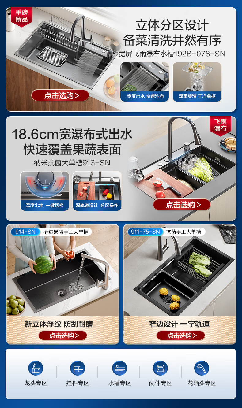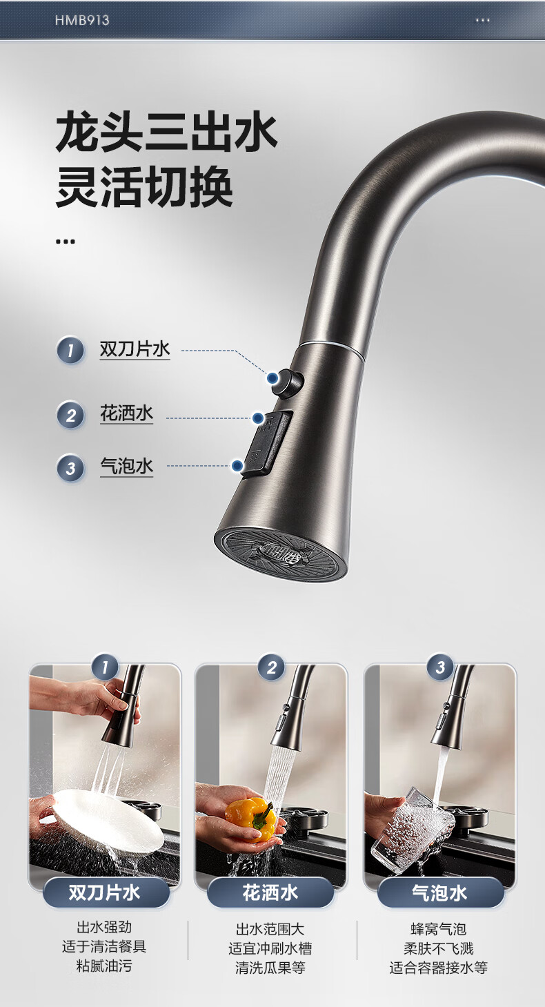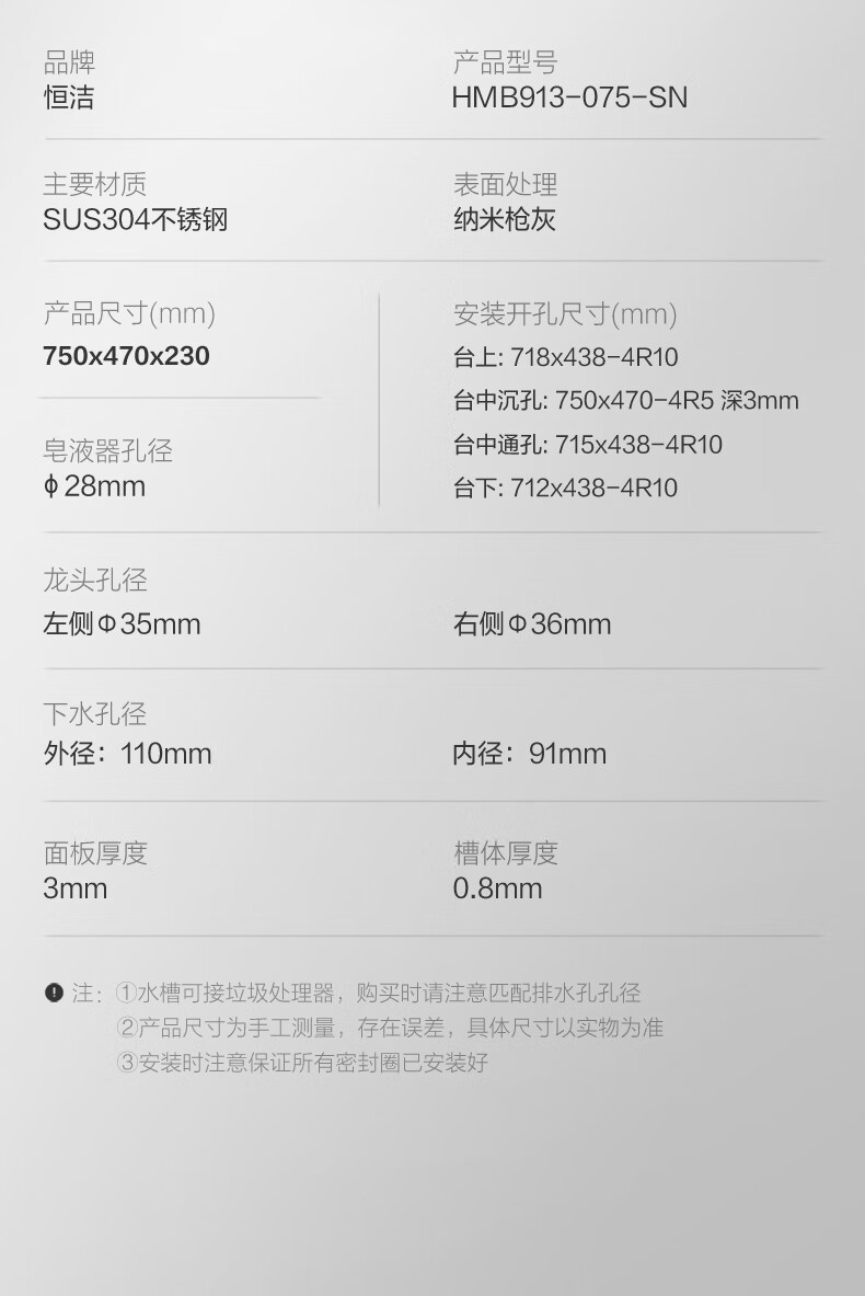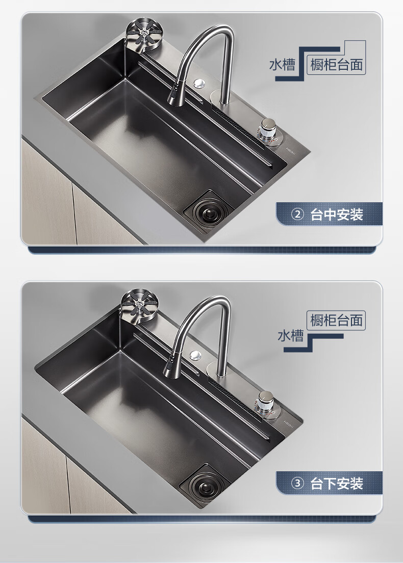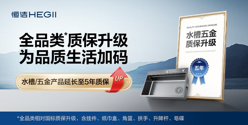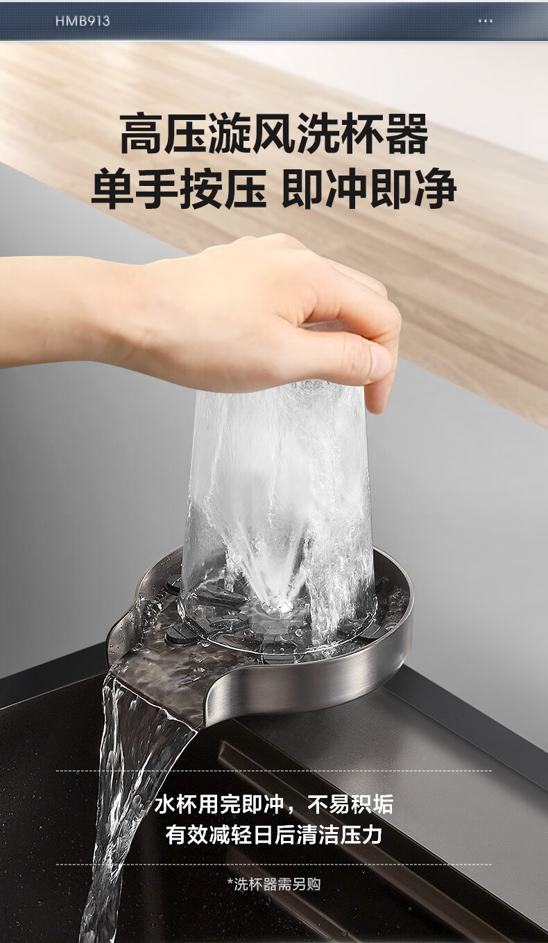 恒洁(HEGII)水槽大单槽 不锈钢纳米涂层飞雨瀑布洗碗洗菜盆厨房水槽HMB913-SN