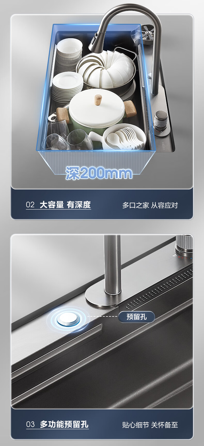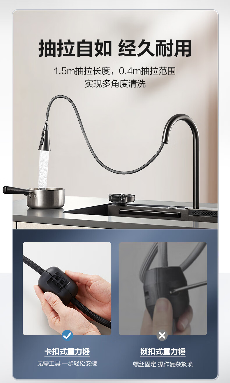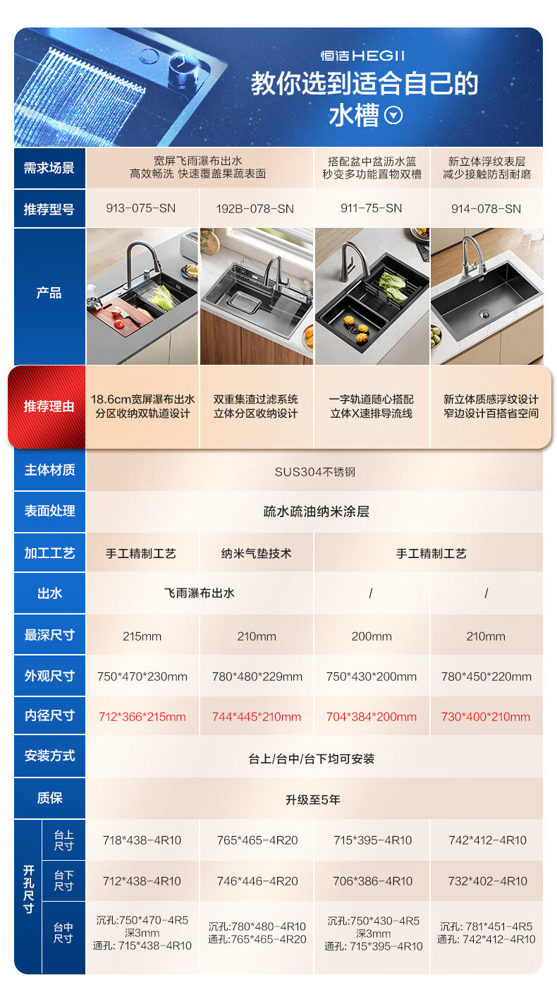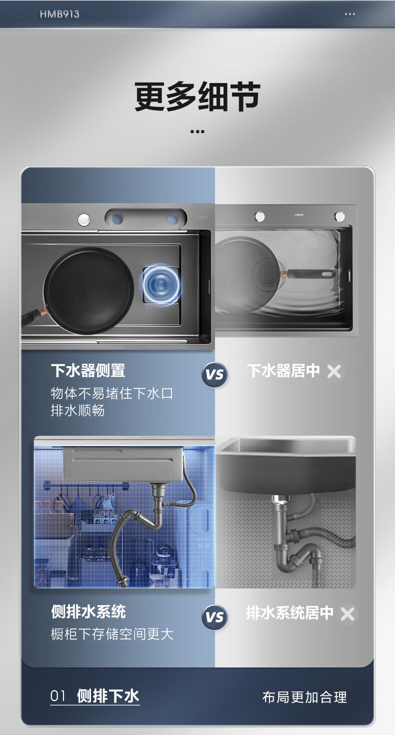 恒洁(HEGII)水槽大单槽 不锈钢纳米涂层飞雨瀑布洗碗洗菜盆厨房水槽HMB913-SN