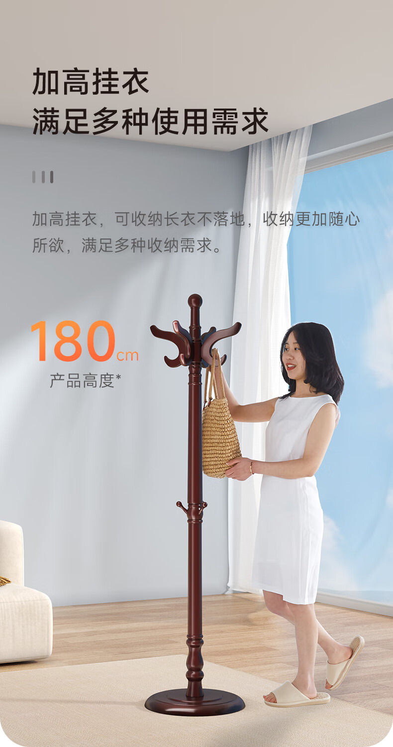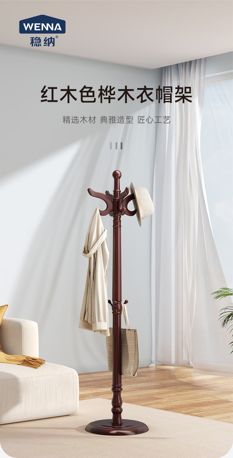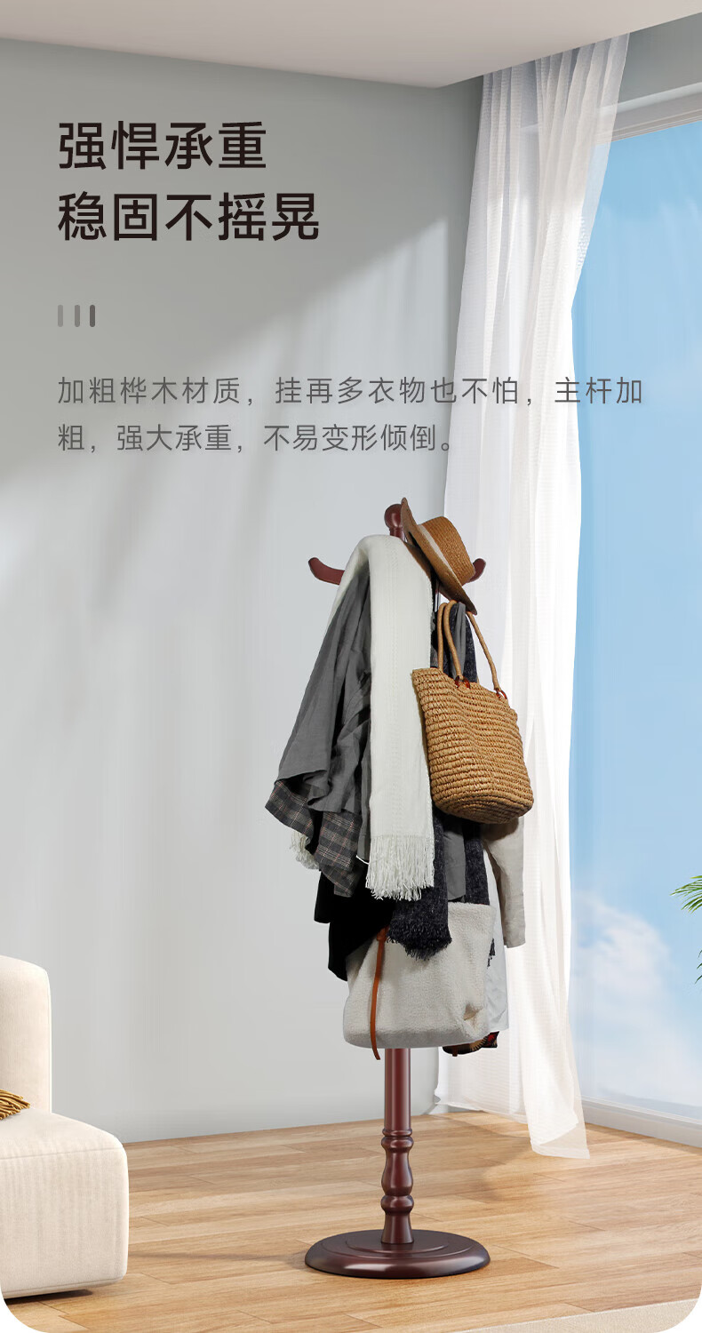 稳纳衣帽架实木挂衣架落地办公室典雅衣架客厅衣服架子卧室衣架
