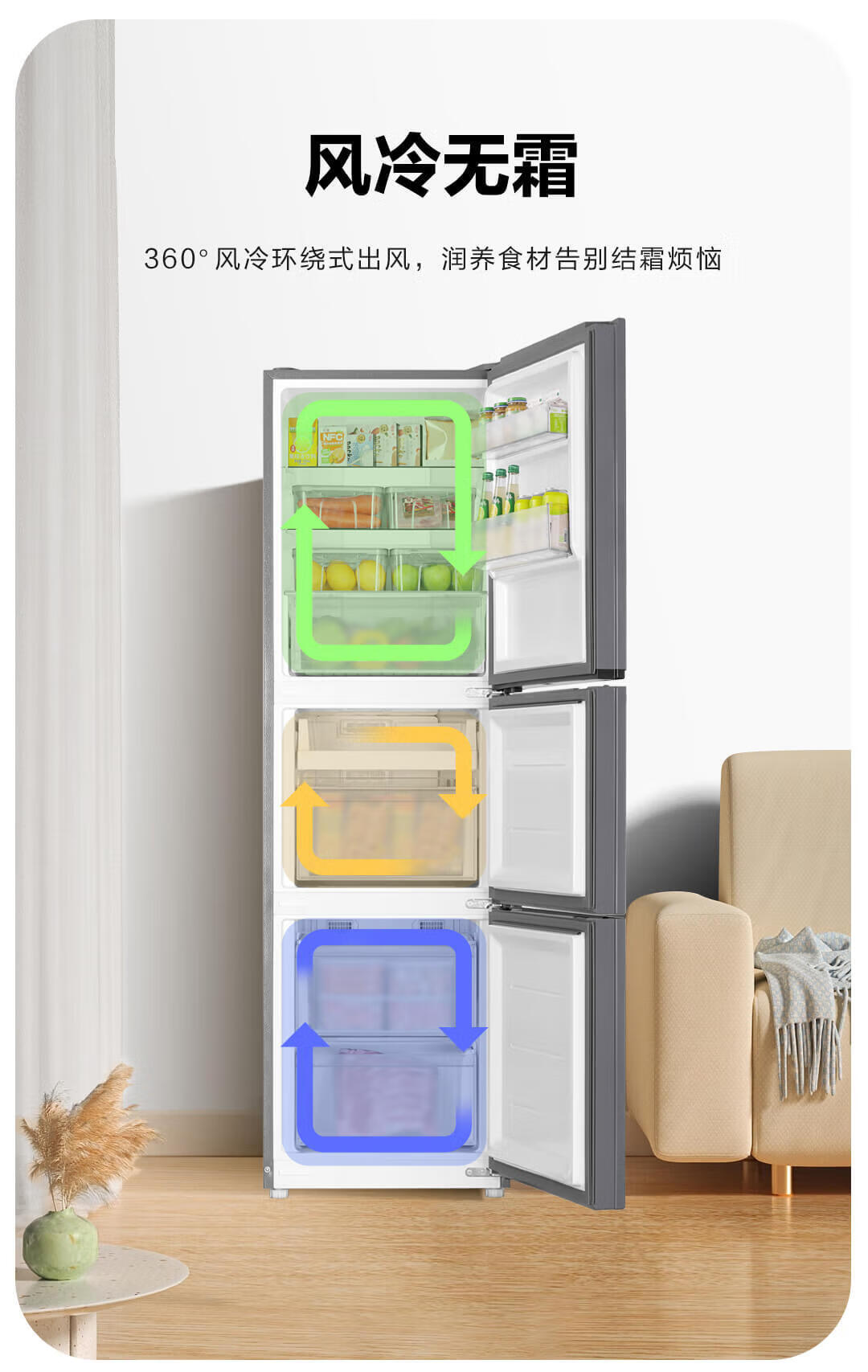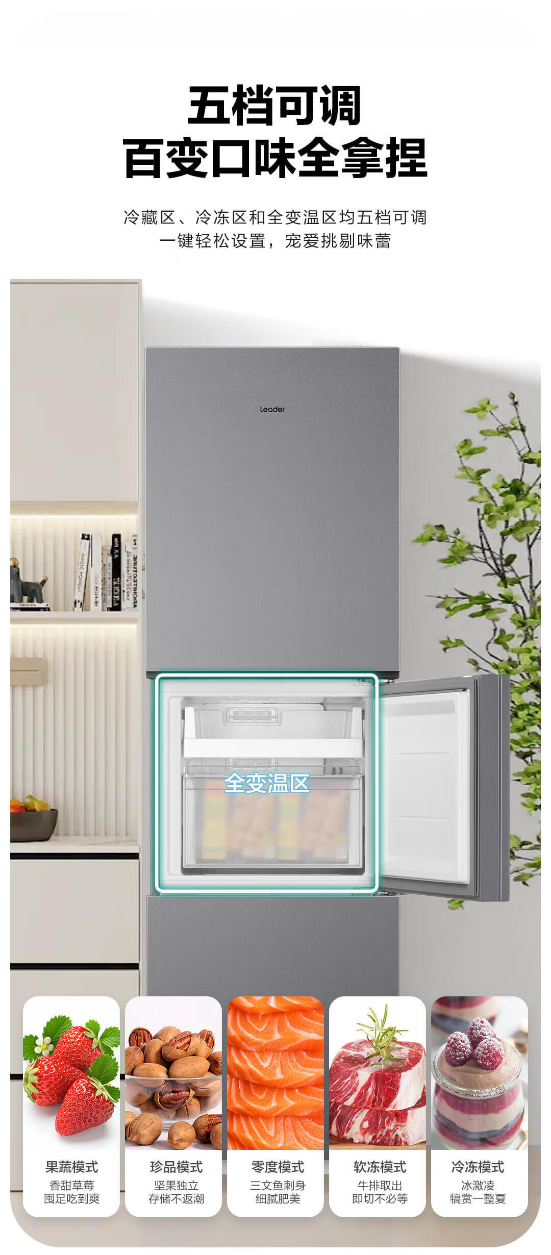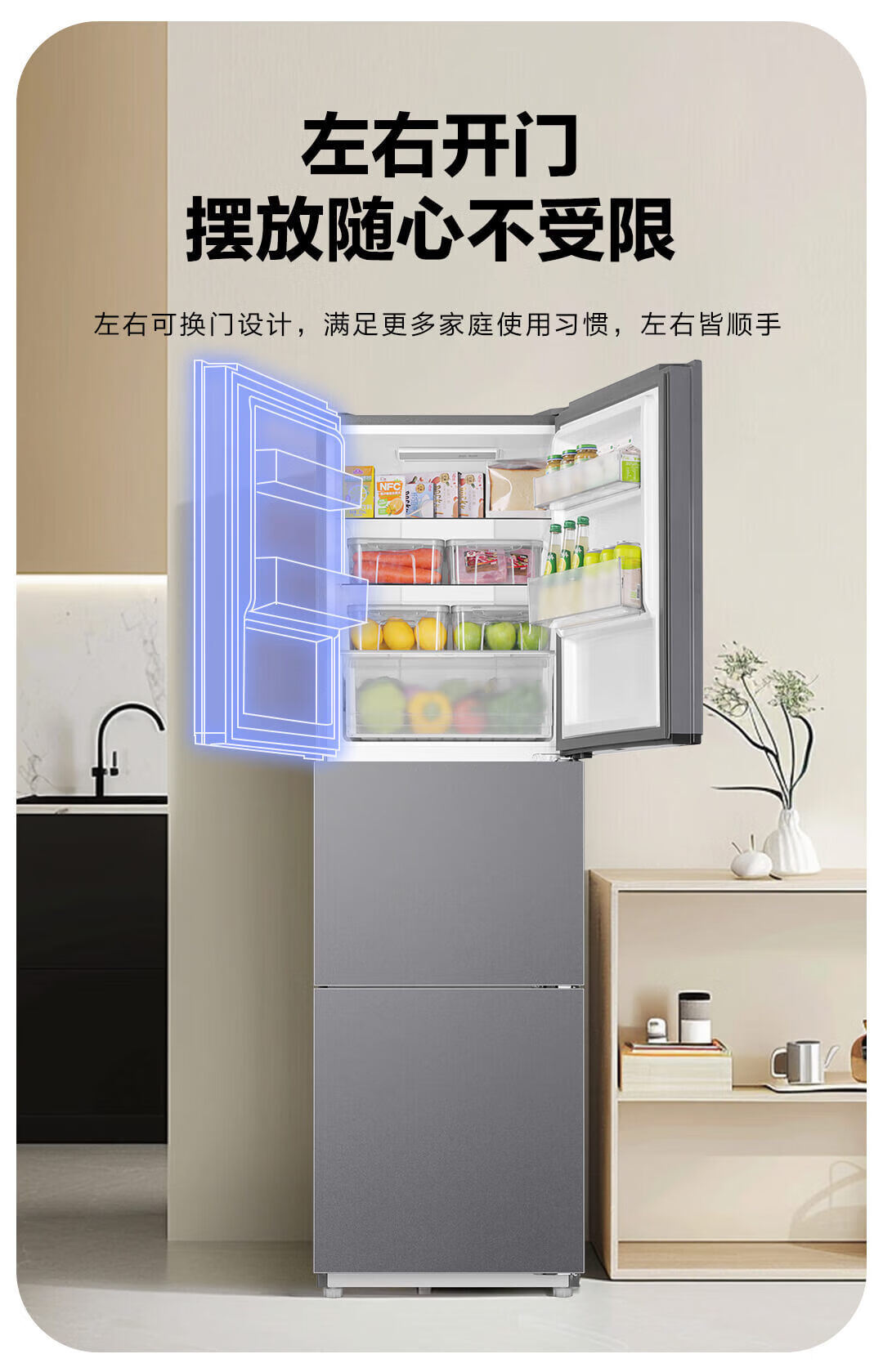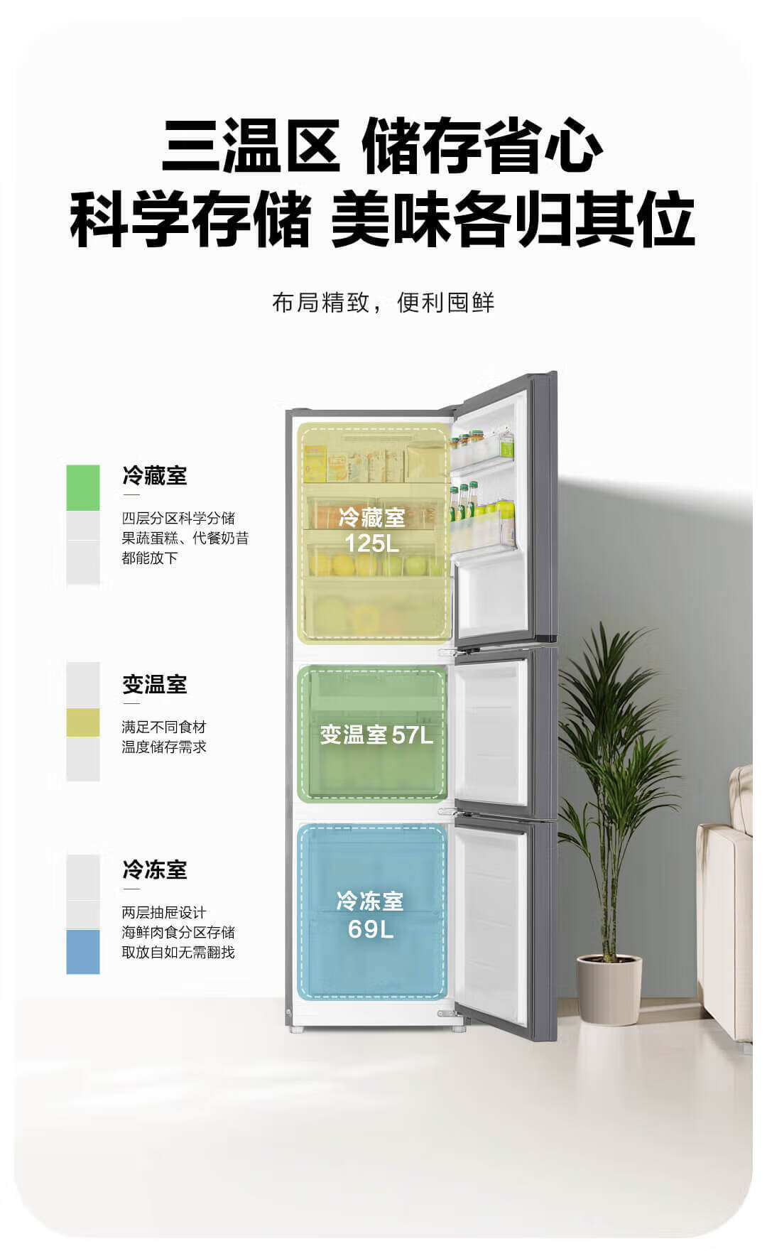 海尔(Haier)冰箱三开门 家用一级能效251升双变频风冷无霜 出租房小型家电换新国家补贴20%海尔统帅(leader) 黑金净化+中门全变温+左右开门可调