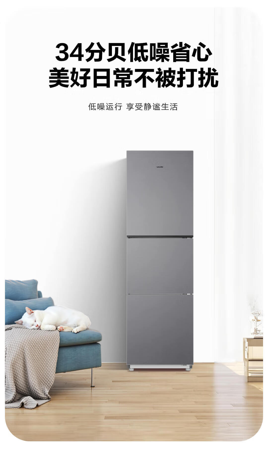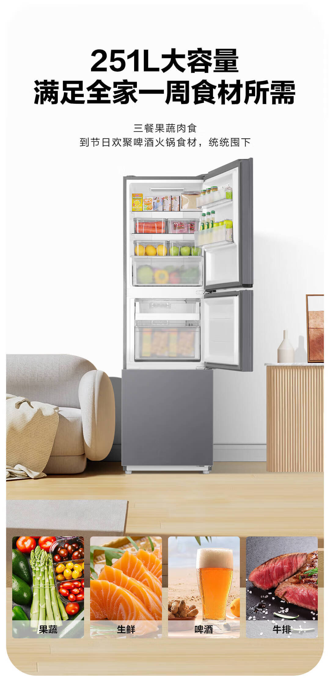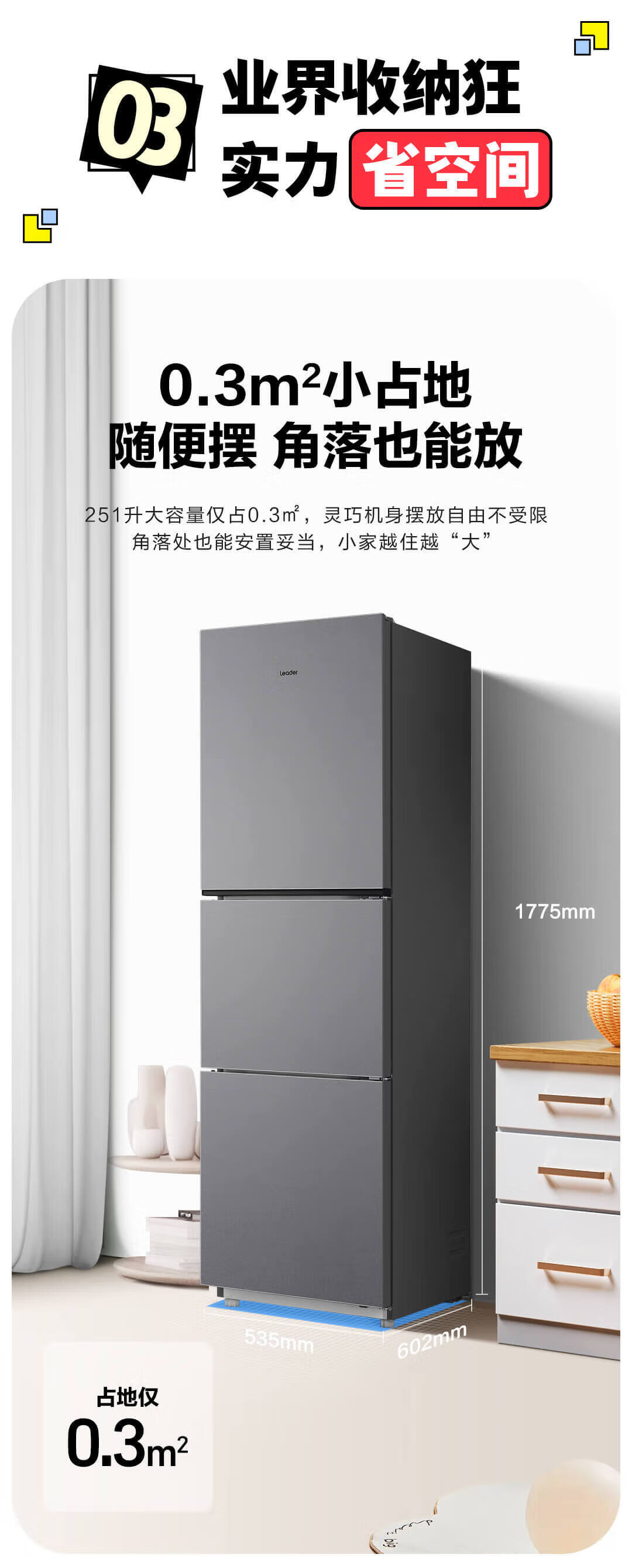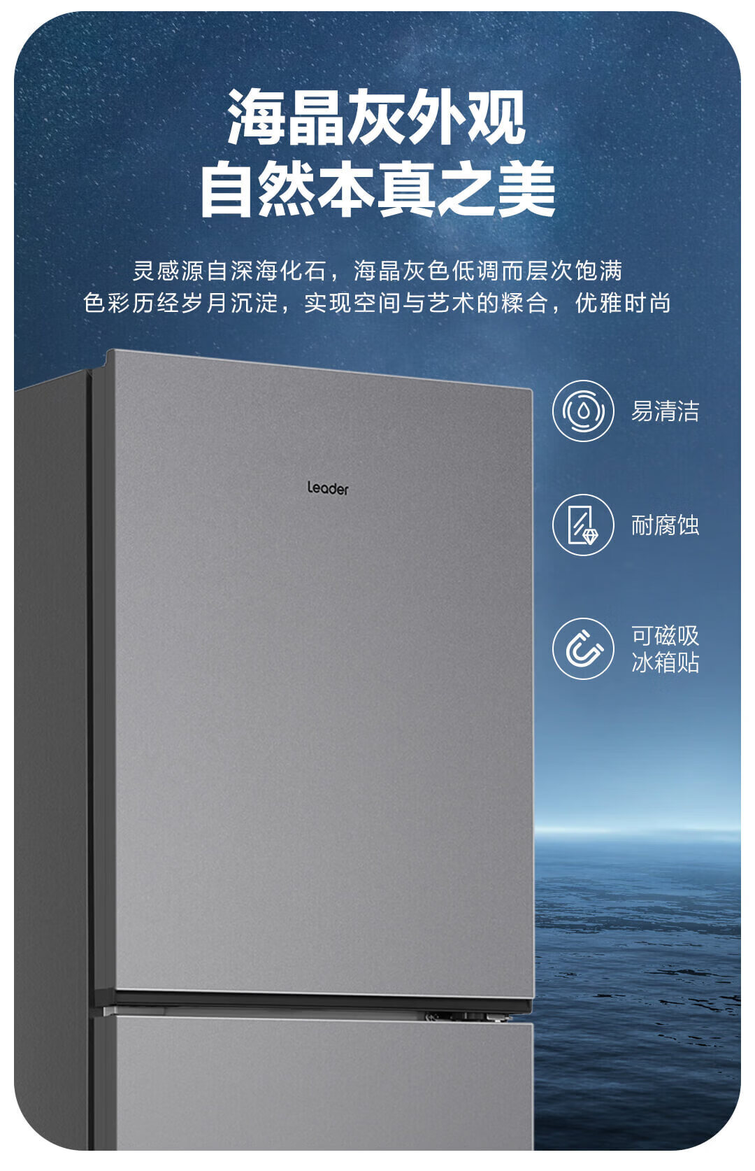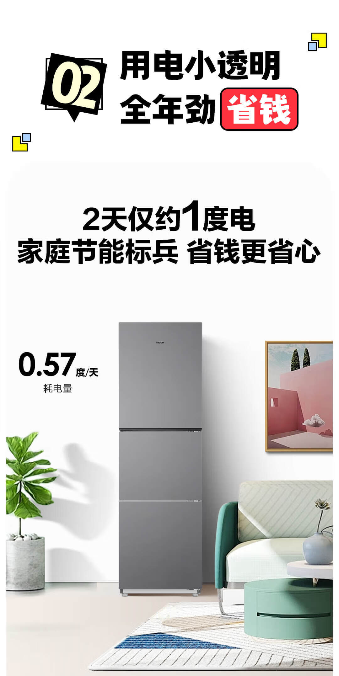海尔(Haier)冰箱三开门 家用一级能效251升双变频风冷无霜 出租房小型家电换新国家补贴20%海尔统帅(leader) 黑金净化+中门全变温+左右开门可调
