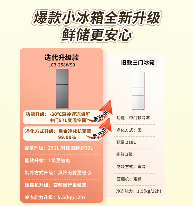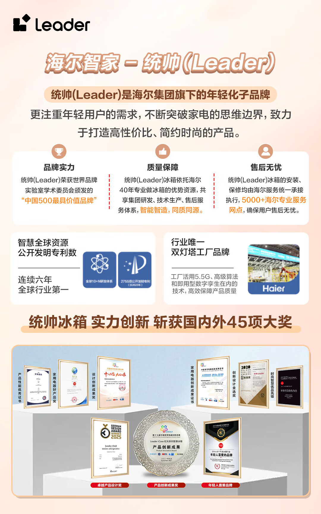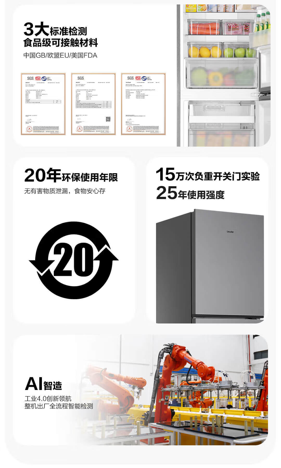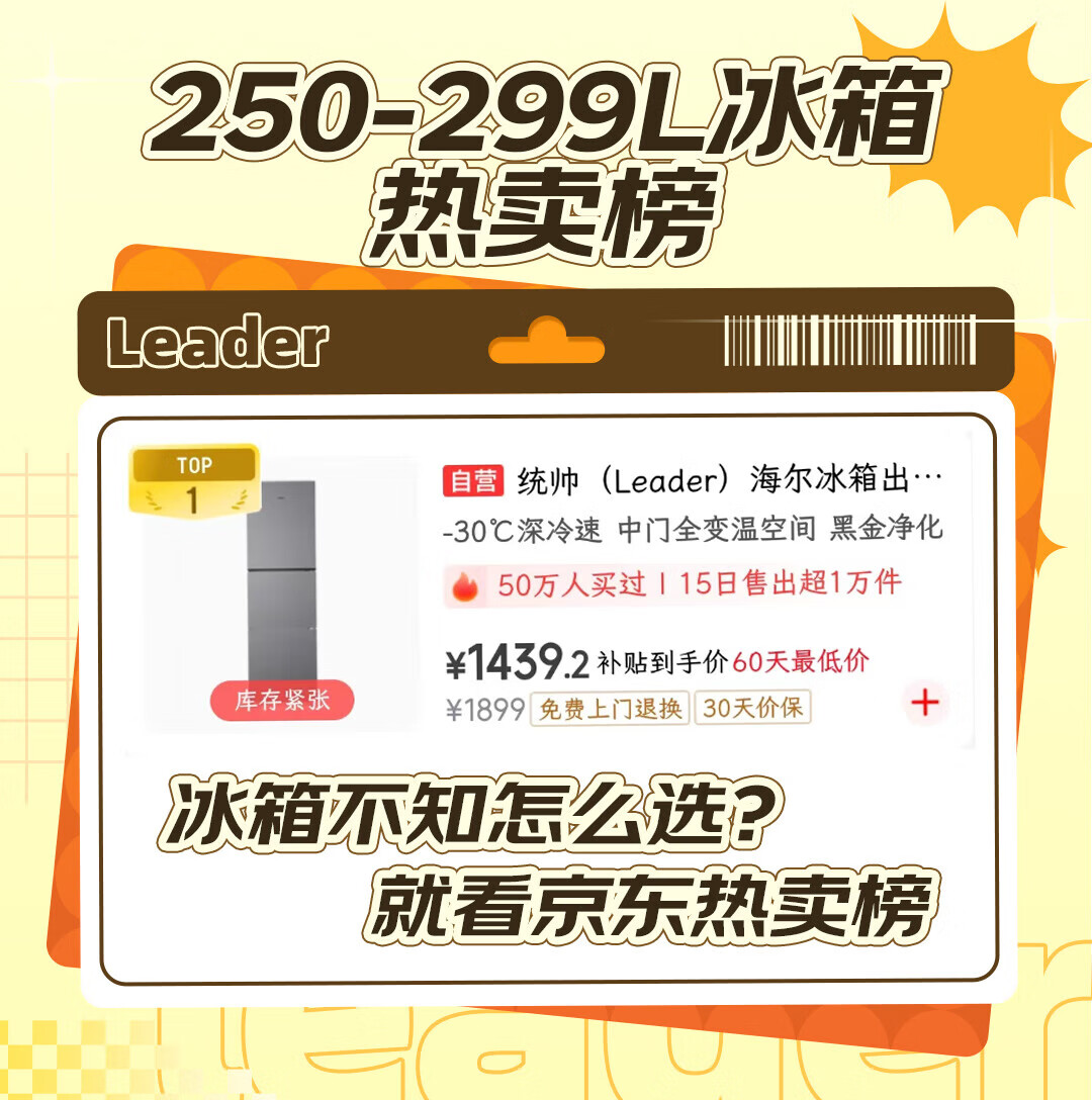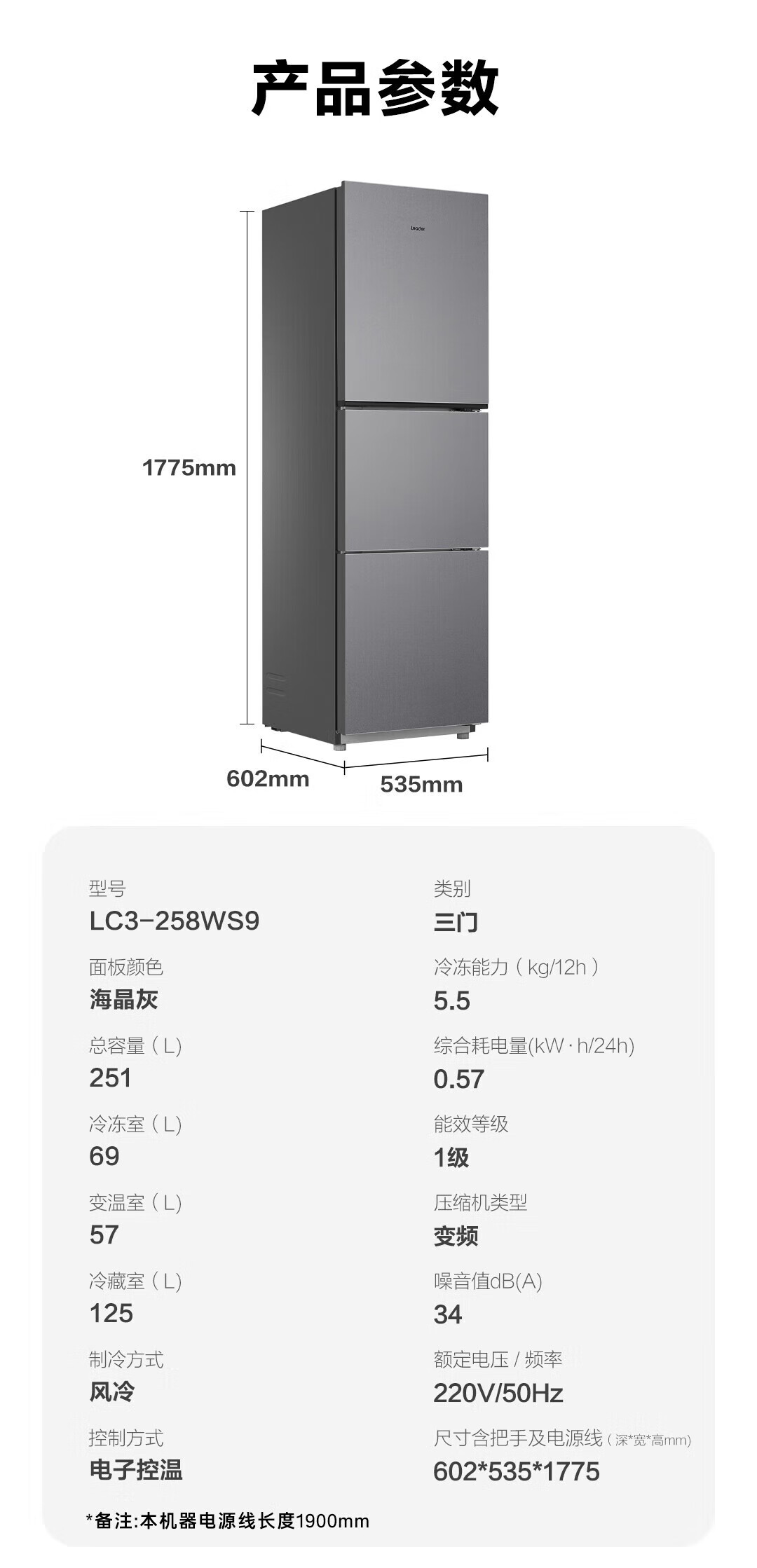 海尔(Haier)冰箱三开门 家用一级能效251升双变频风冷无霜 出租房小型家电换新国家补贴20%海尔统帅(leader) 黑金净化+中门全变温+左右开门可调