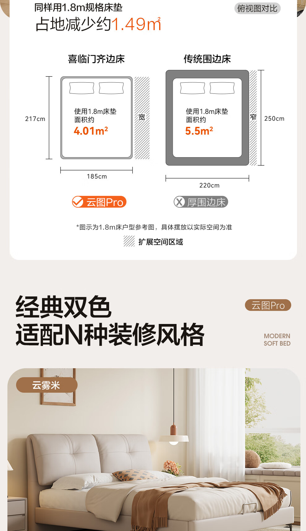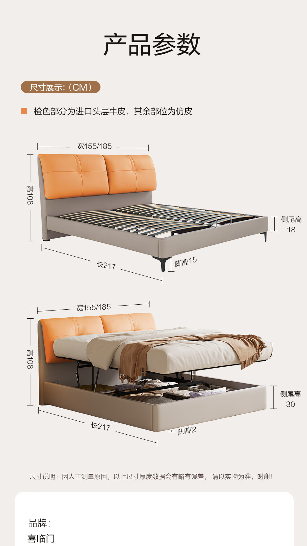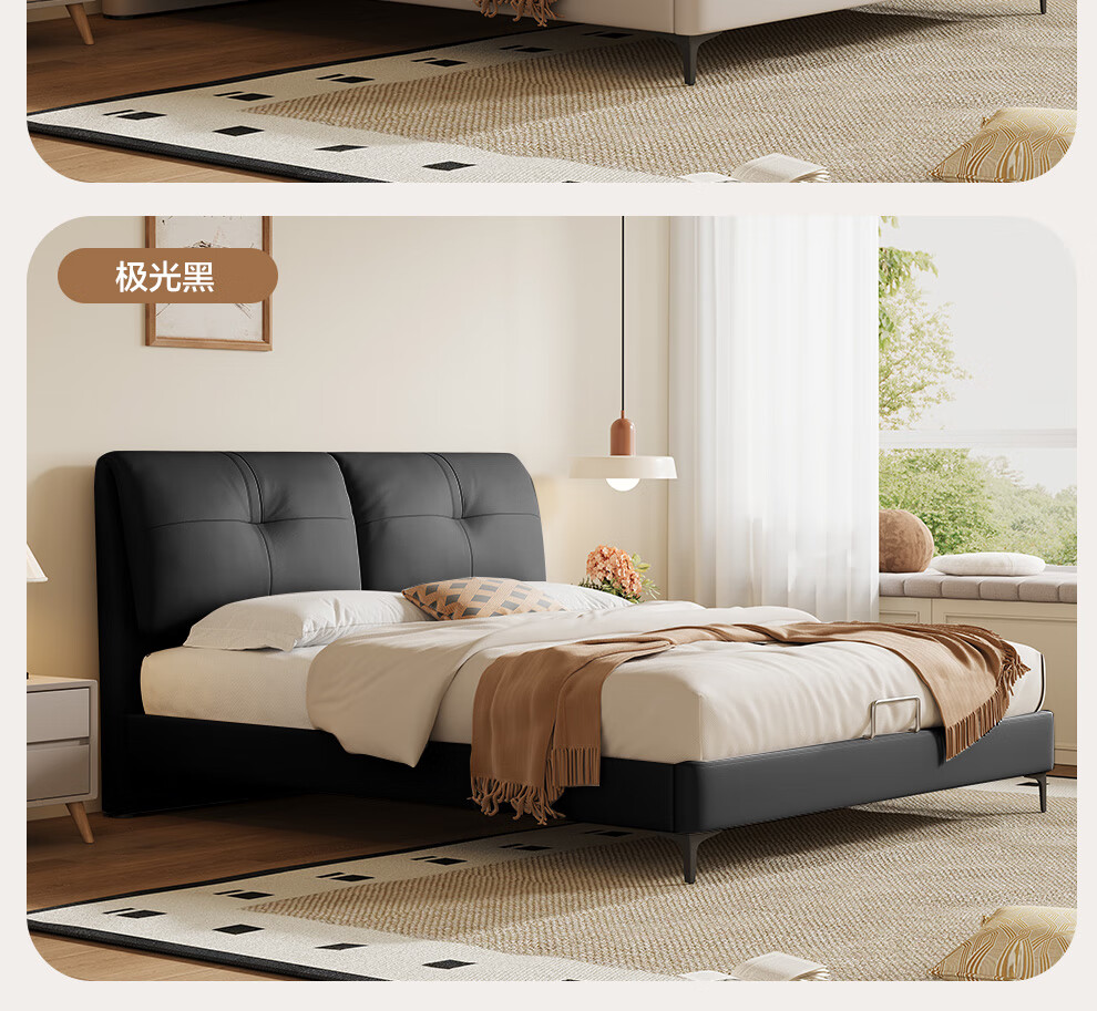 喜临门真皮双人大床主次卧婚床现代简约云图pro[床架] 云雾米+白骑士PLUS床垫 1.8*2米