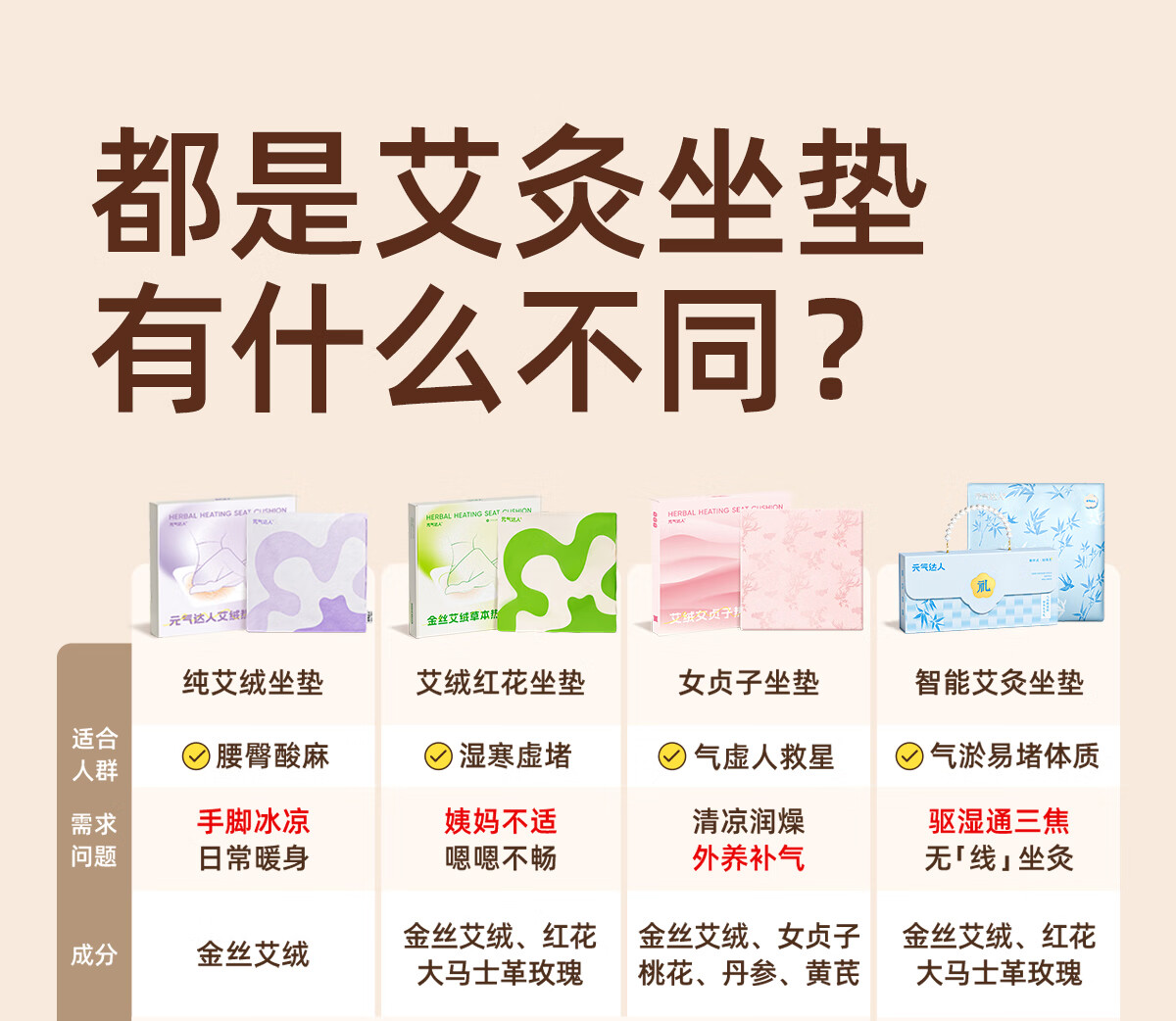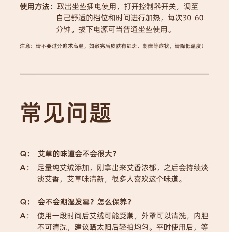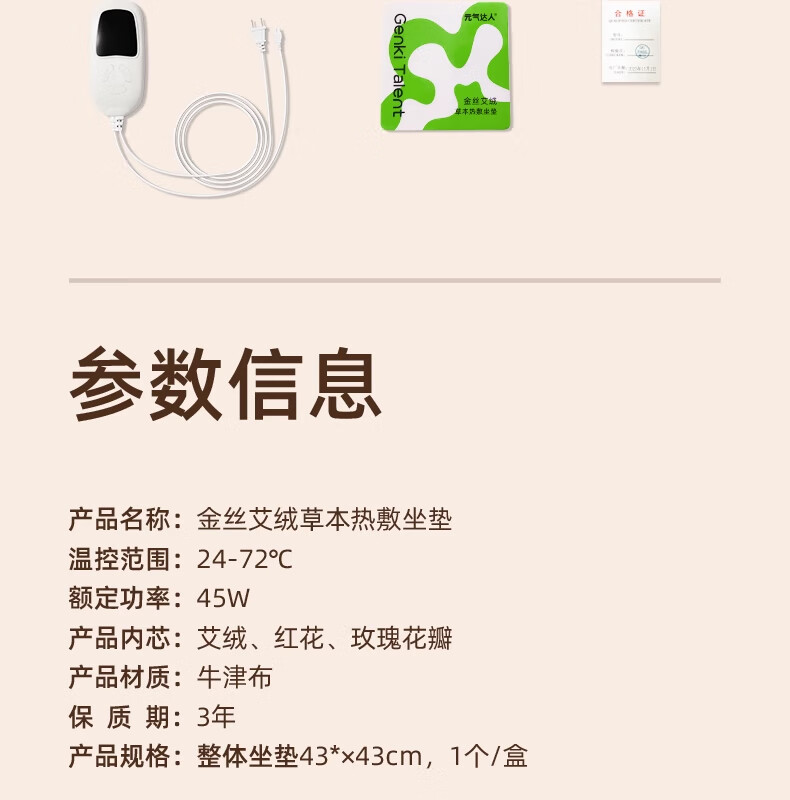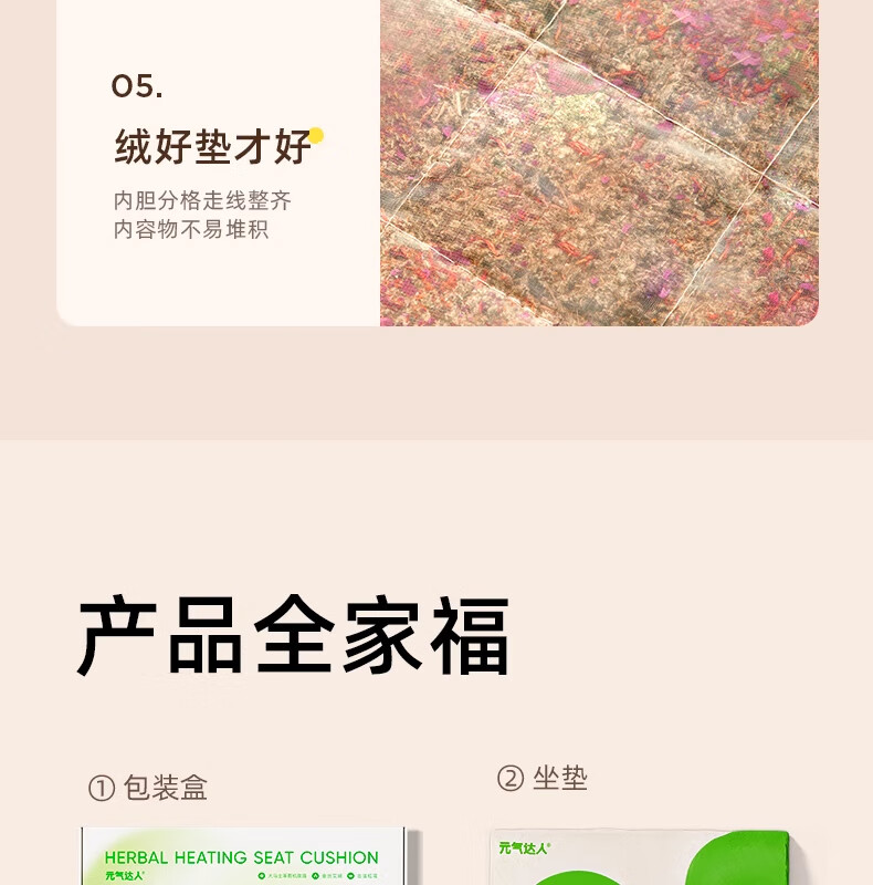 元气达人艾灸坐垫艾草热敷臀部护理加热护理热敷臀腰腹足办公居家久坐 90%人选择【艾绒红花坐垫1套】