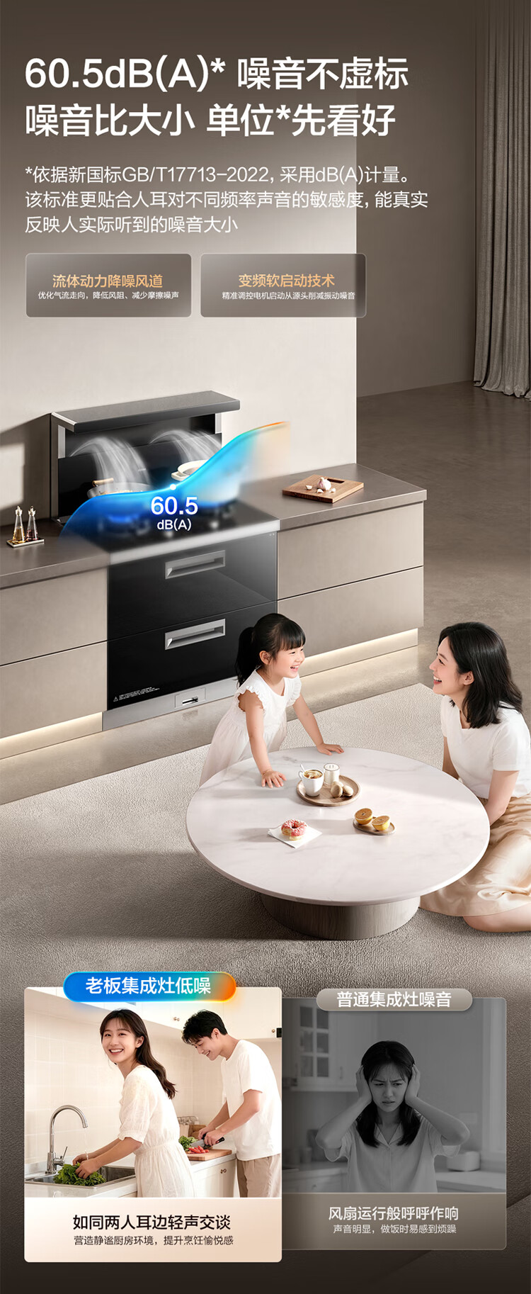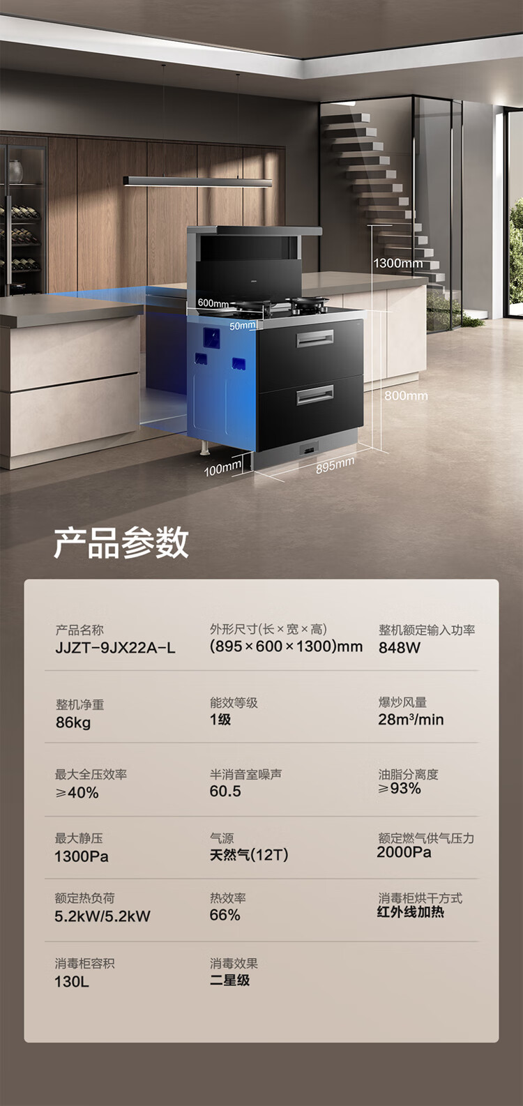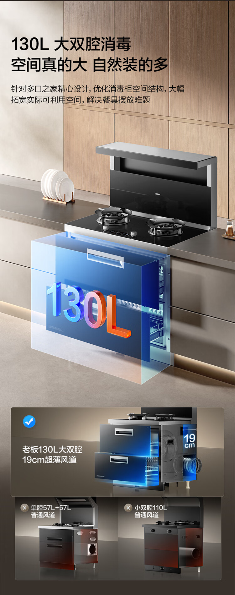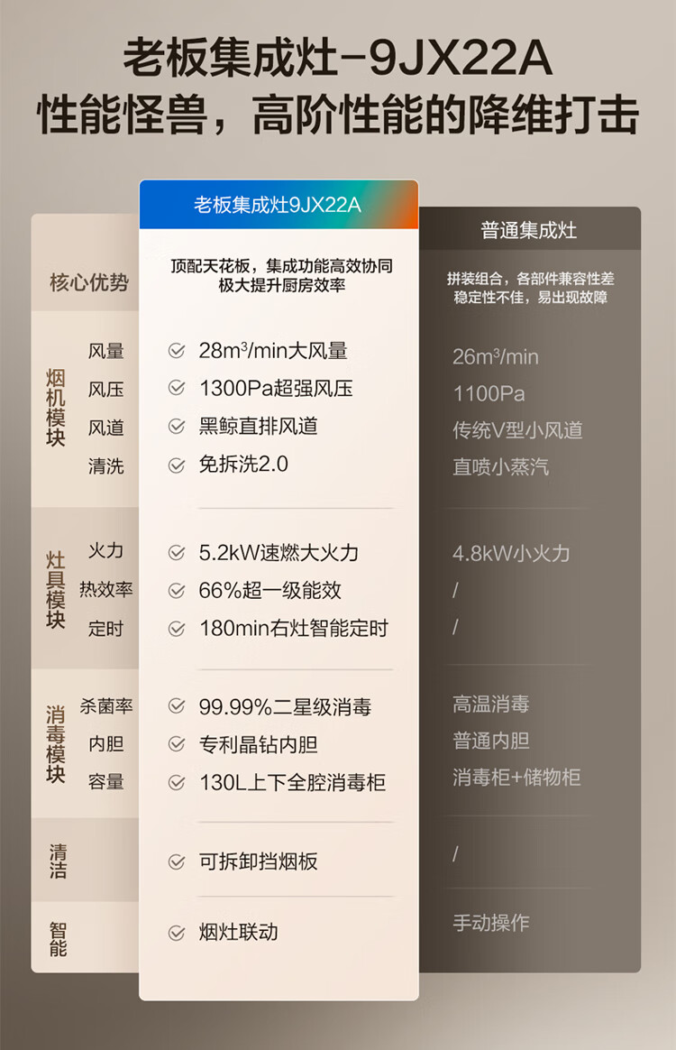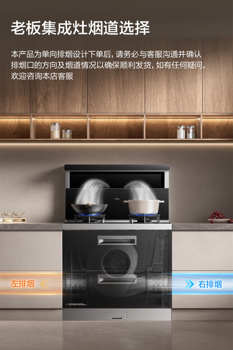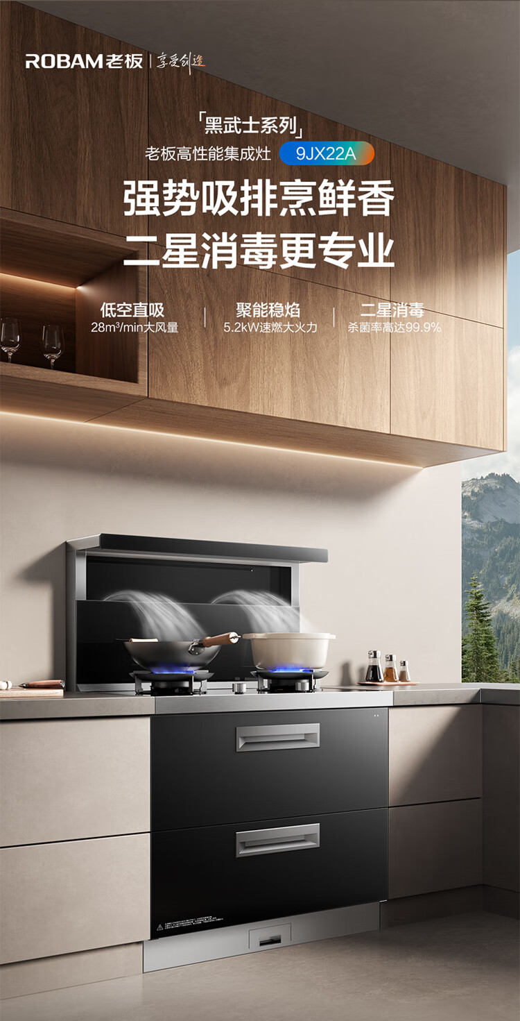老板(Robam)黑武士9JX22A高性能集成灶 集成消毒柜一体式 28风量免拆洗油烟机 定时燃气灶 天然气左排烟