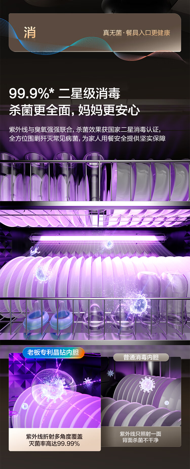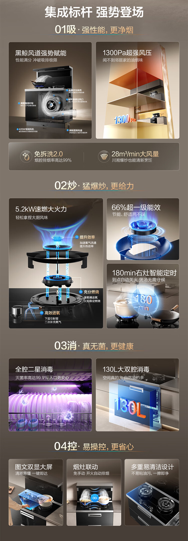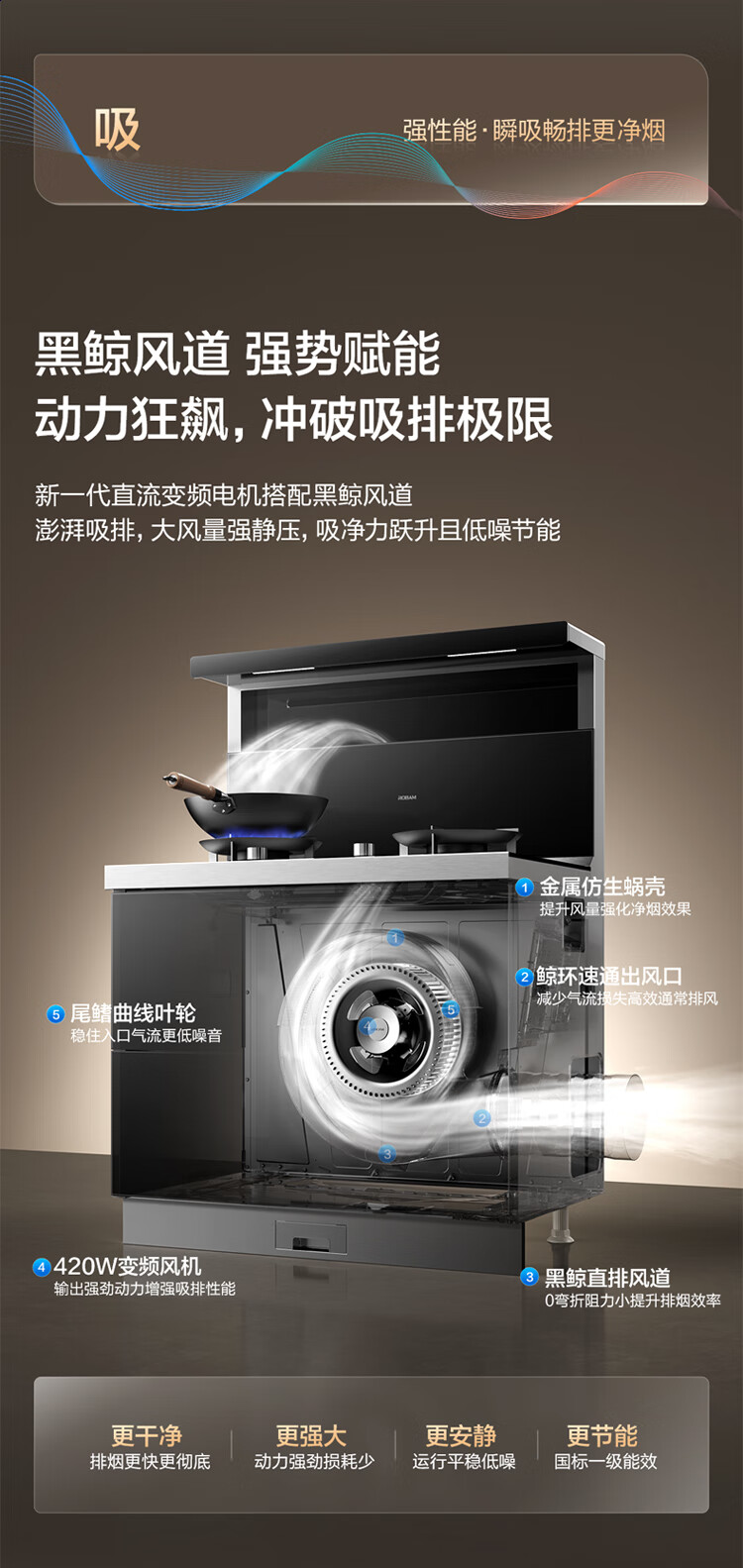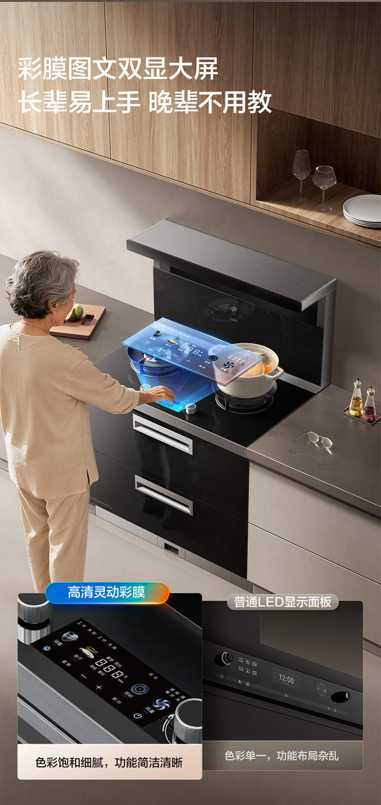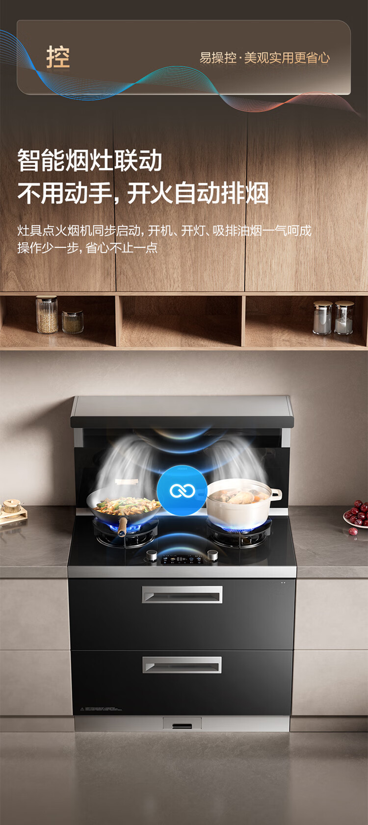 老板(Robam)黑武士9JX22A高性能集成灶 集成消毒柜一体式 28风量免拆洗油烟机 定时燃气灶 天然气左排烟