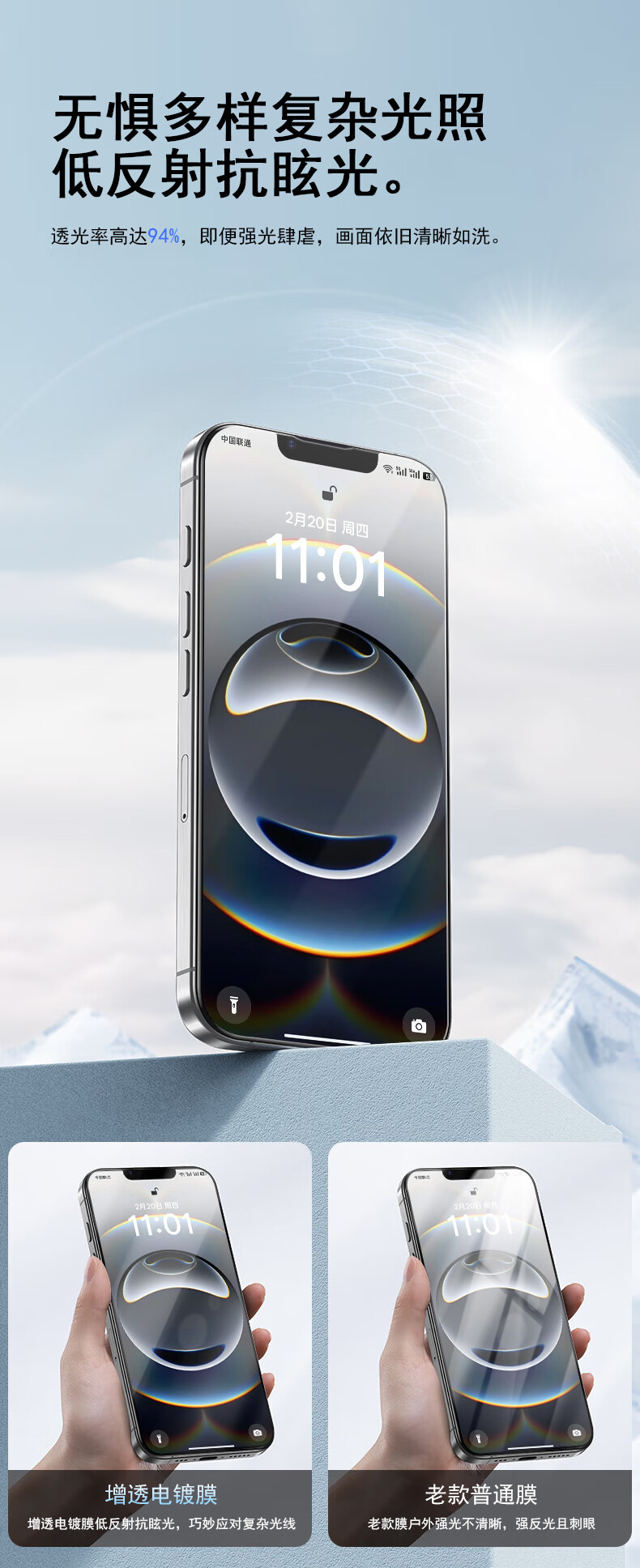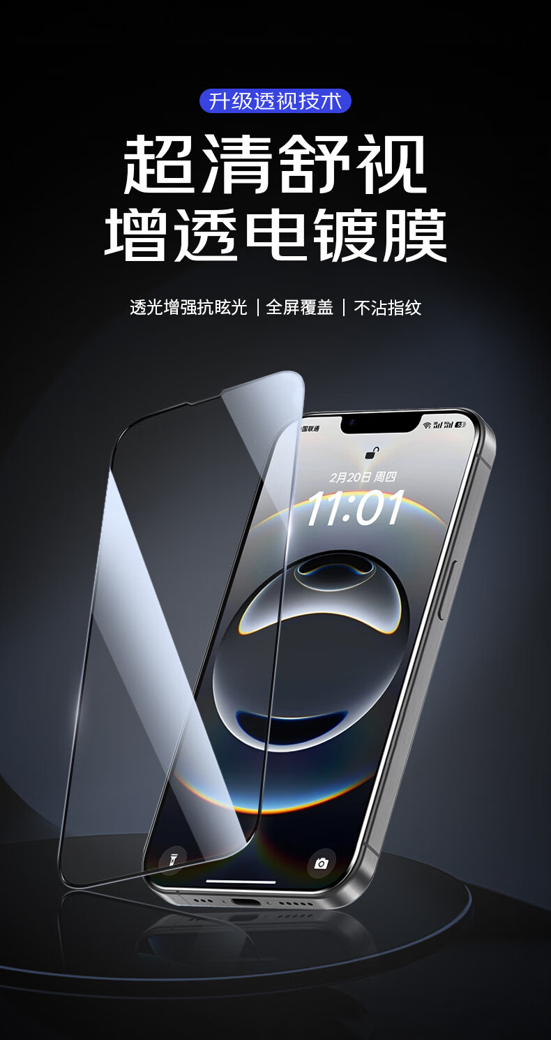 ALittleFlower【AR增透抗反光】适用iPhone16e/14/13/13Pro钢化膜苹果手机膜AR增透全屏覆盖防摔指纹高清2片神器
