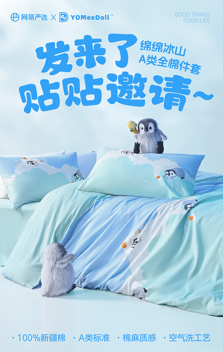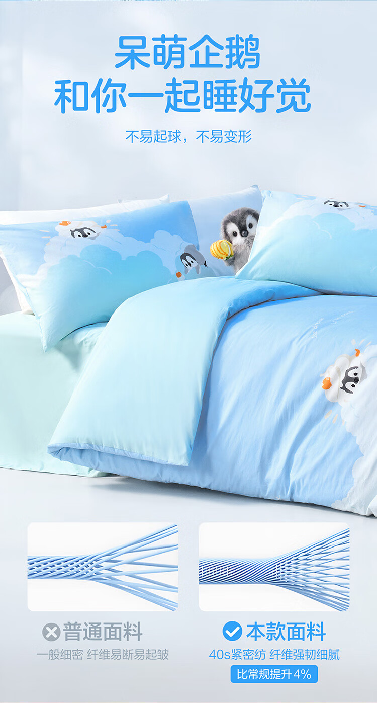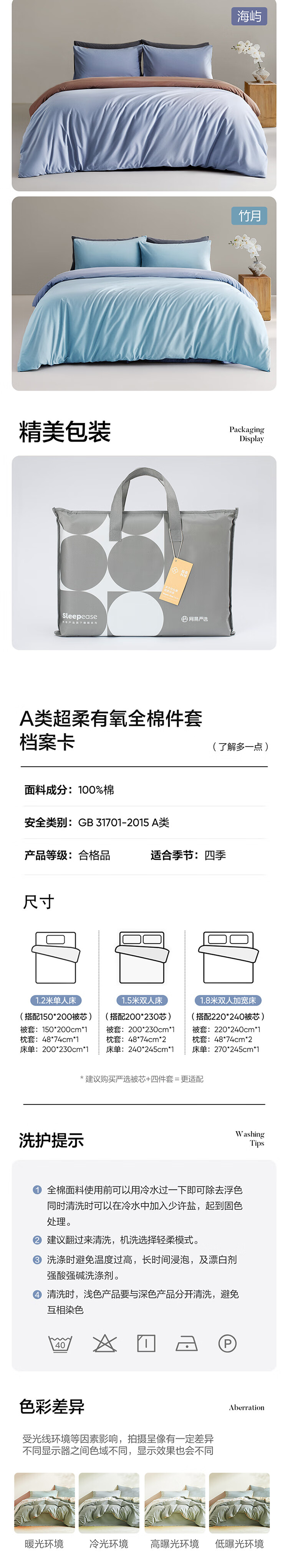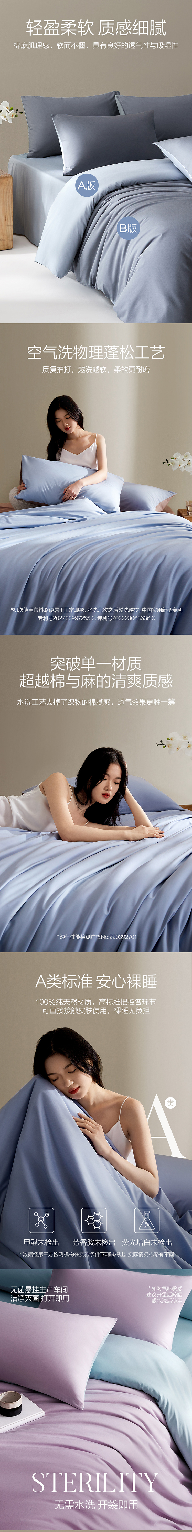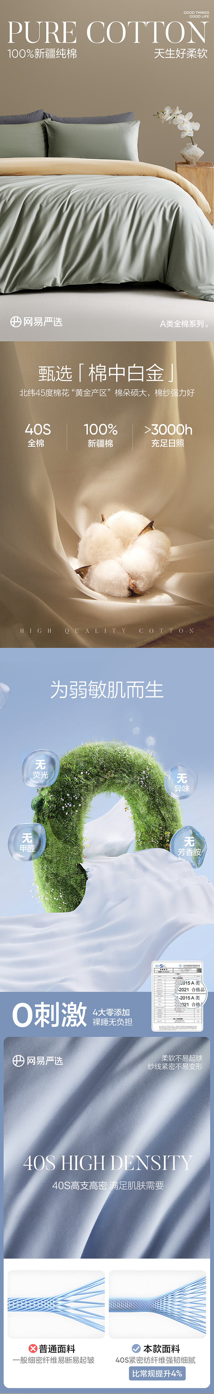 网易严选A类柔有氧全棉四件套卧室宿舍学生新疆棉新工艺柔软亲肤 【升级加厚】烟灰蓝 床单款 【被套】1.5m床:2*2.3m被芯