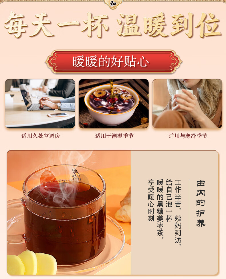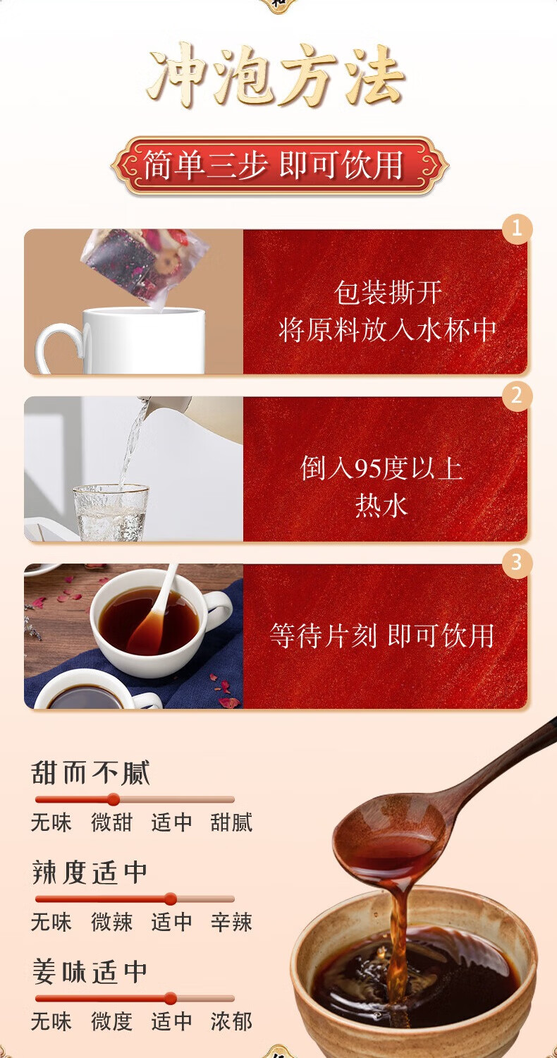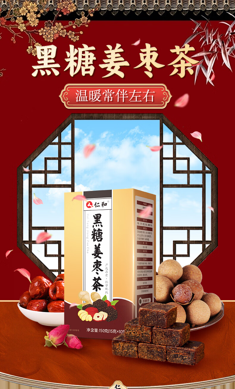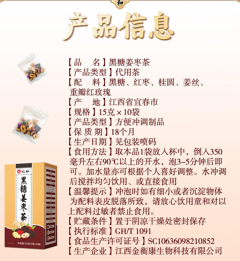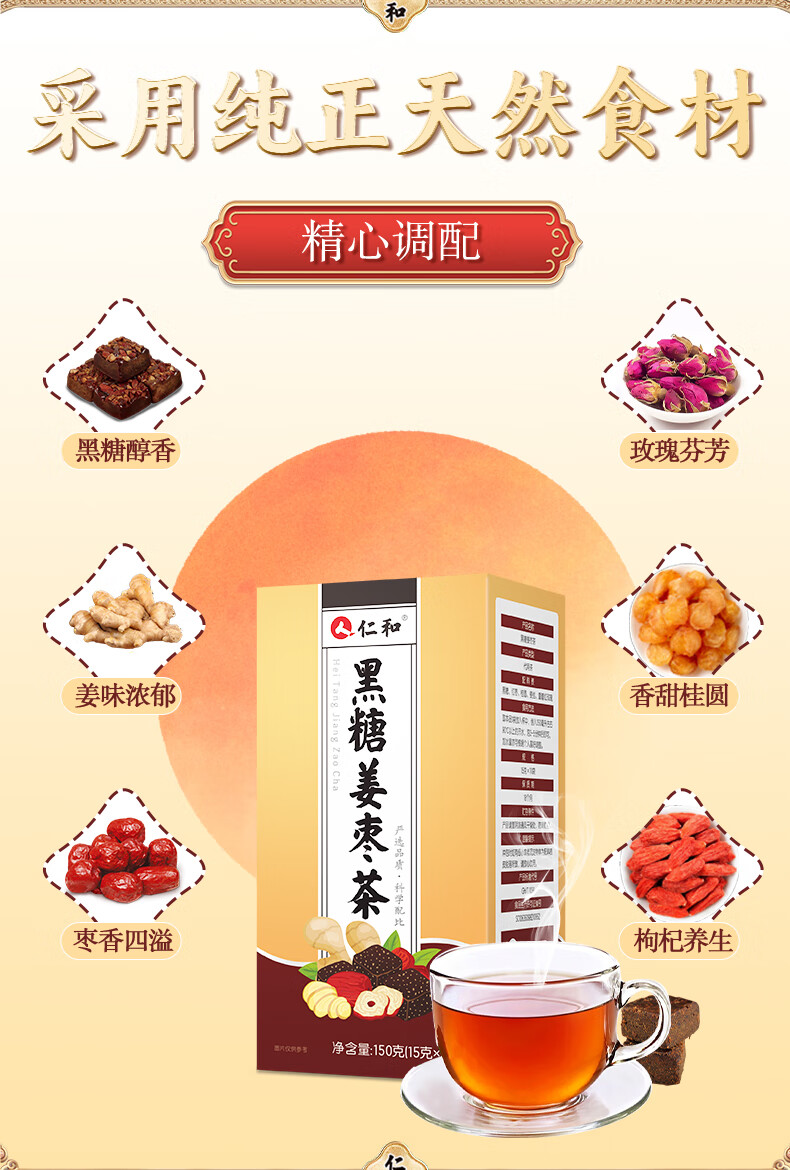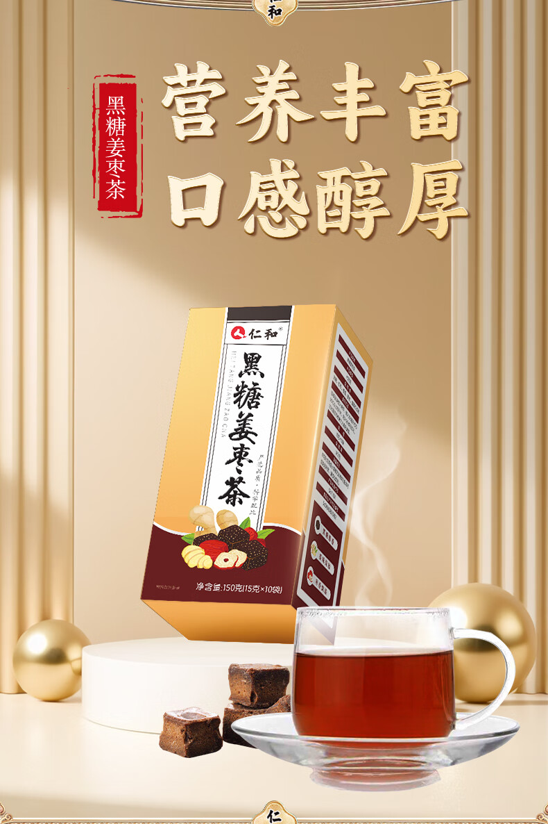 仁和黑糖姜枣茶精心调配自然色泽原味原香独立包装15g*10袋 1盒装