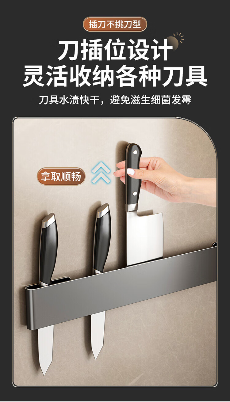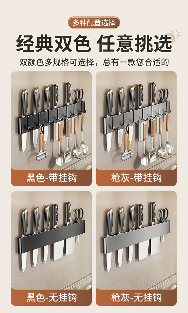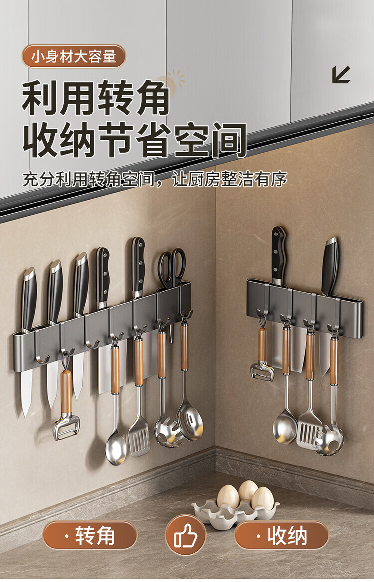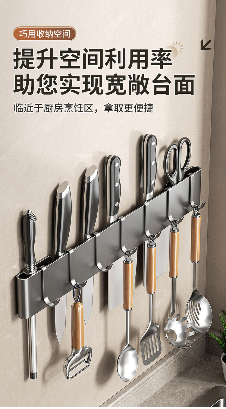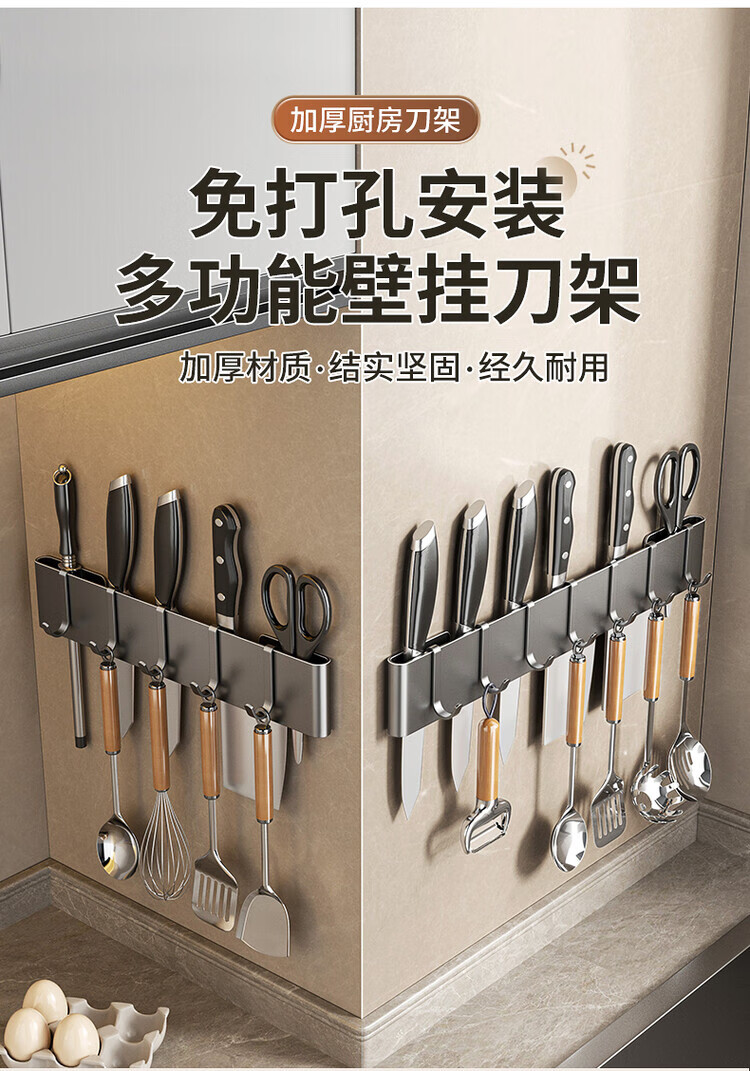 简漾刀架置物架厨房壁挂式刀具锅铲收纳架墙上免打孔插刀挂架置放刀架 灰色20cm