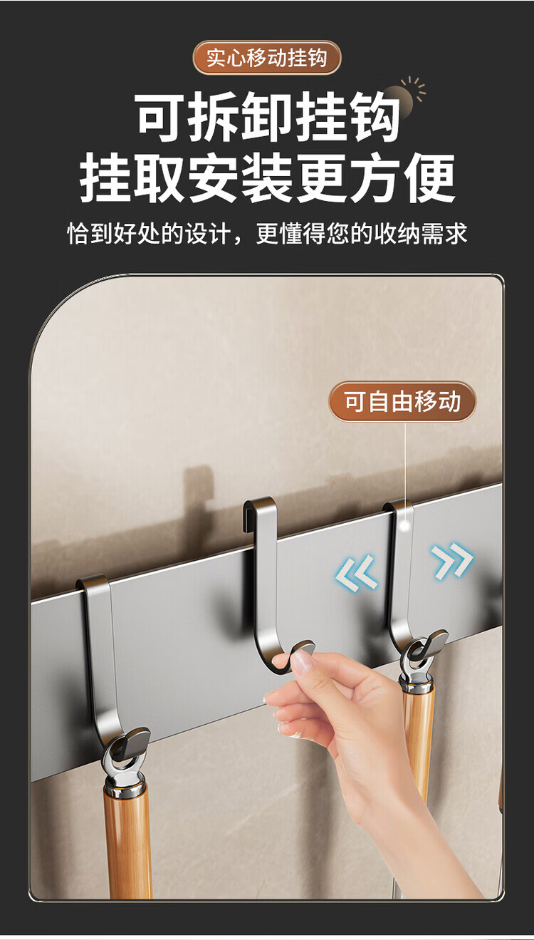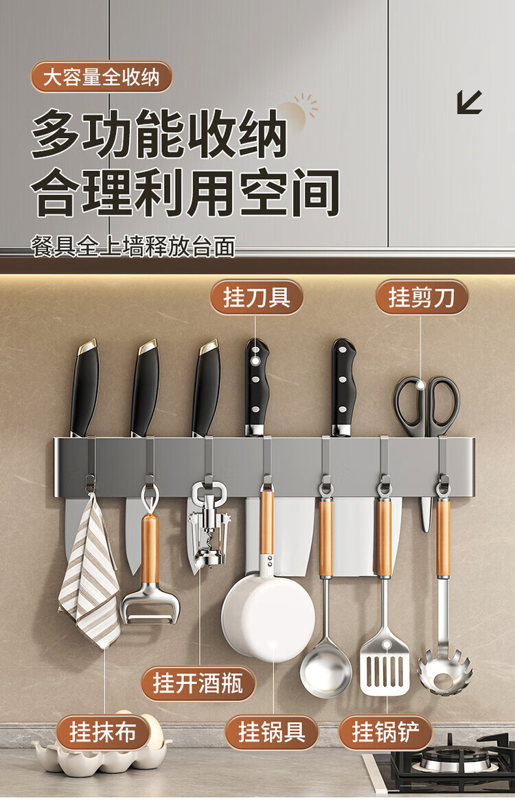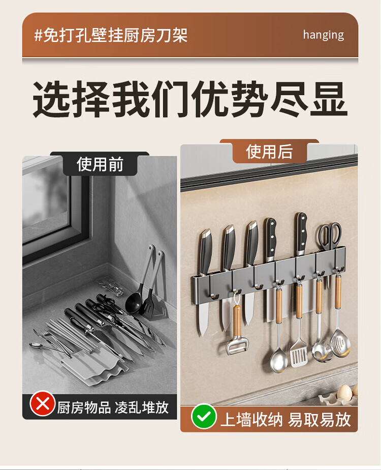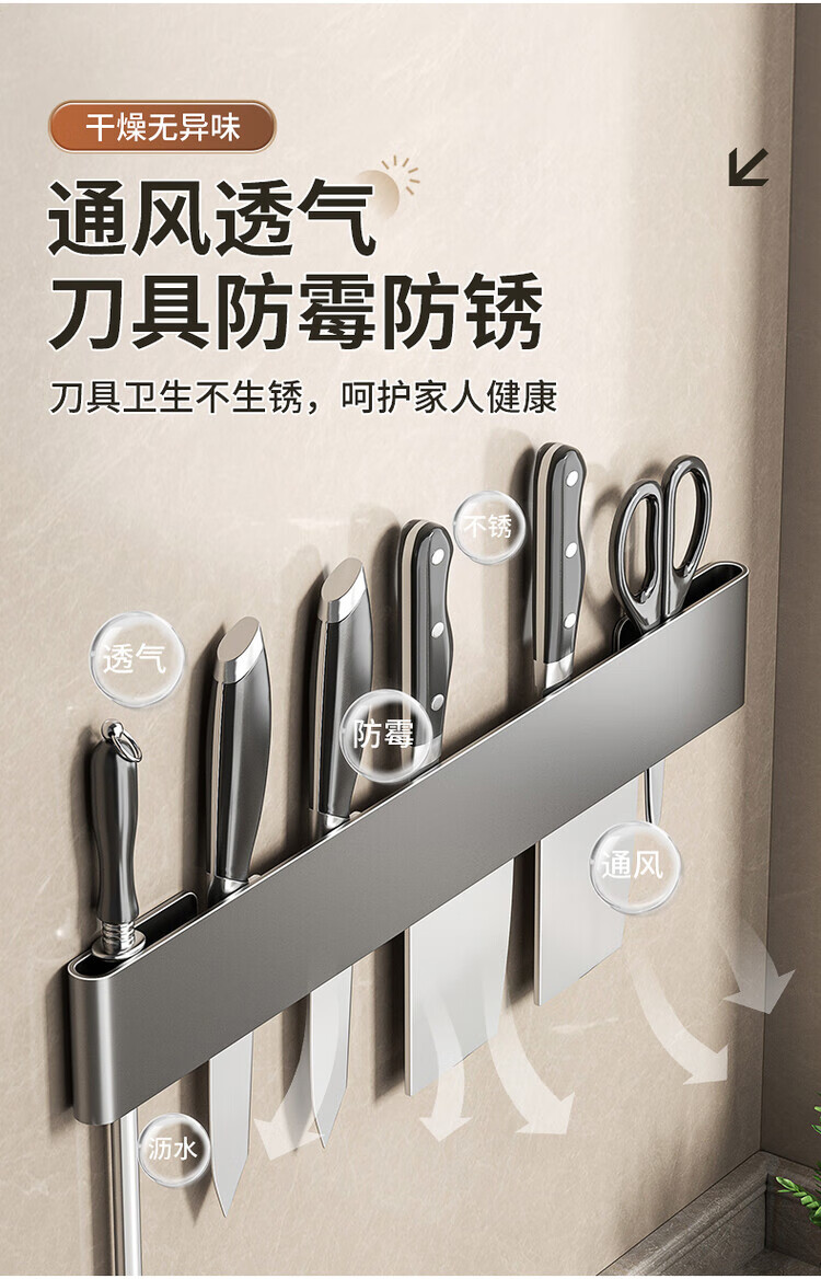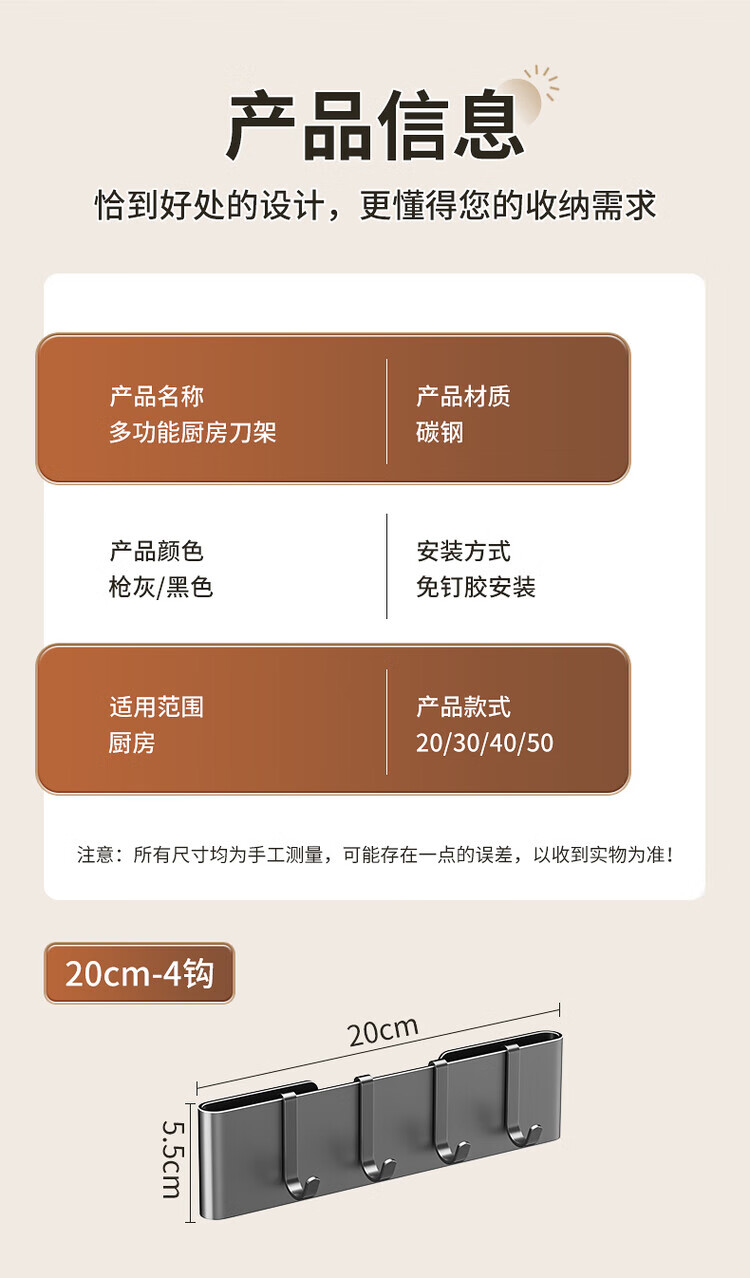 简漾刀架置物架厨房壁挂式刀具锅铲收纳架墙上免打孔插刀挂架置放刀架 灰色20cm