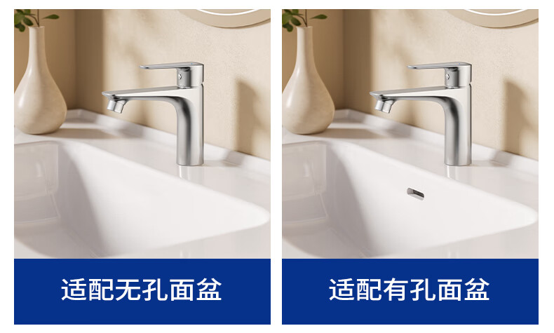 九牧(JOMOO)面盆龙头洗手洗脸盆浴室冷热龙头卫生间浴室柜坐式单孔水龙头 32686【可旋转双水花】亮银