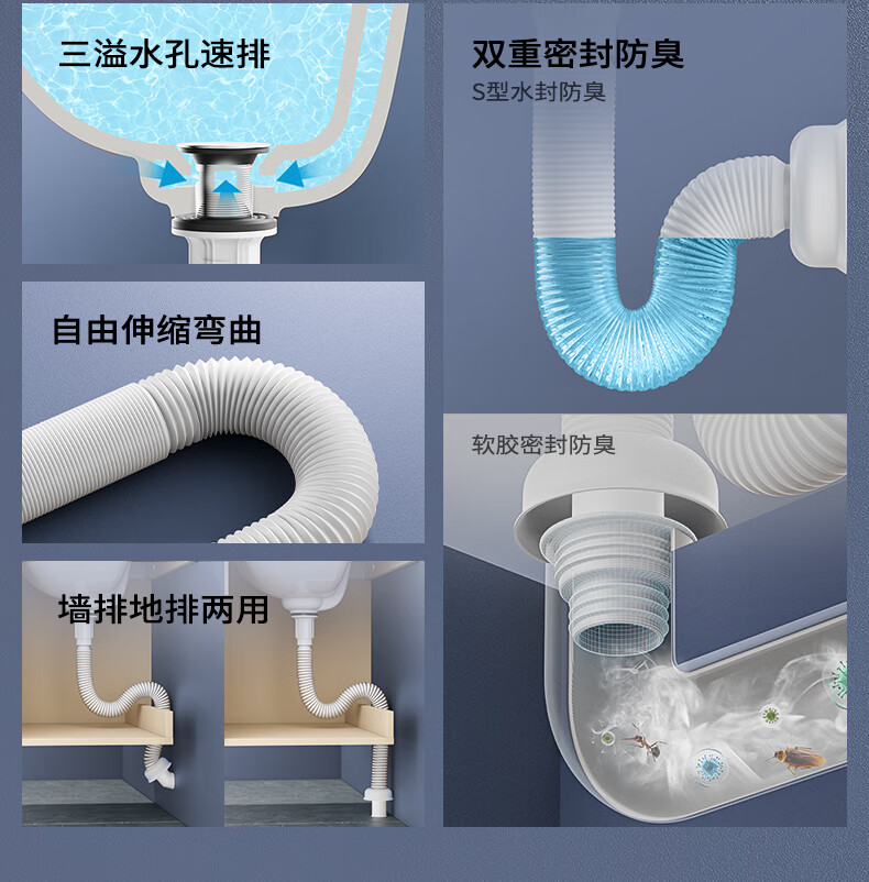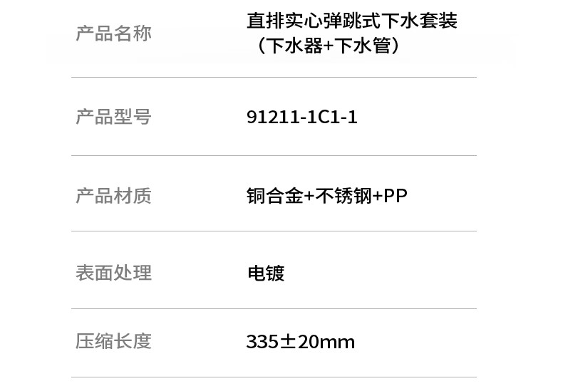 九牧(JOMOO)弹跳式翻版式面盆下水器下水管下水套装洗手池浴室柜排水厨卫配件 【翻板式】通用下水套装91206