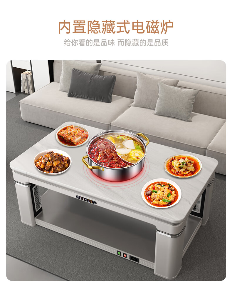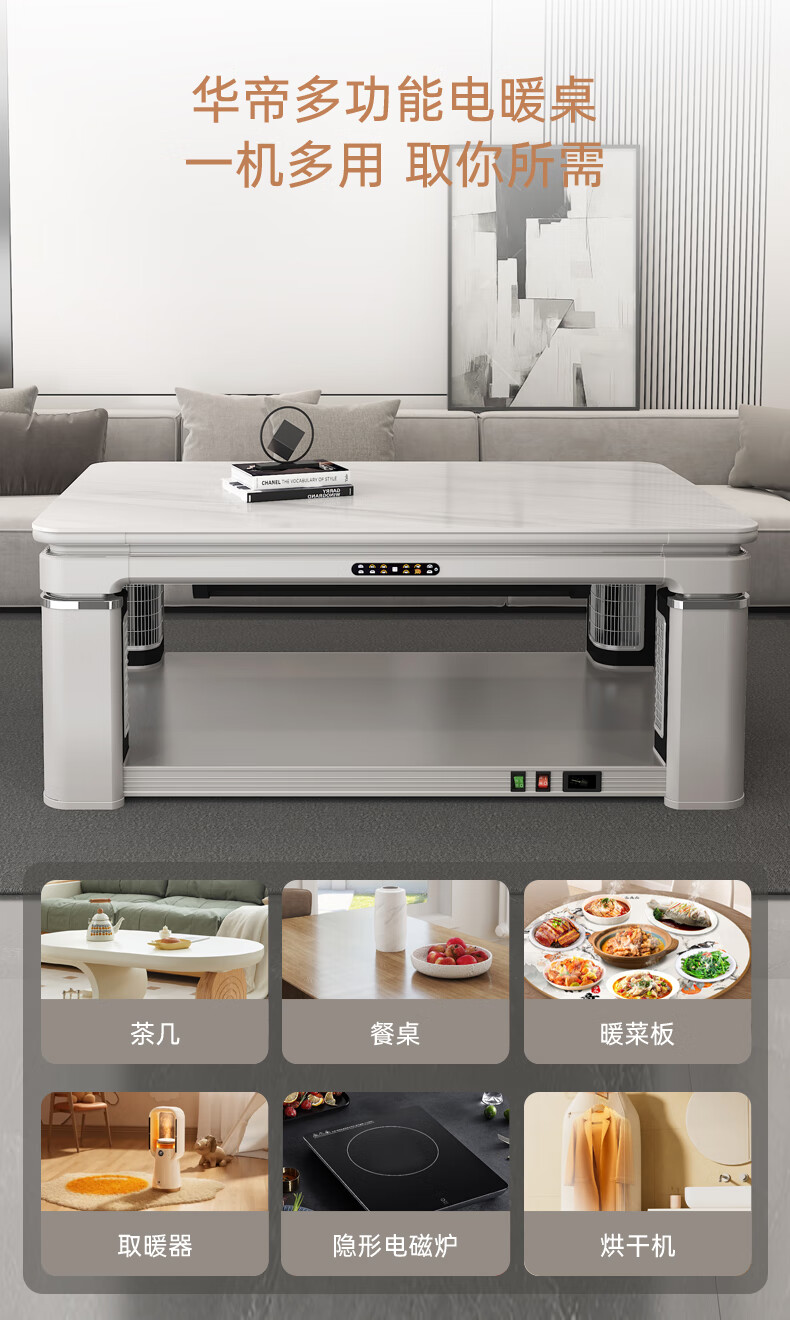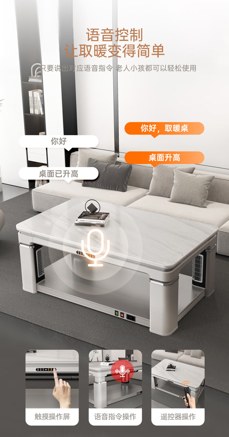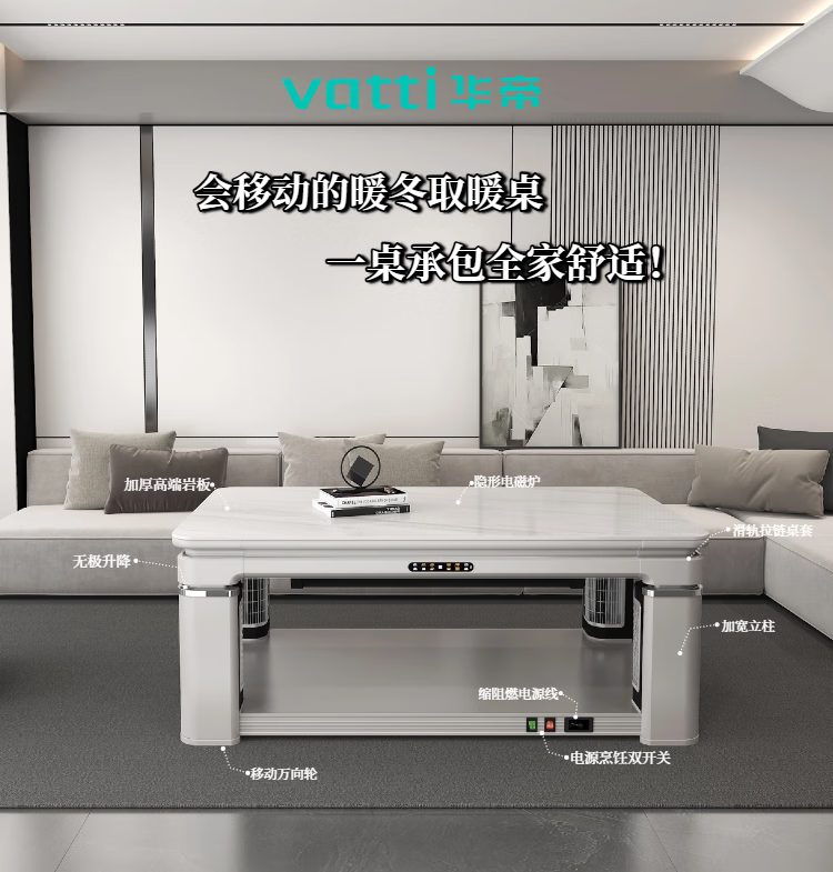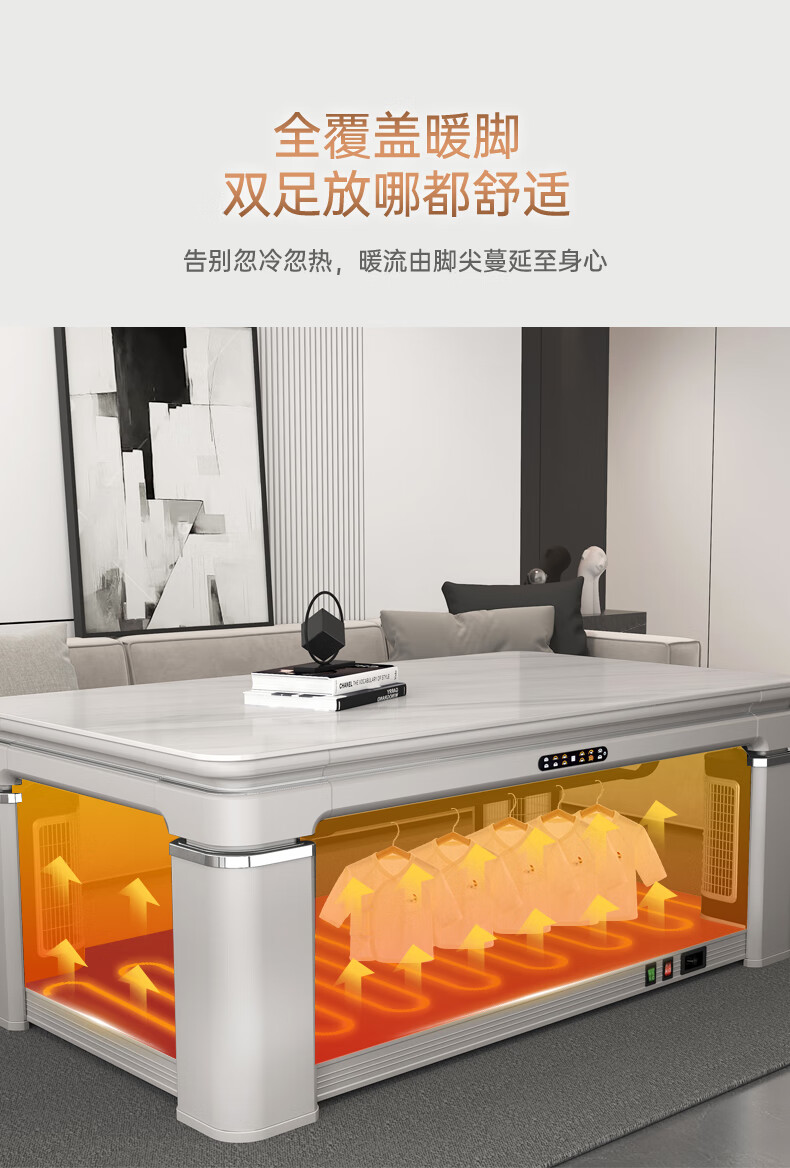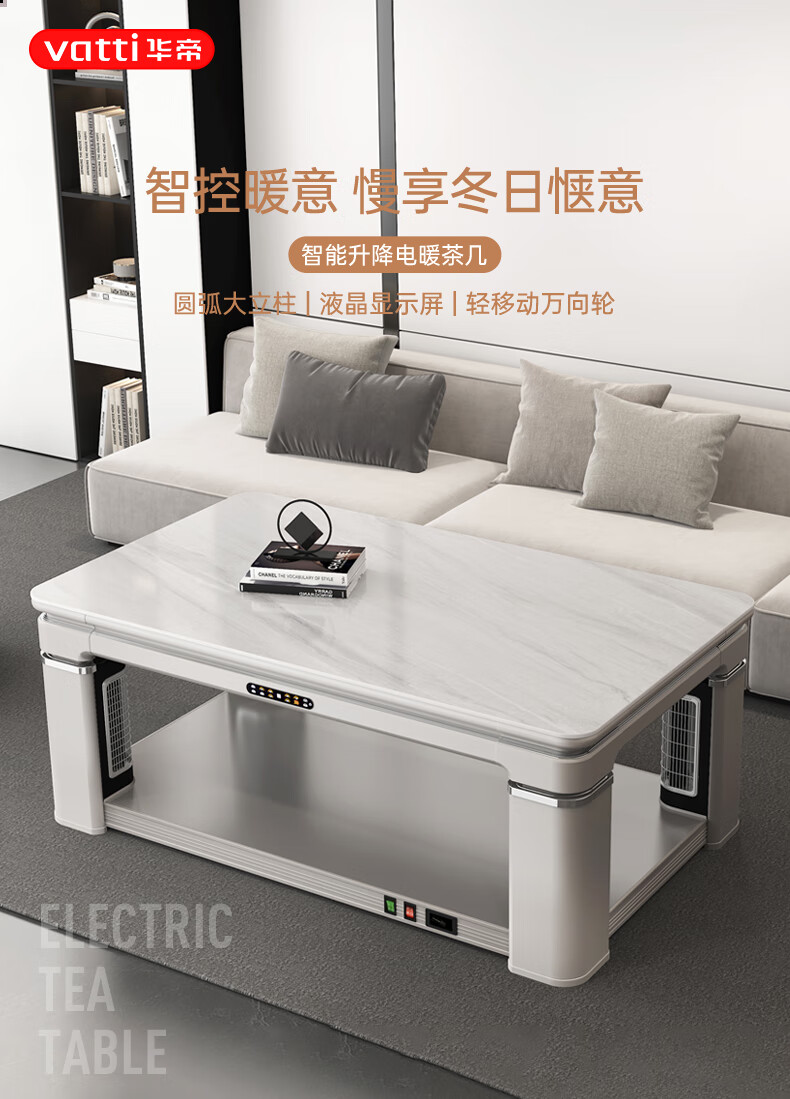 华帝(VATTI) 电暖桌 电热取暖桌 烤火桌高端取暖桌取暖升降茶几家用一体客厅电炉烤火电暖炉烤火炉长方形语音 G06白-1.38*0.8m智能恒温+岩板象牙白