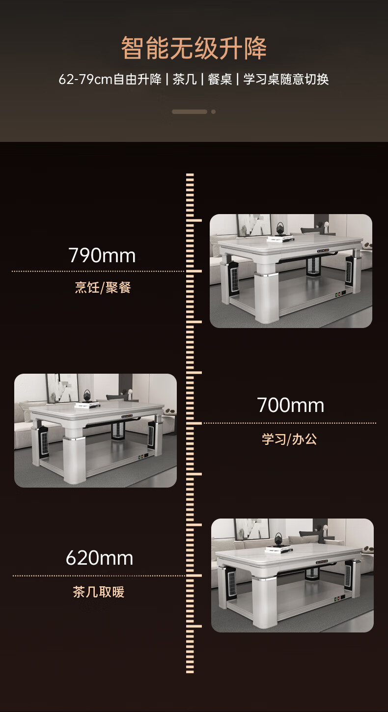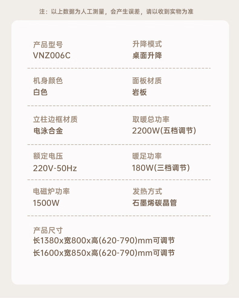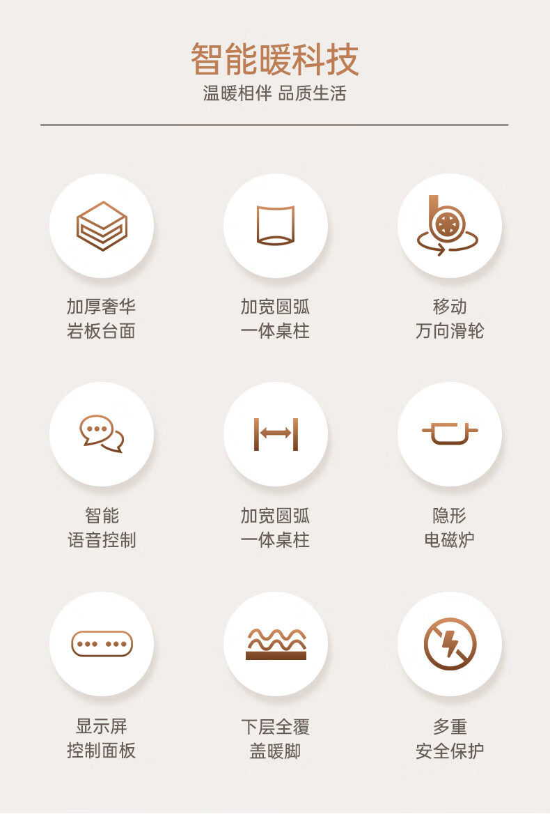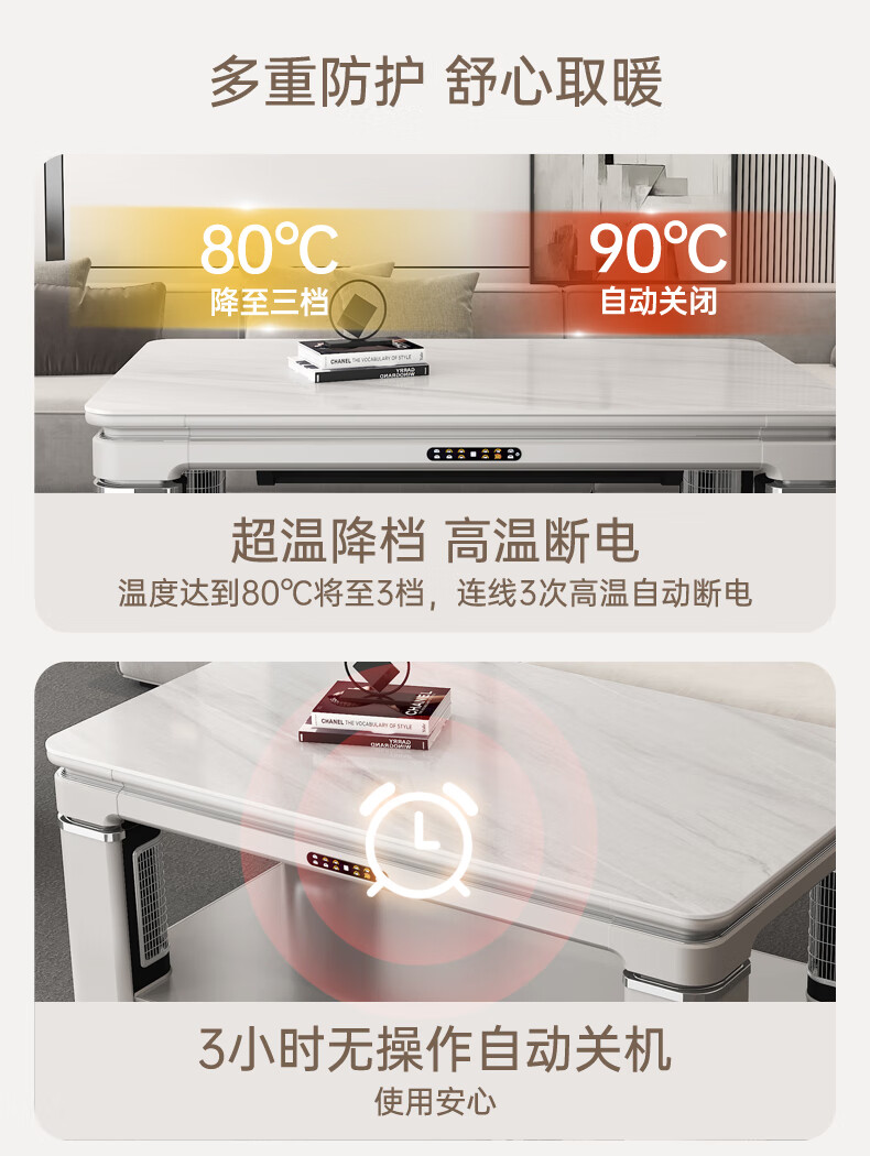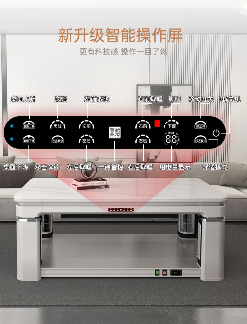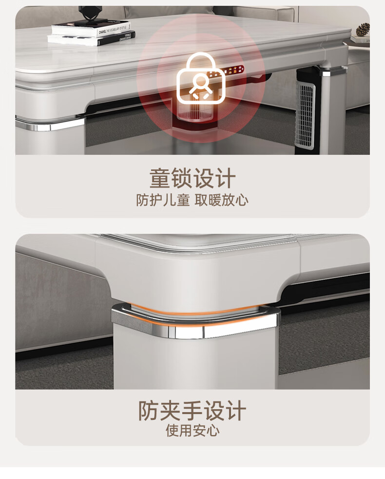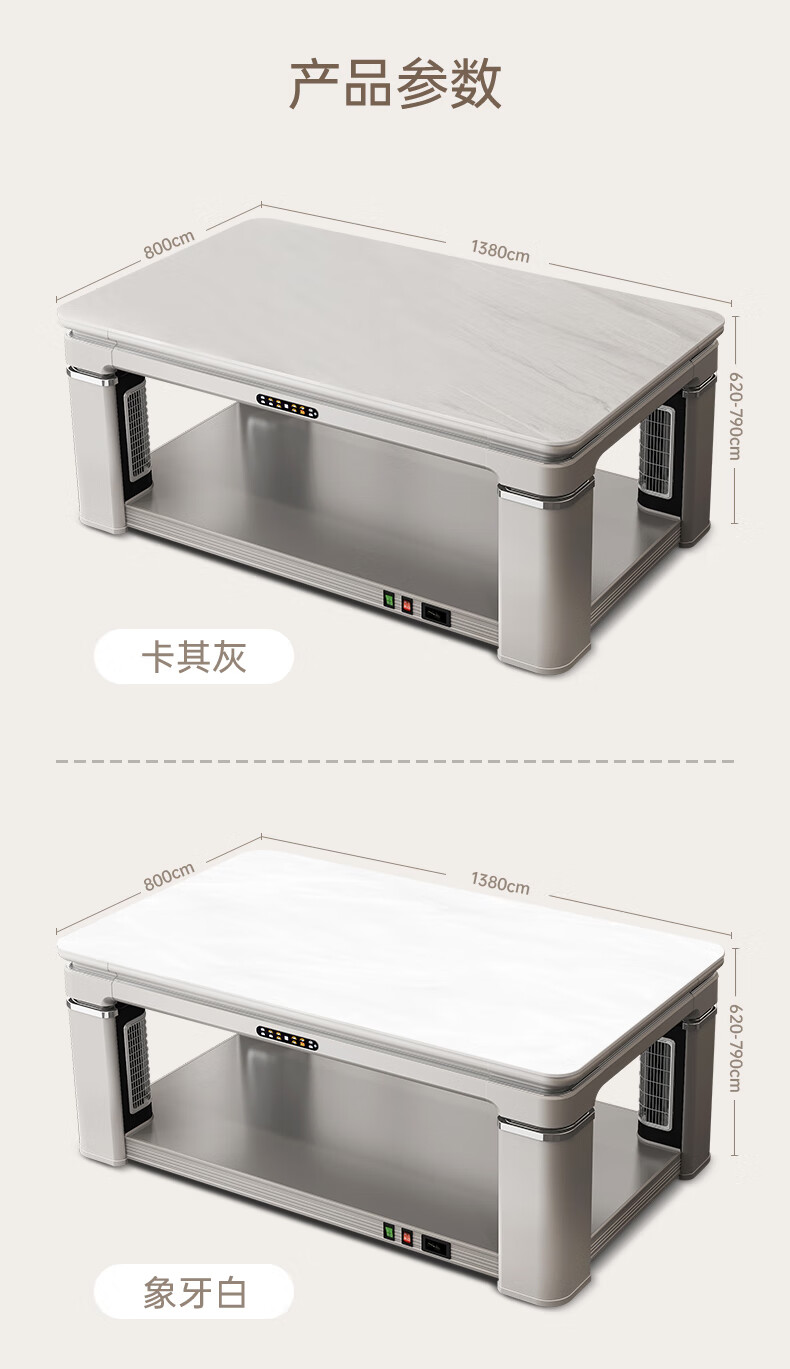 华帝(VATTI) 电暖桌 电热取暖桌 烤火桌高端取暖桌取暖升降茶几家用一体客厅电炉烤火电暖炉烤火炉长方形语音 G06白-1.38*0.8m智能恒温+岩板象牙白