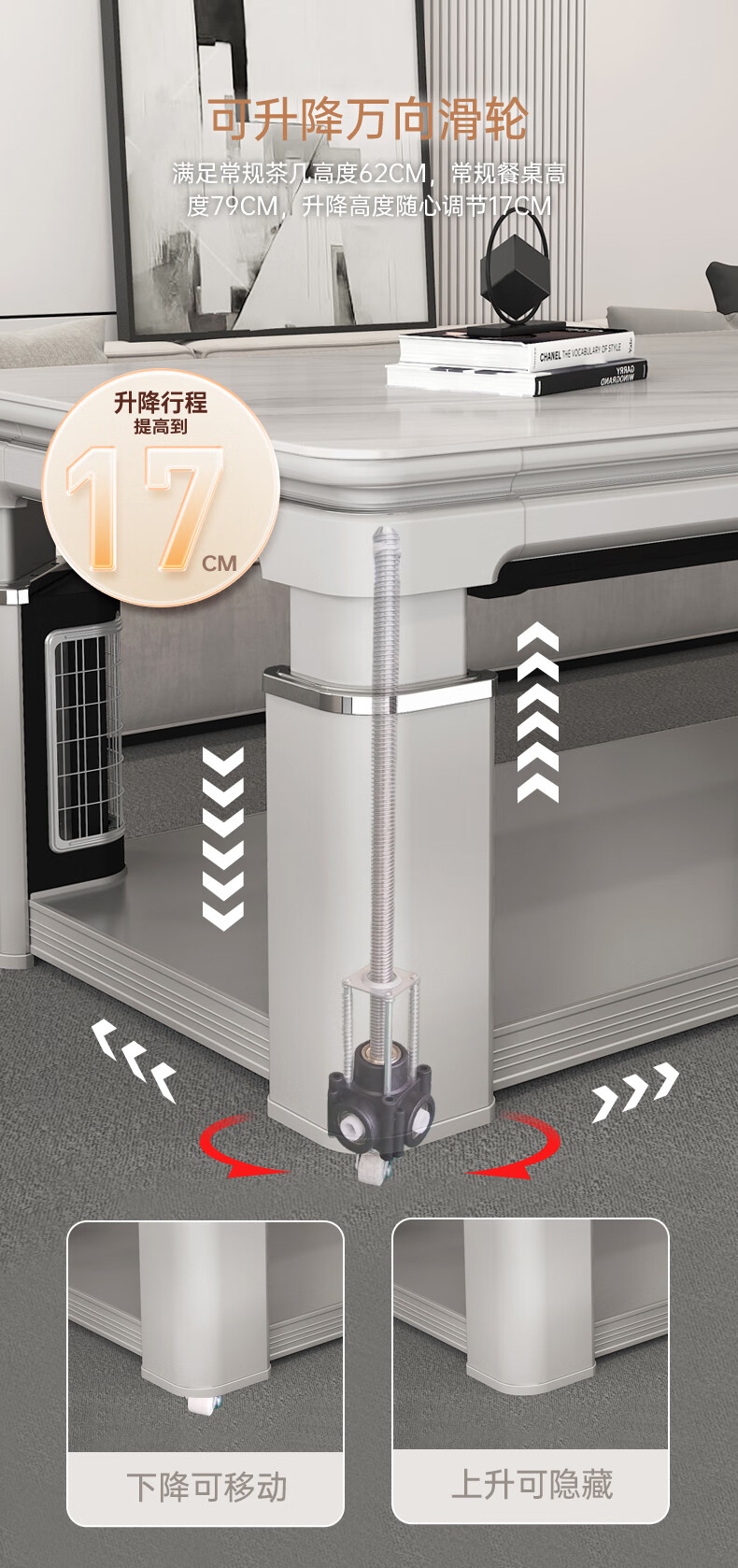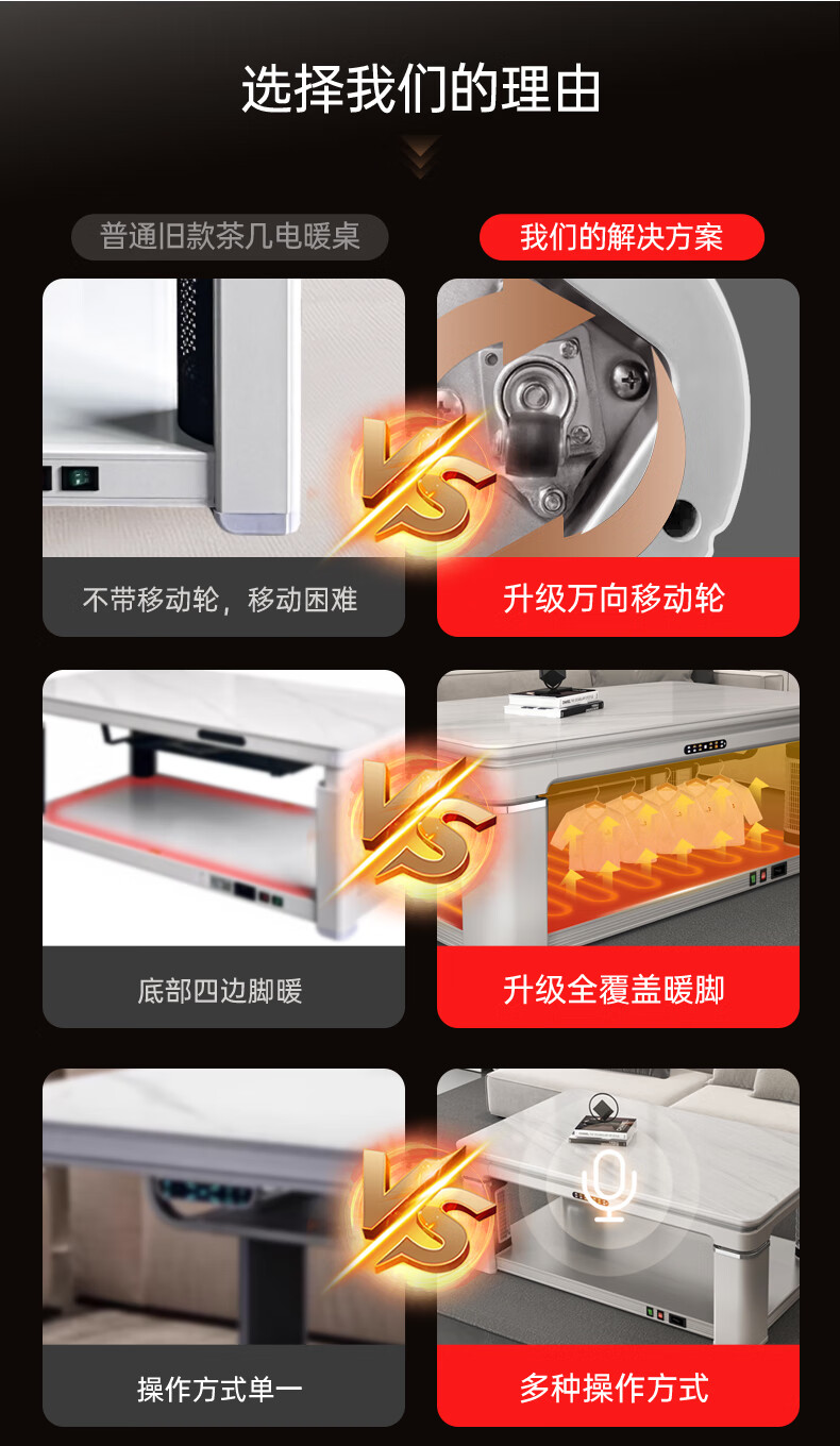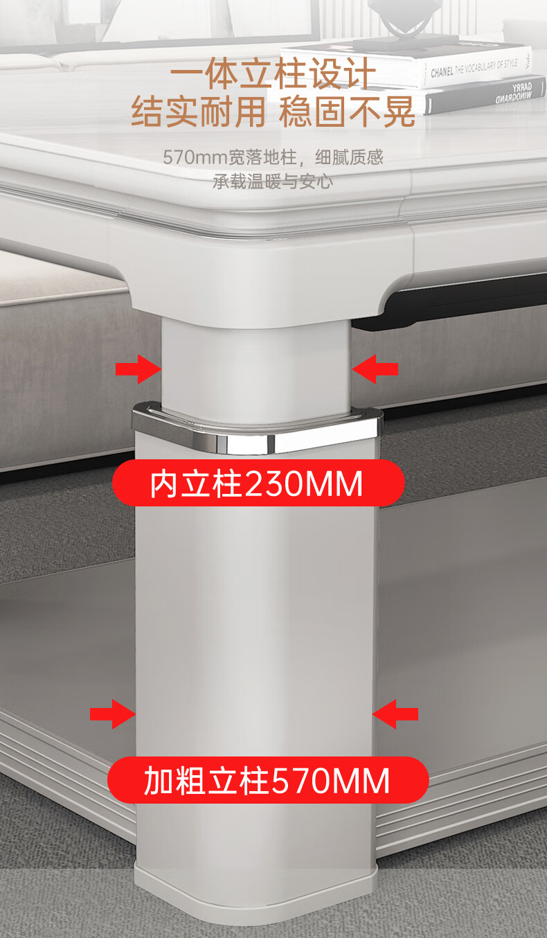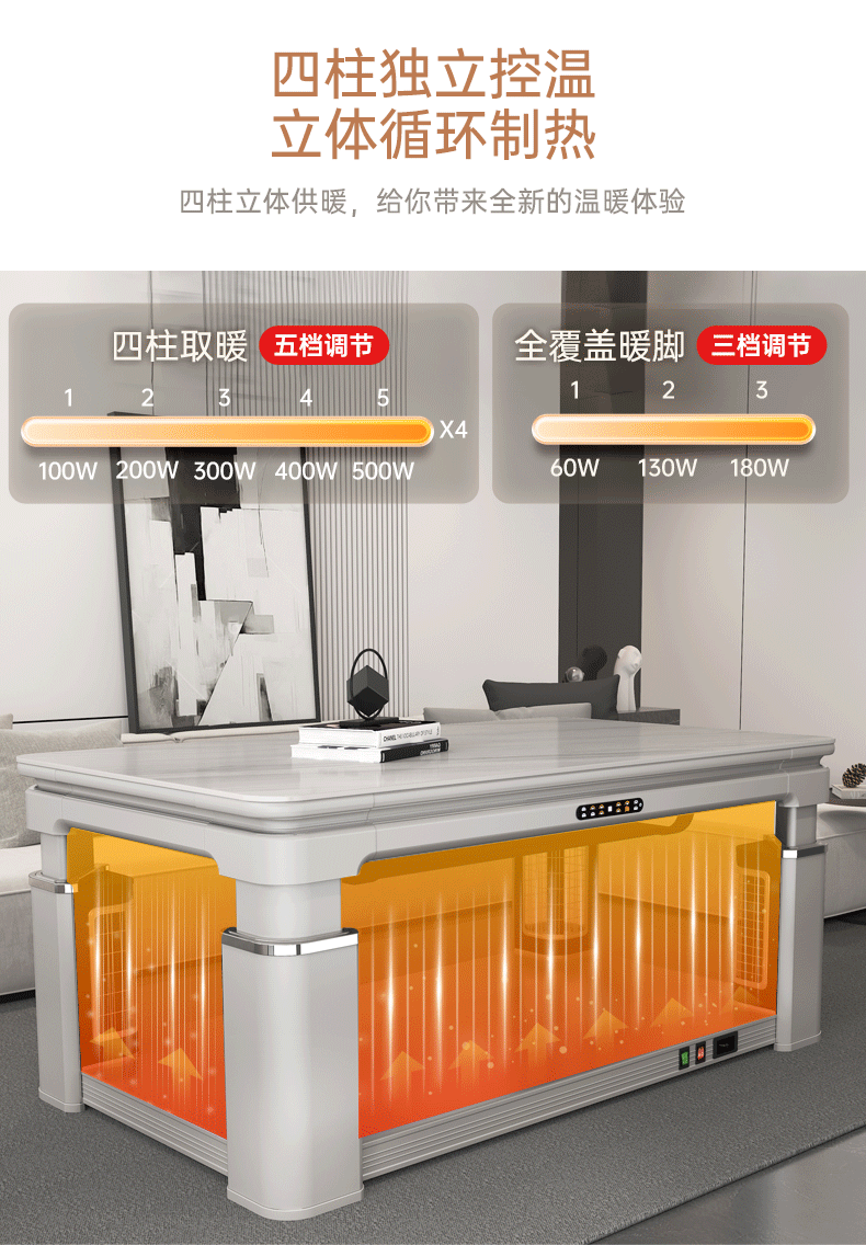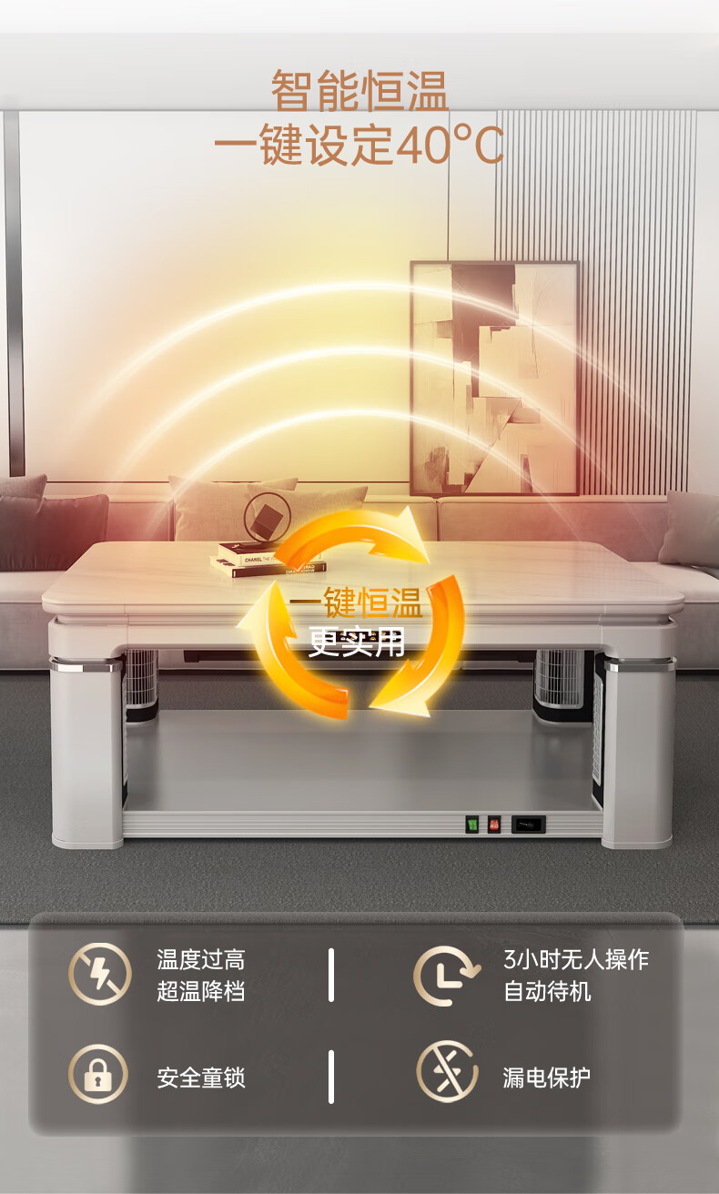 华帝(VATTI) 电暖桌 电热取暖桌 烤火桌高端取暖桌取暖升降茶几家用一体客厅电炉烤火电暖炉烤火炉长方形语音 G06白-1.38*0.8m智能恒温+岩板象牙白