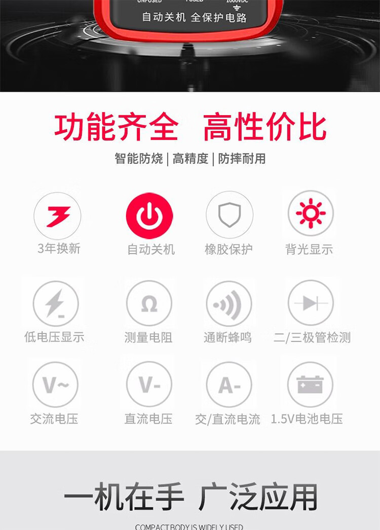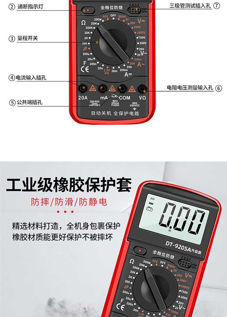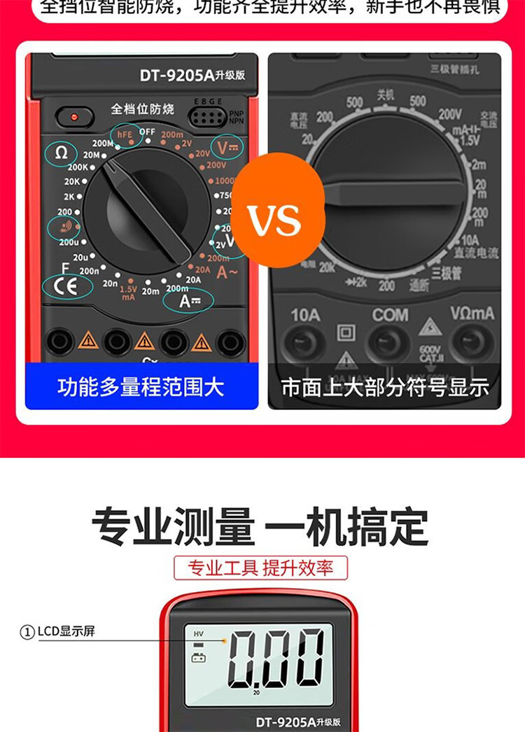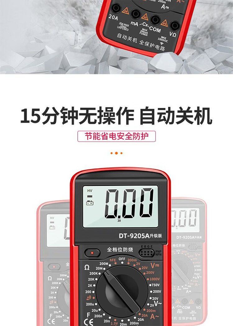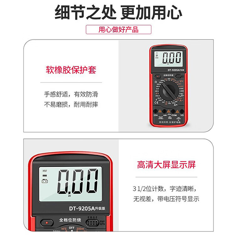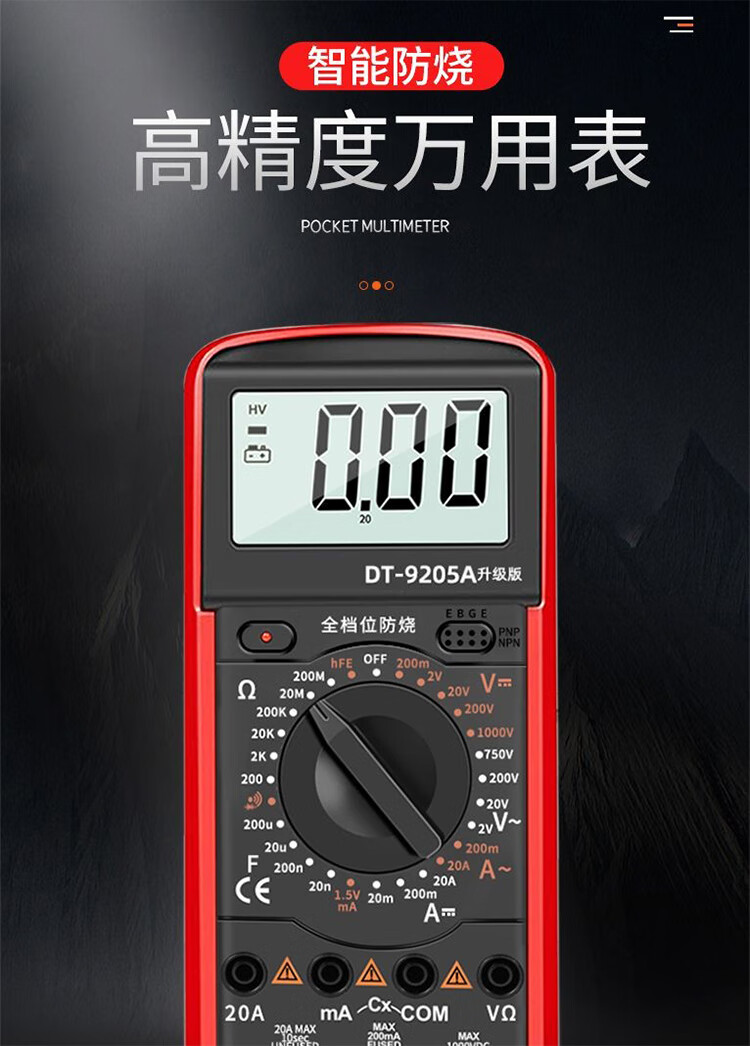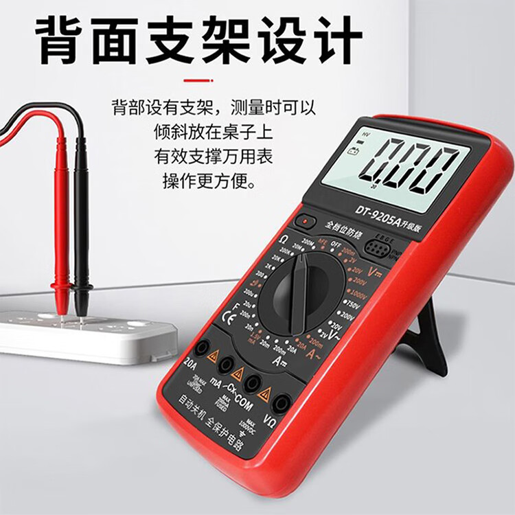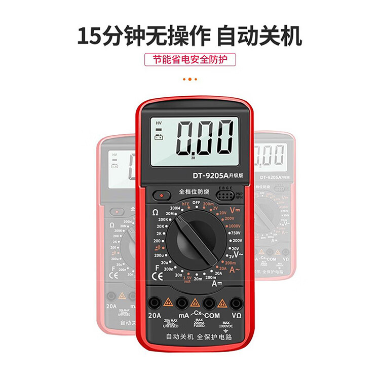筏芯德国万用表全智能防烧维修水电工专用数字高精度便携家用多功能 升级版DT9205A标配【含电池+表笔】