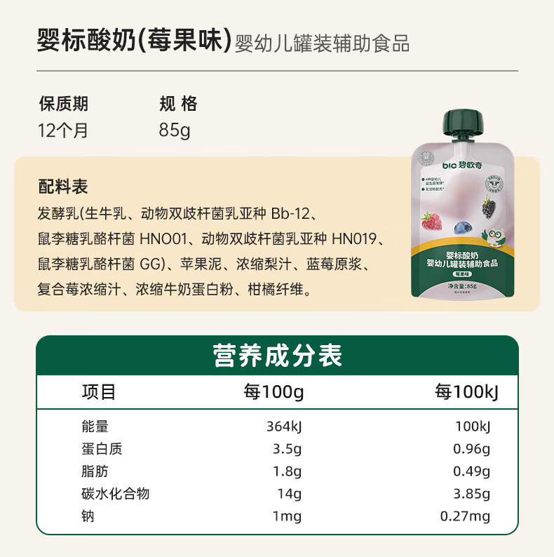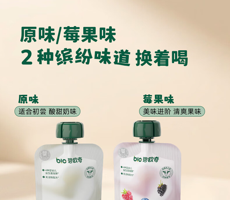 碧欧奇婴标酸奶 常温婴幼儿酸奶宝宝酸奶儿童早餐零食辅食 【16袋装】原味8+莓果味8