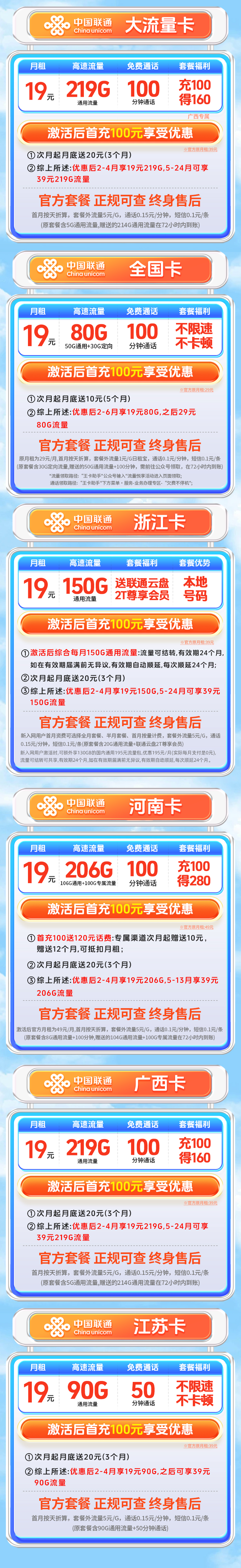 中国联通19元流量卡【超大流量】手机卡电话卡全国通用不限速非无限纯上网5g大王卡 全国卡丨80G全国通用流量+100分钟丨本地归属