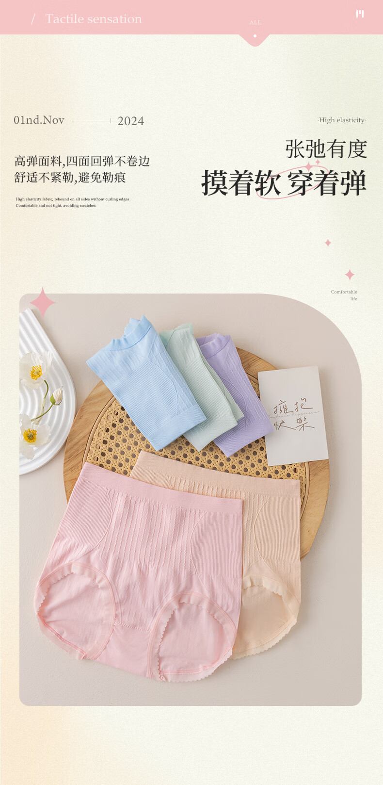 雅鹿女士高腰内裤纯色针织高弹力收腹性感三角裤女生包臀短裤不夹臀 随机色 5条 L 【建议90-130斤】