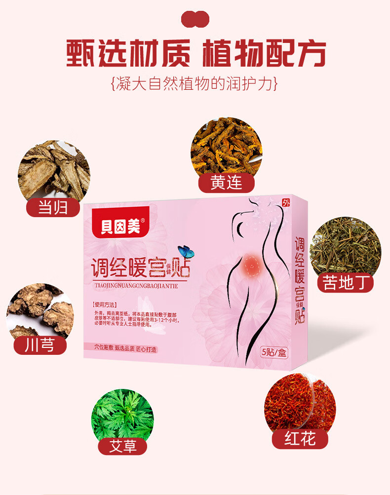 贝因美新品调暖经宫贴经期不适艾草暖身贴益母草热敷发热贴红花通经贴 【6盒疗程装】改善不调