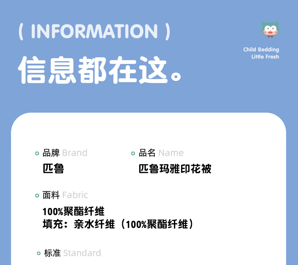 匹鲁儿童被子被芯A类可机洗抗菌玛雅印花被学生春秋被单双人四季被子 玛雅蓝-春秋被 150*200cm