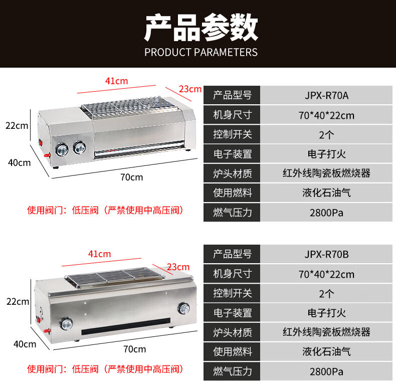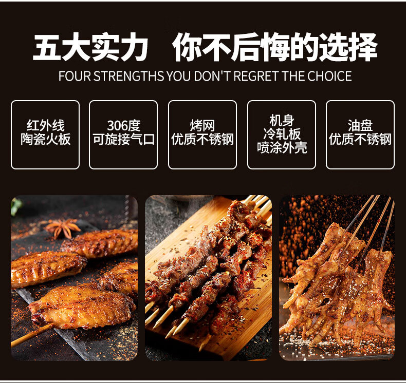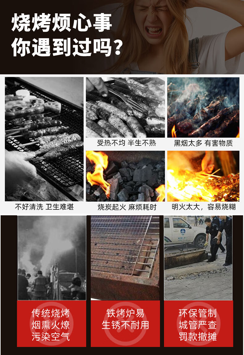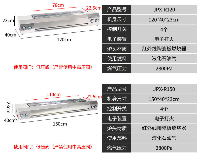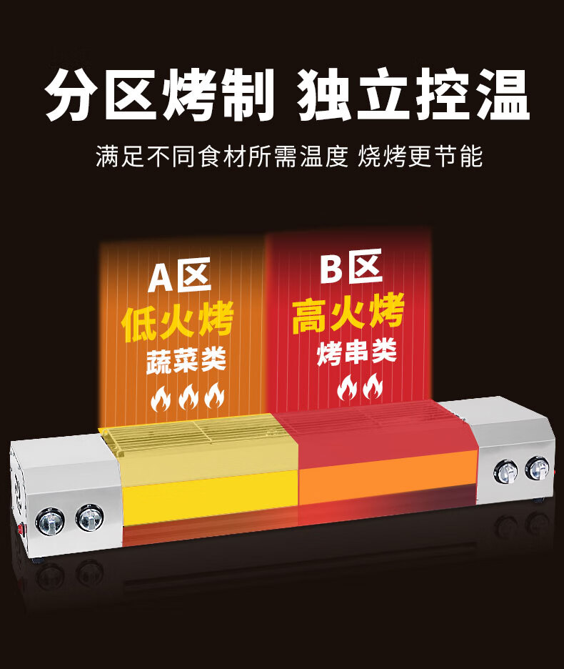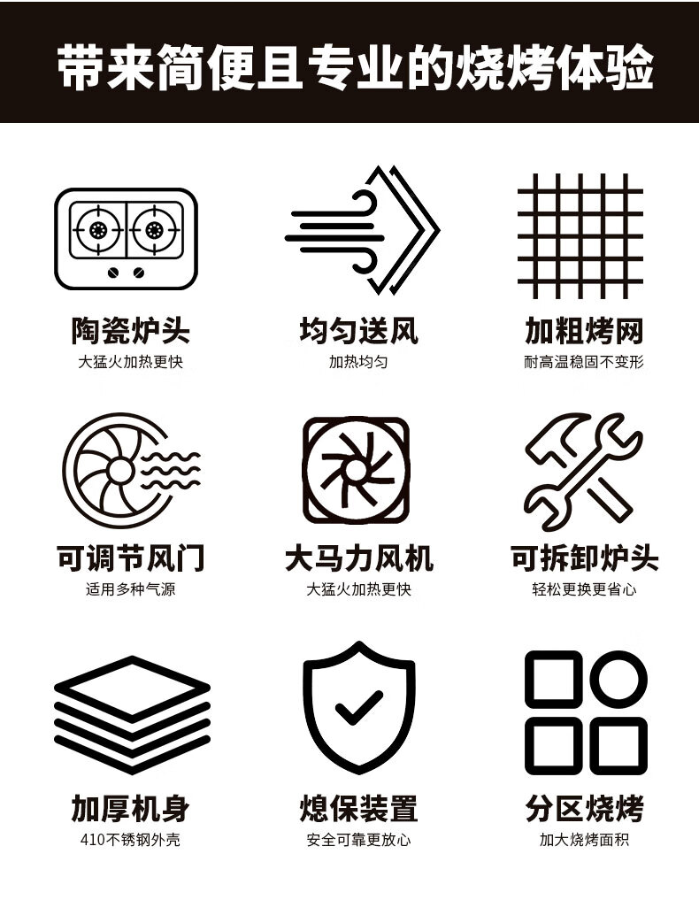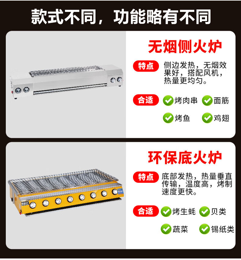 金品兴(JPX)燃气烧烤炉创业摆摊煤气液化气天然气商用无烟烤面筋烤肉串烤鱼 标准版1.2米【加厚实用】加厚实用