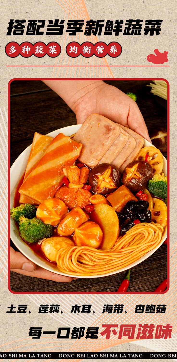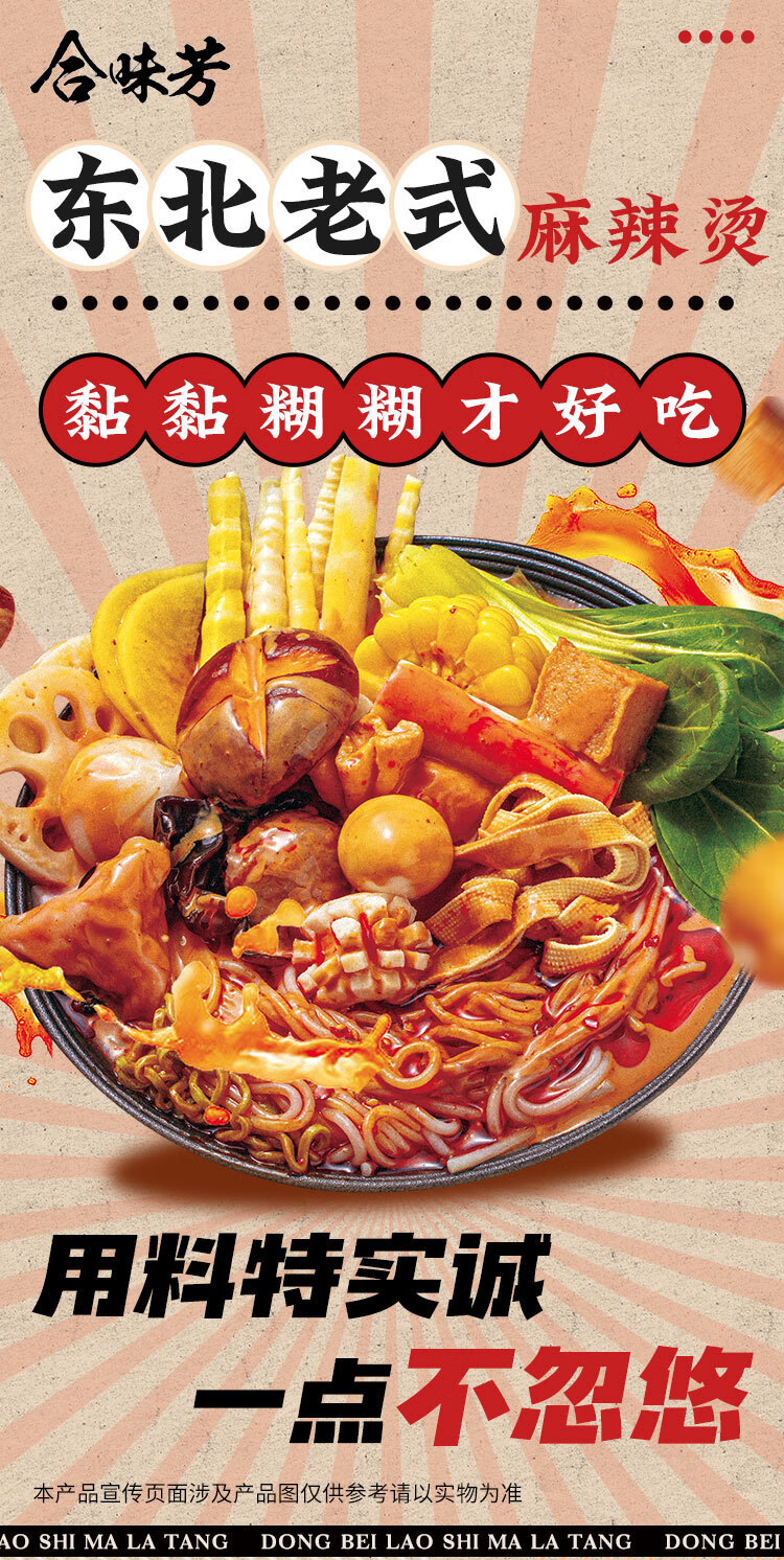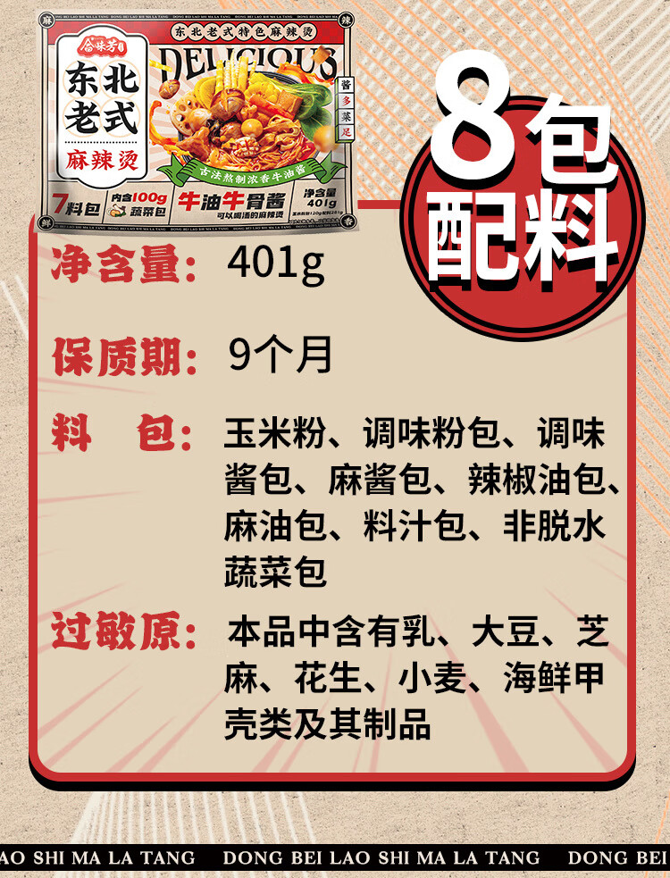 合味芳麻辣烫速食包东北老式黏糊底麻辣烫 老式东北黏糊麻辣烫401g装 牛油汤底 鲜蔬菜包 乳粉包 料包