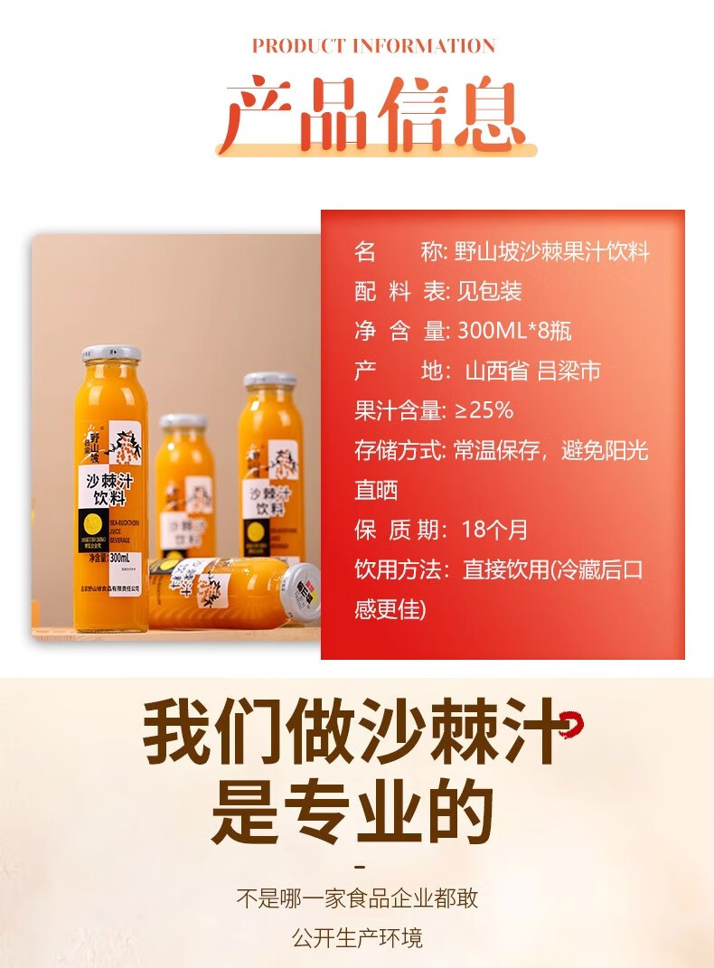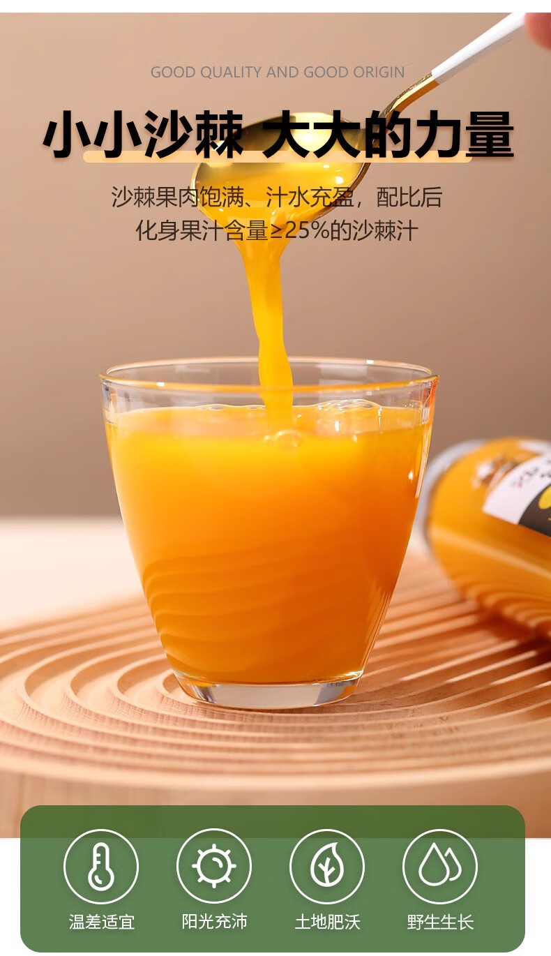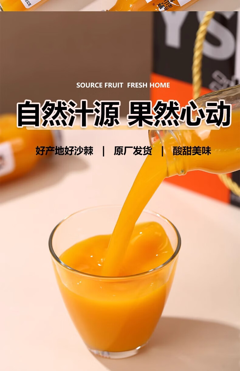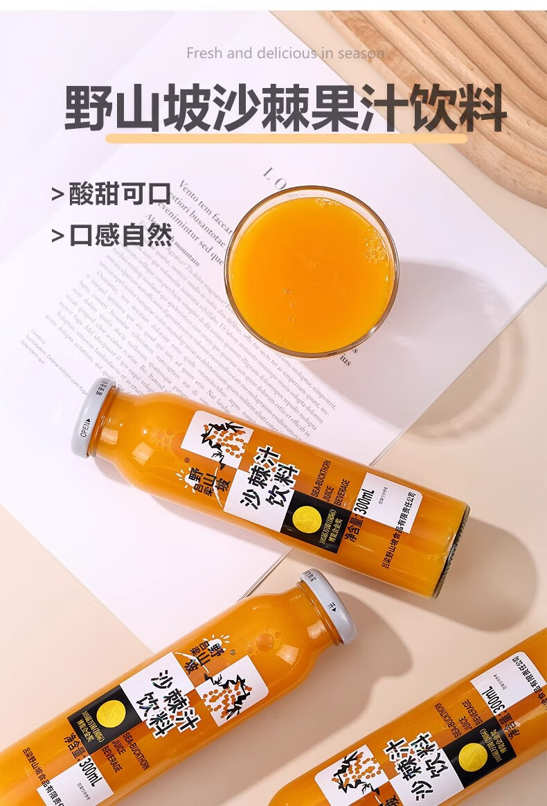 吕梁野山坡 沙棘汁 野生沙棘 山西特产 沙棘汁300ml*12瓶【40%果汁含量