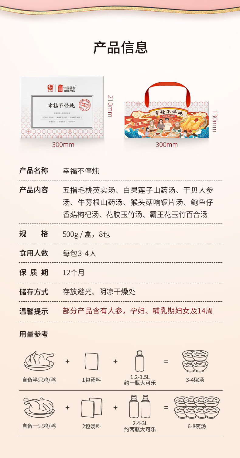 冯了性汤料包礼盒 精选年货过年送礼广东老火汤包药膳滋补煲汤共500g 靓汤礼盒 8包*1箱