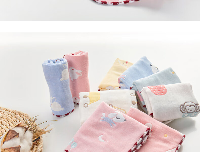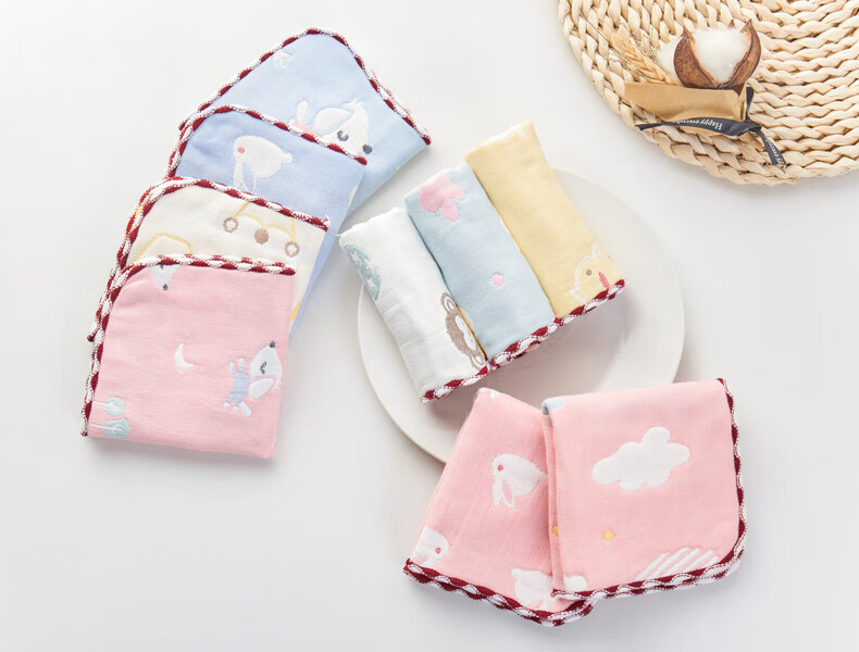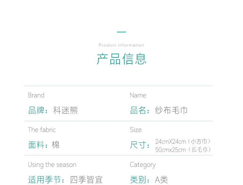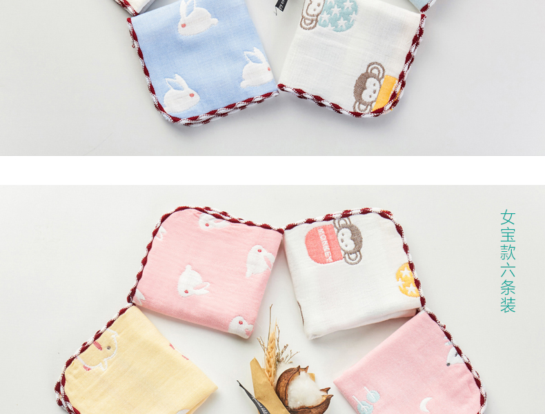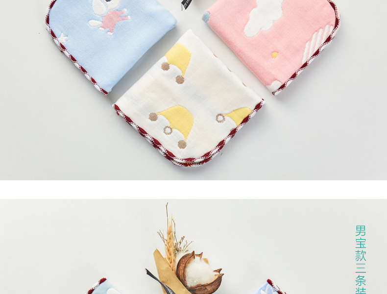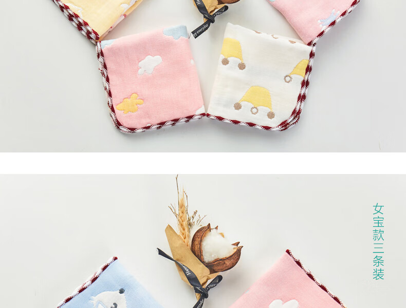 科迷熊(KOOMIBEAR)婴儿纱布口水巾宝宝洗脸毛巾儿童手帕小方巾 随机3条装