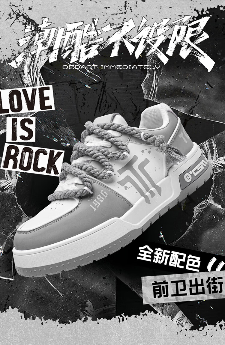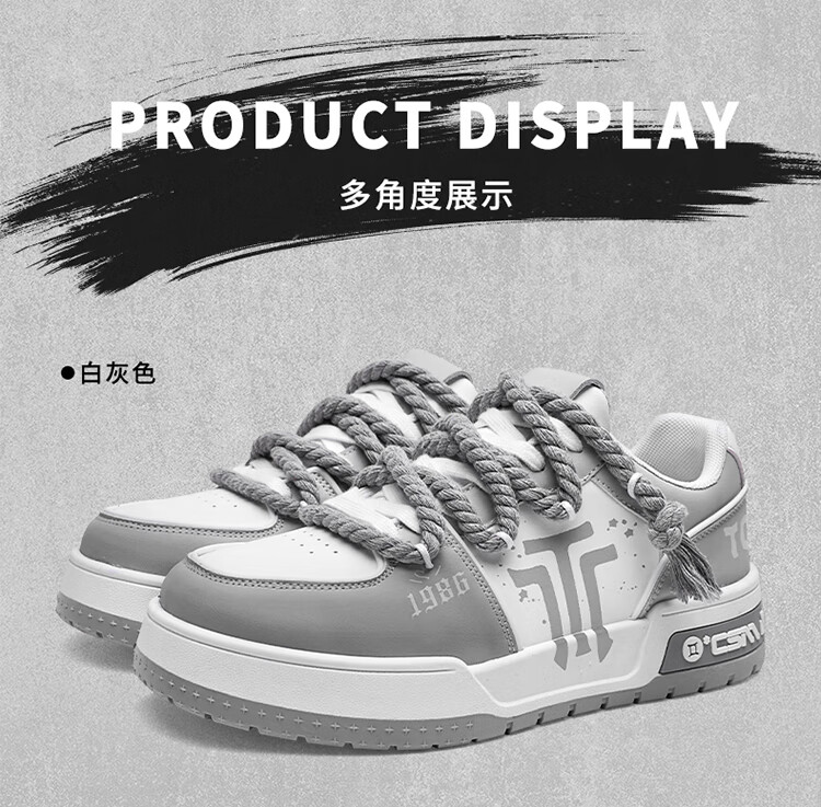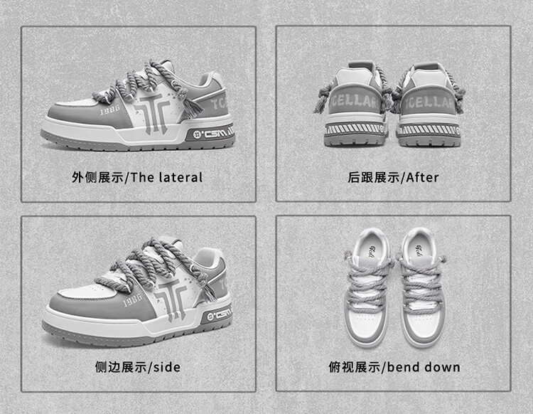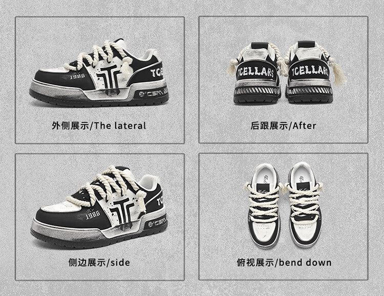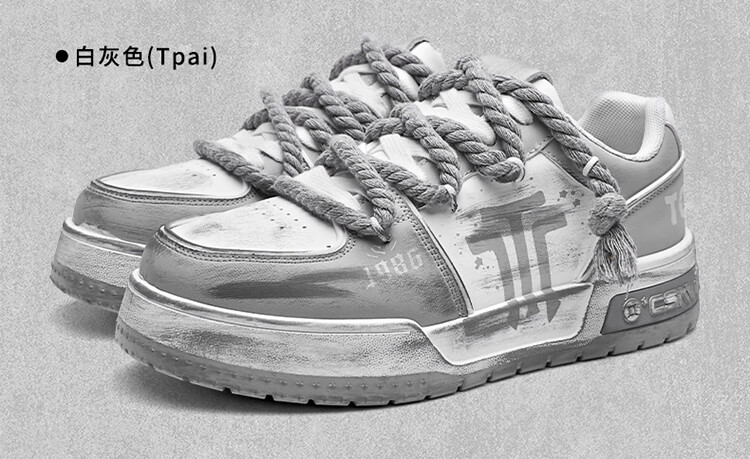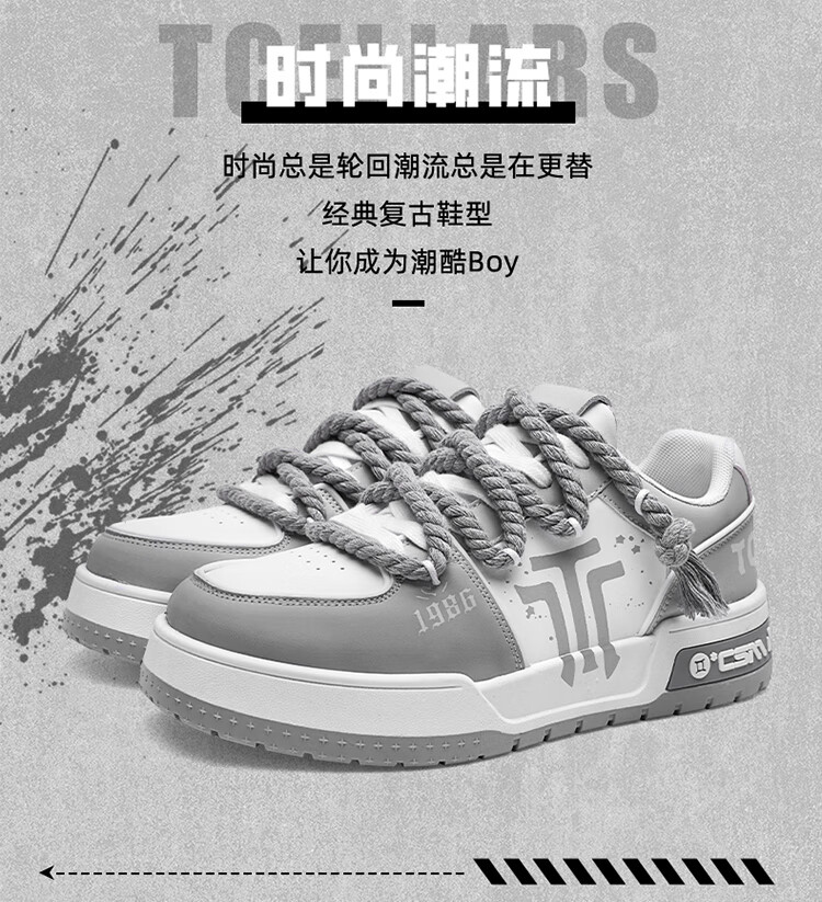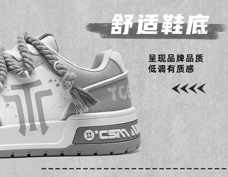 Tcellars男鞋春季新款潮流涂鸦厚底增高板鞋低帮舒适情侣款休闲鞋子男 白灰色 41