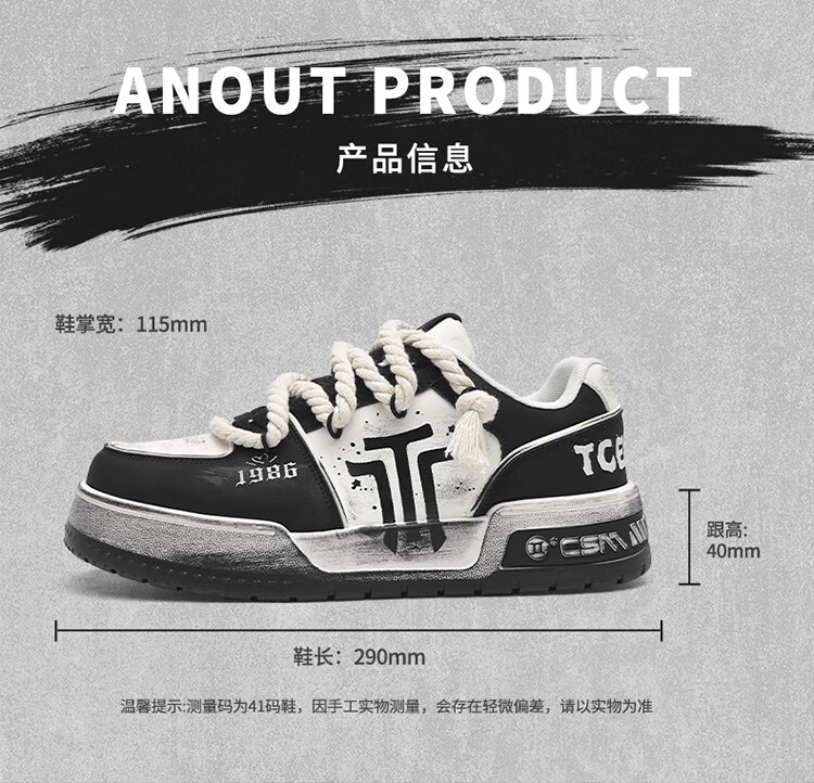 EQLZ义阔 FAULT 25 男款低帮反硫化错版鞋情侣款板鞋女休闲鞋无中生有 黑柠 43
