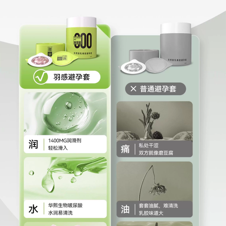 羽感000裸入无套感超薄避孕套1400mg玻尿酸男用安全套官方正品 【000无感套】13只:小绿罐11只+布丁2只