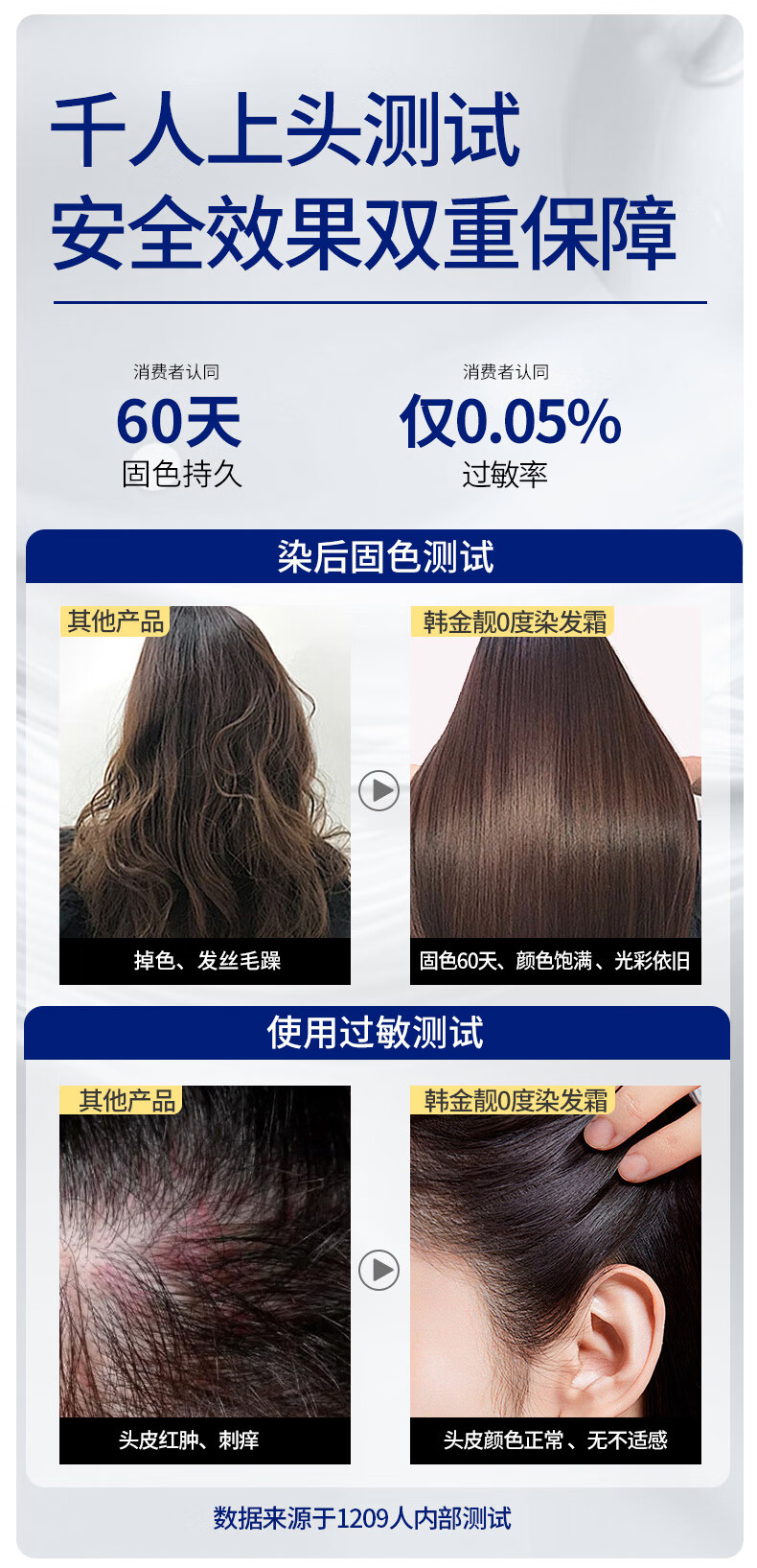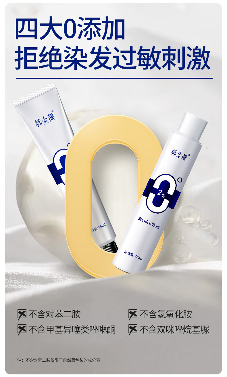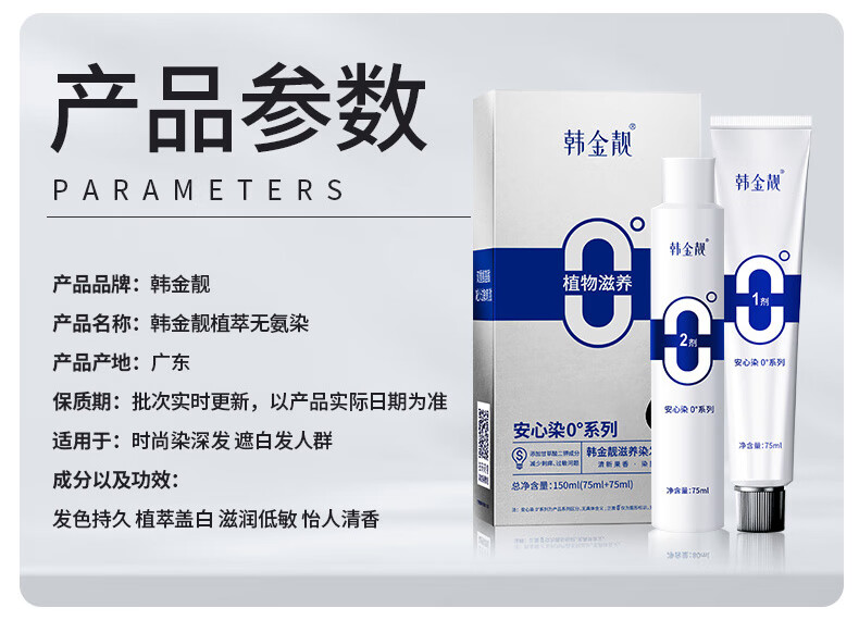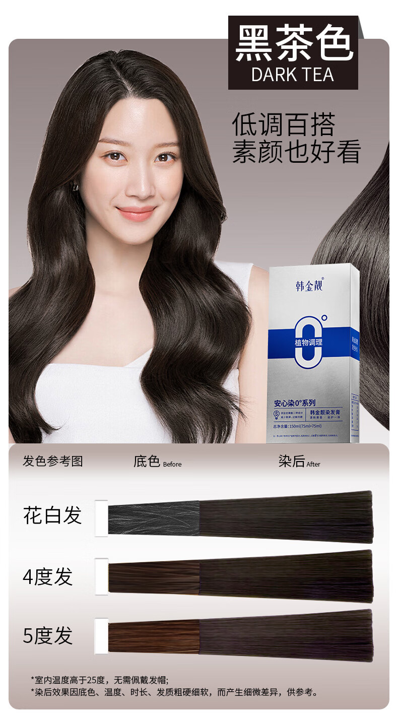 韩金靓无氨染发膏孕妇可用自己在家染男女不伤头皮植物染发剂遮盖白发 自然黑 150ml*1盒