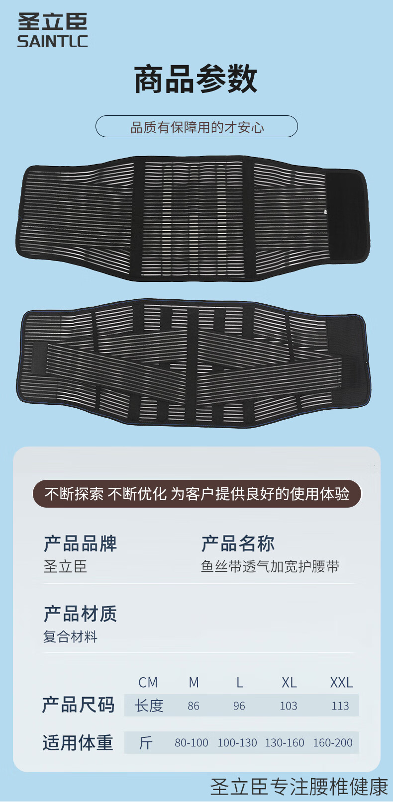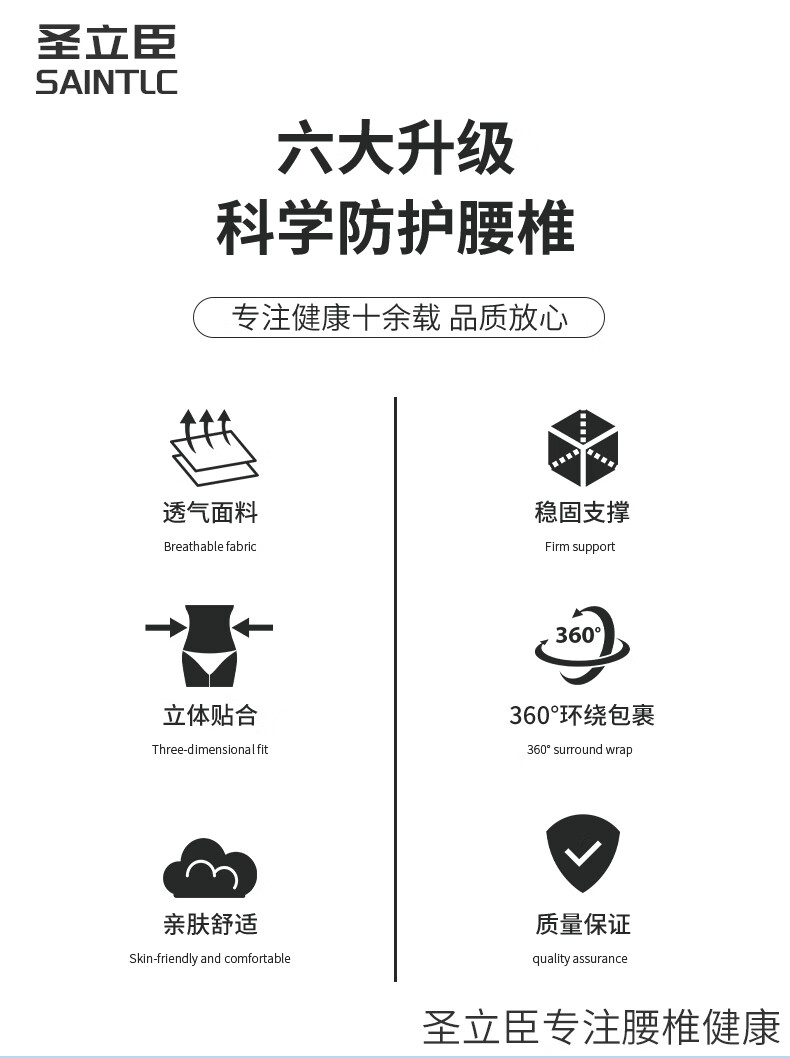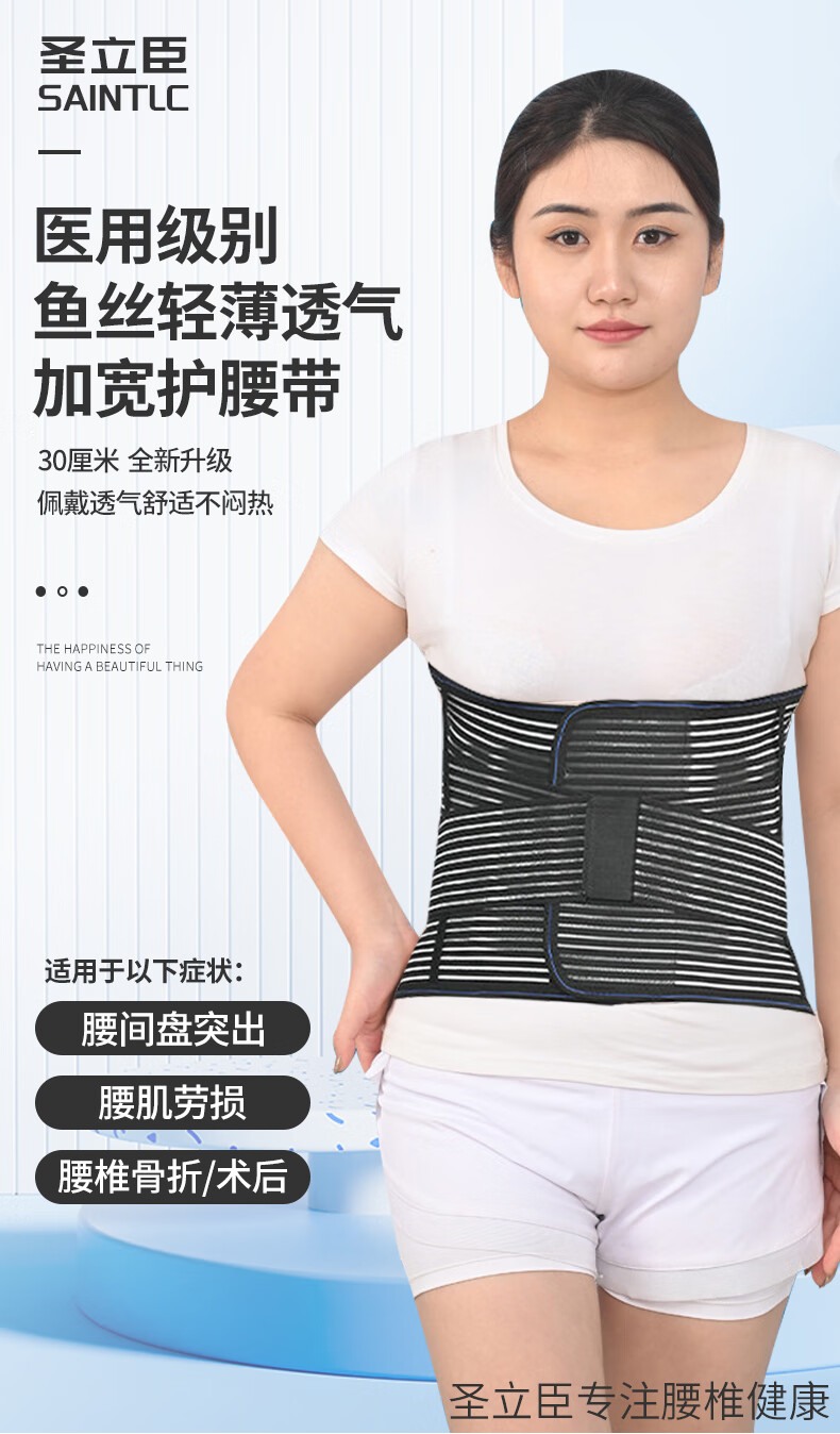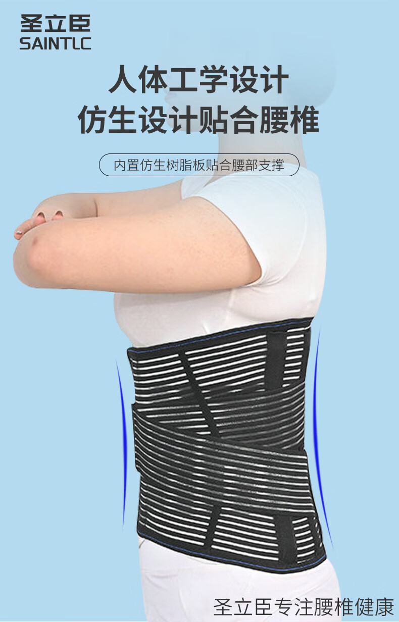 圣立臣医用透气加宽护腰带腰椎骨折术后腰间盘突出腰肌劳损支撑腰托腰围 黑色加宽30CM-五根树脂板支撑 XL 适用体重130-160斤