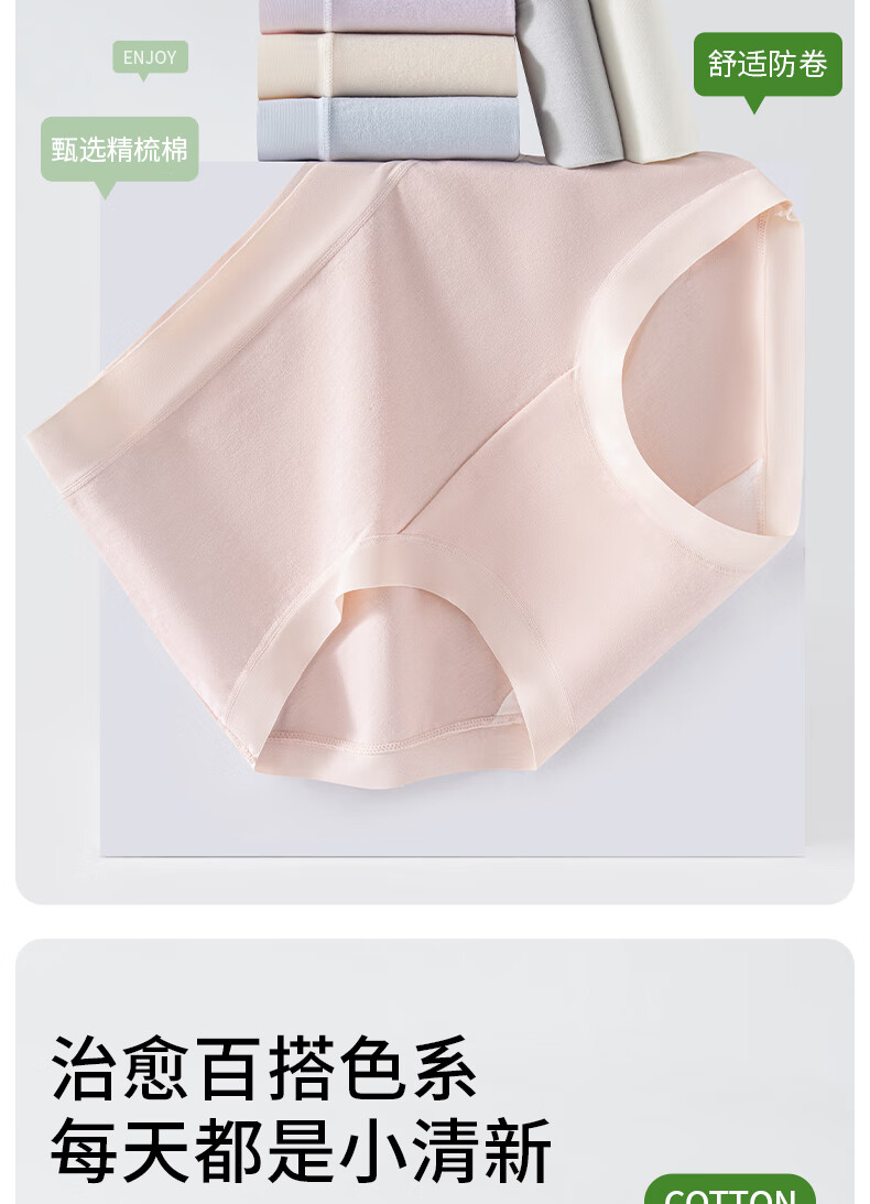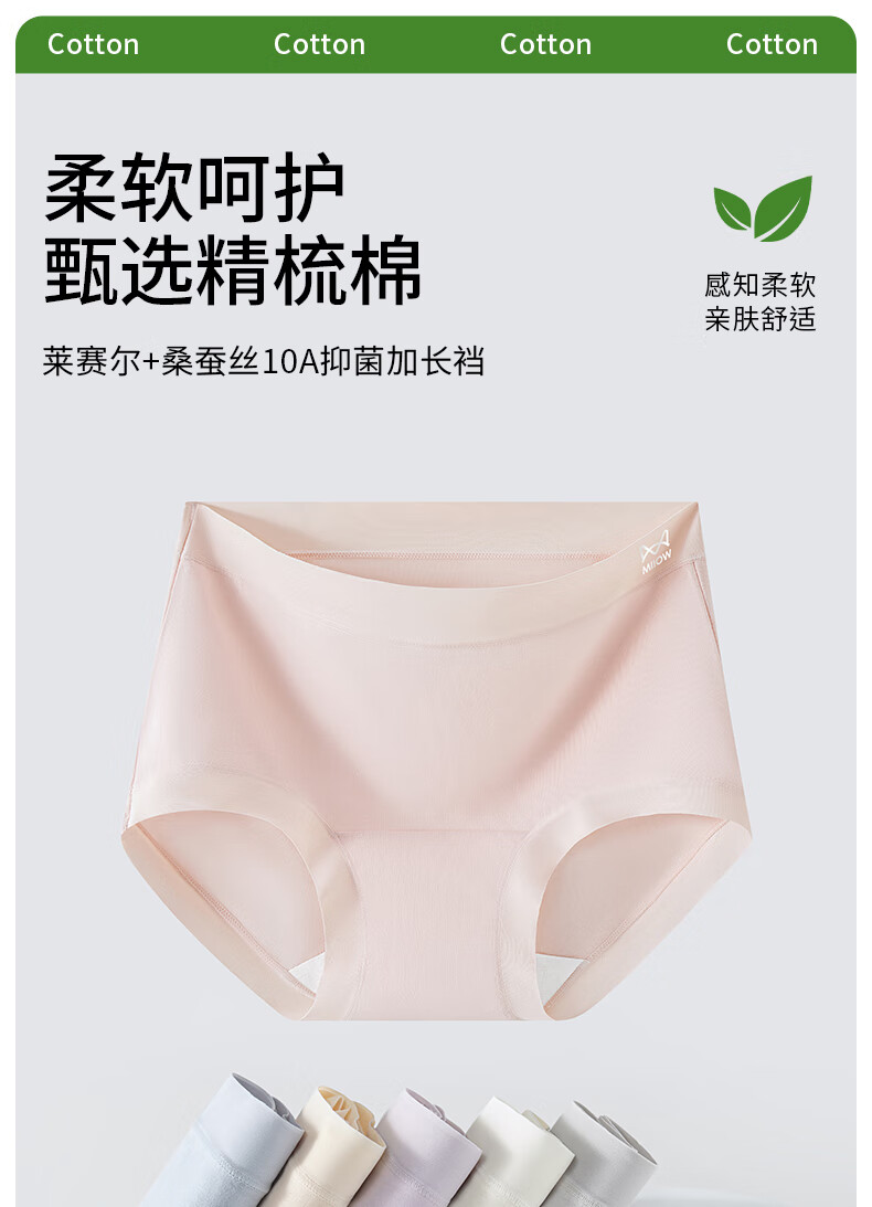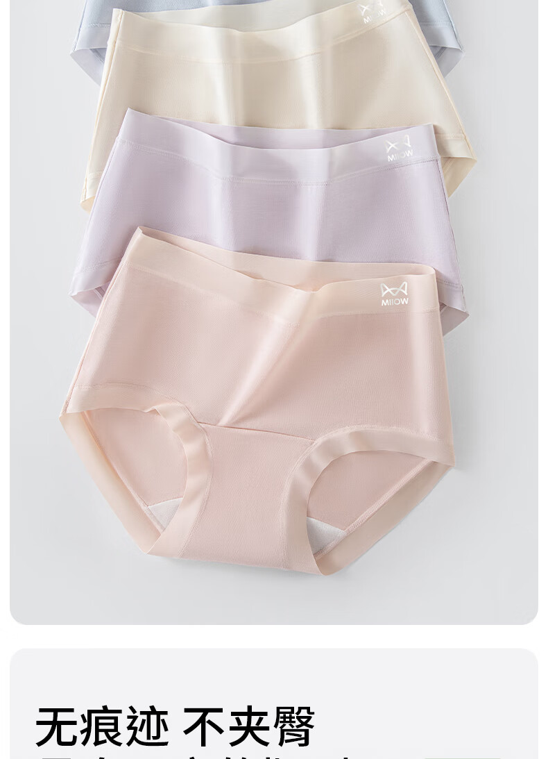 猫人25年新品纯棉女士内裤10A抗菌抑菌档透气舒适女式内裤三角短裤衩 粉色+蓝色+紫色 3条 XL 【建议125-145斤】