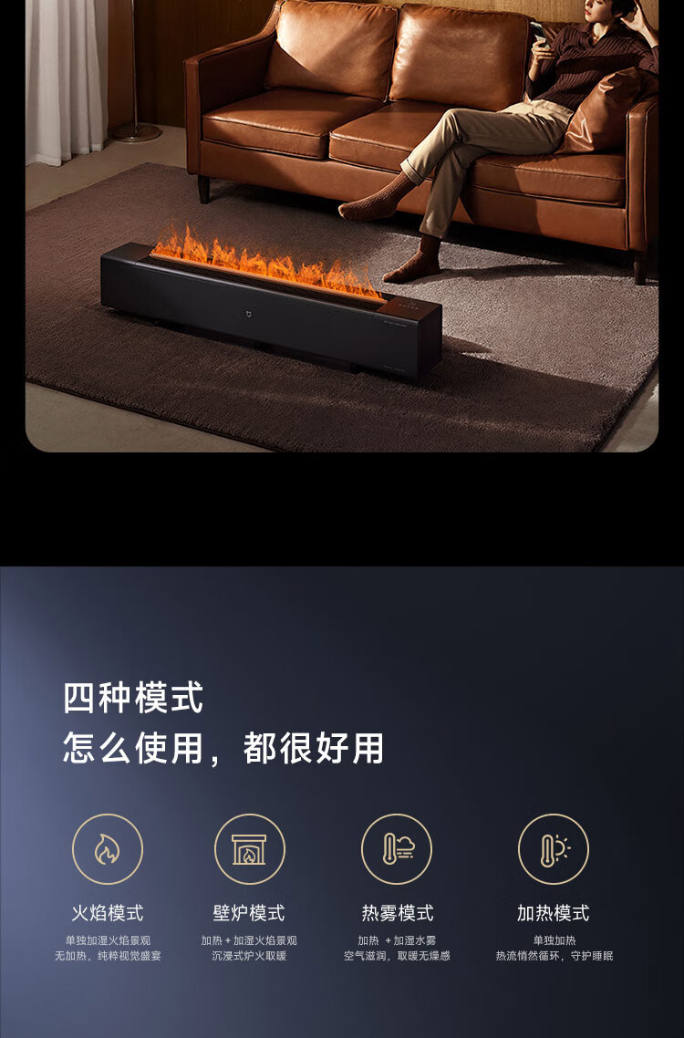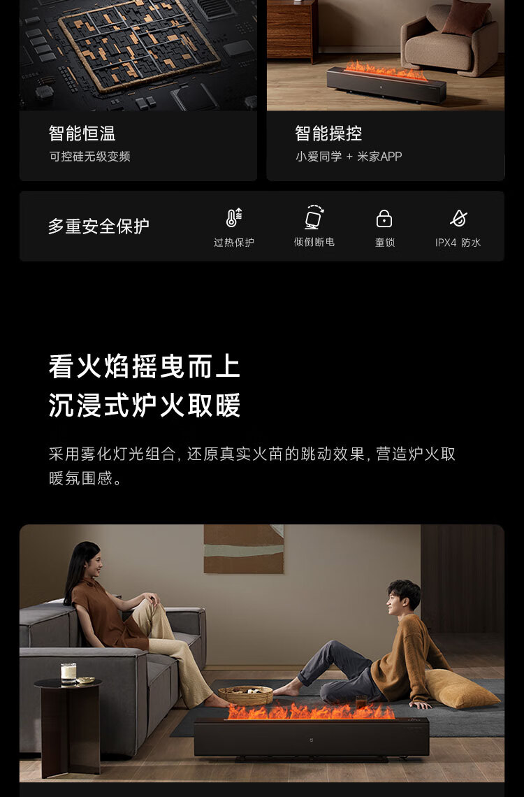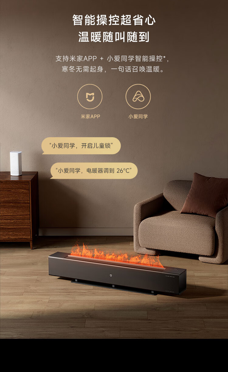 米家小米取暖器APP智能电热取暖器石墨烯踢脚线电暖器火焰版双石墨烯京东自营TJXDNQ06ZM