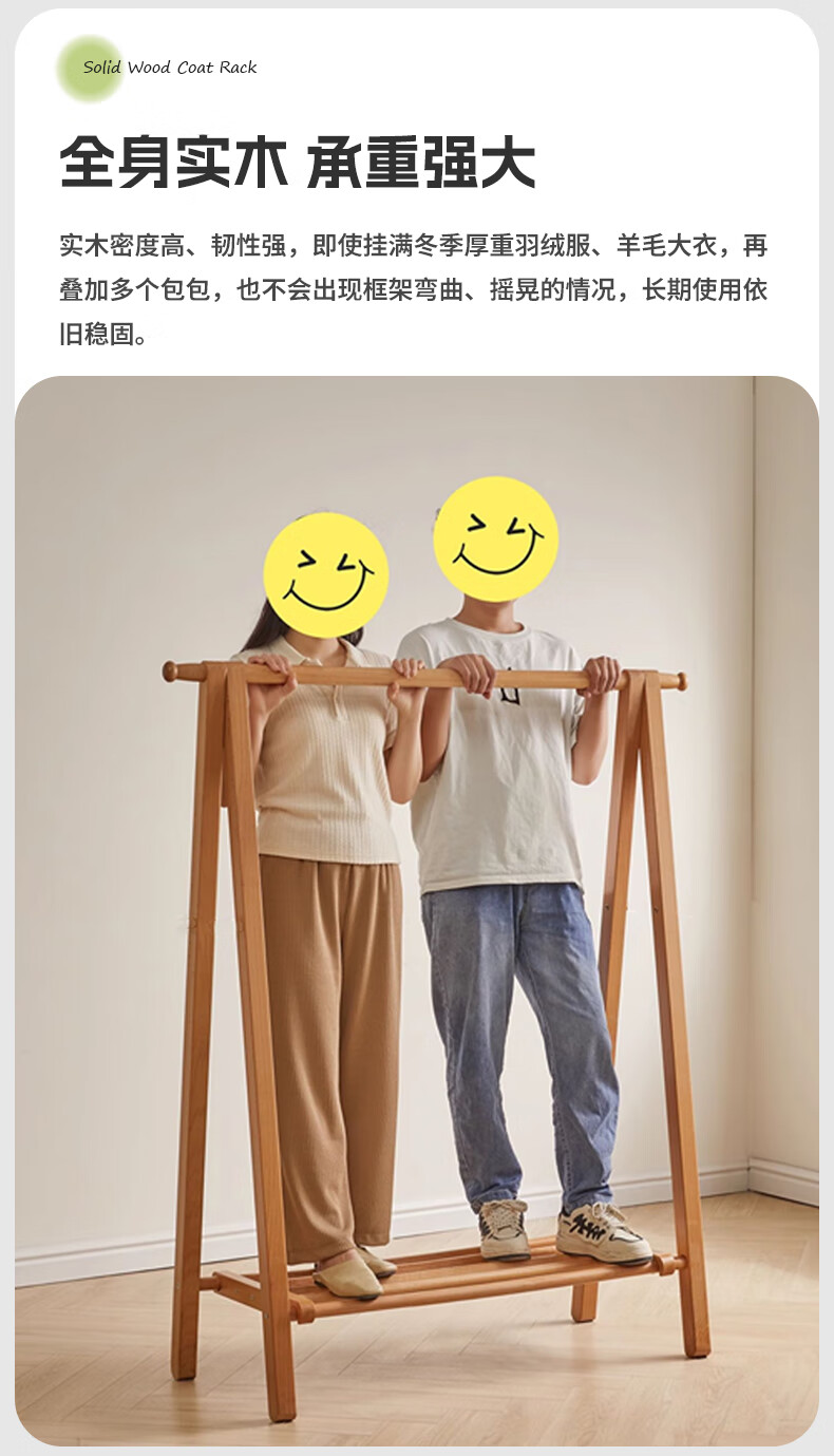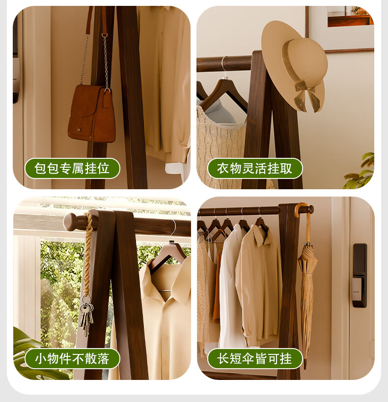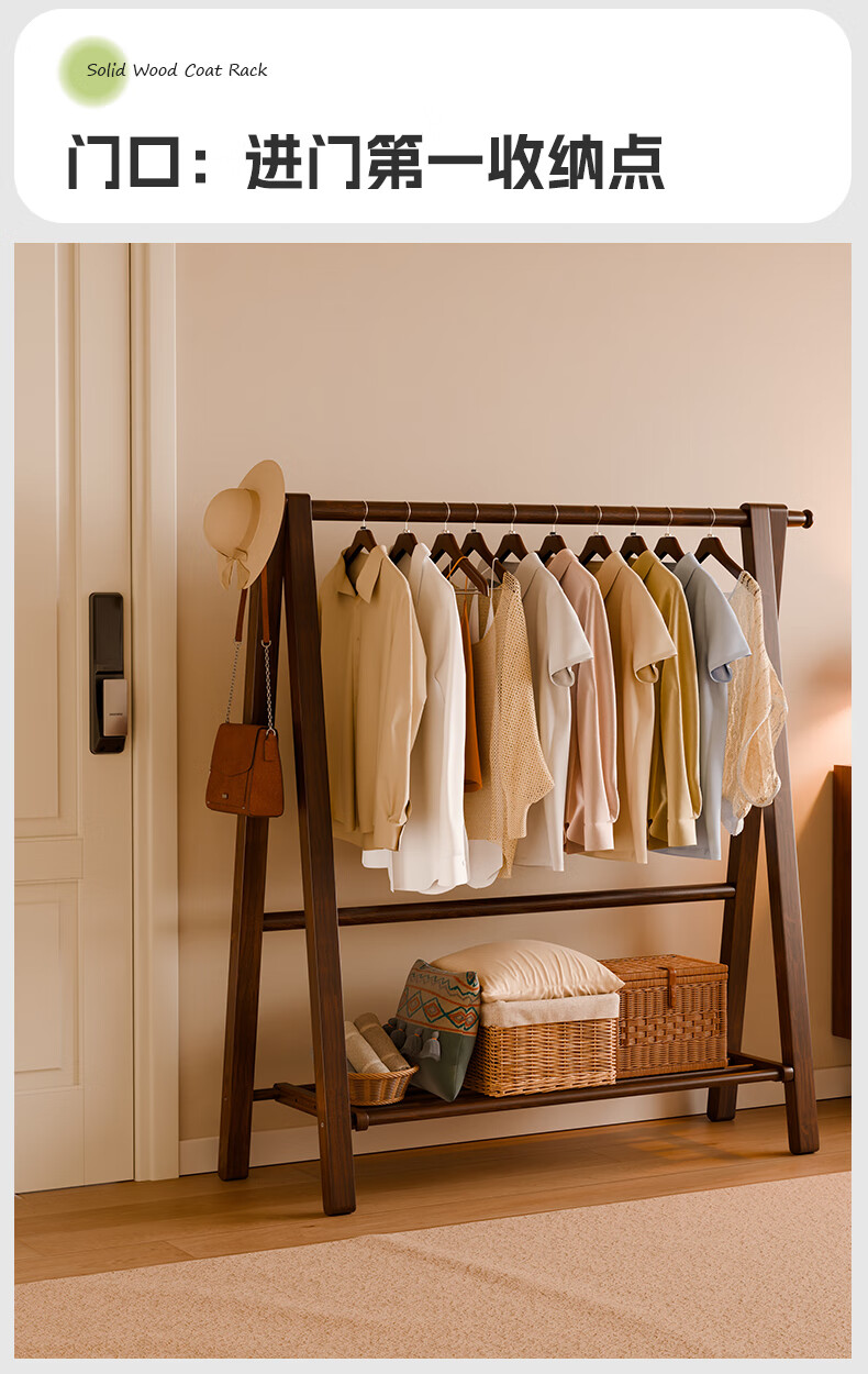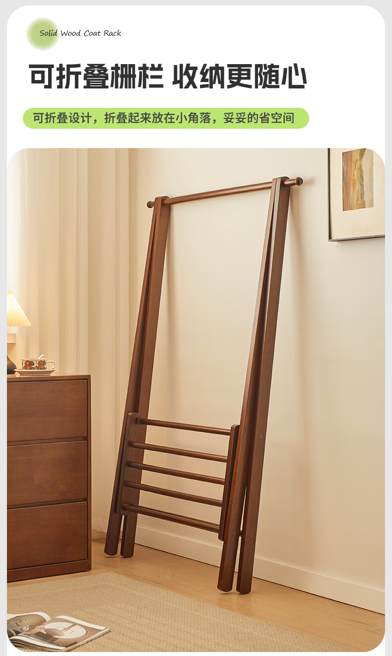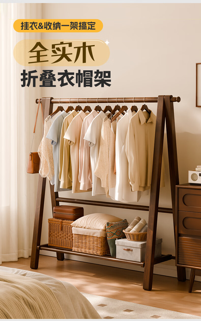 家逸衣架落地实木衣帽架卧室挂衣架可折叠衣架挂衣服架子门口置物架
