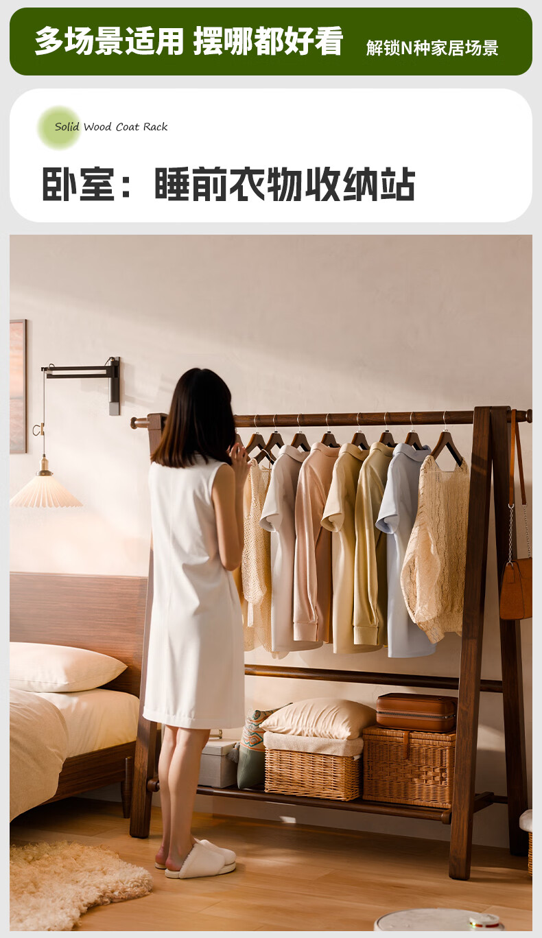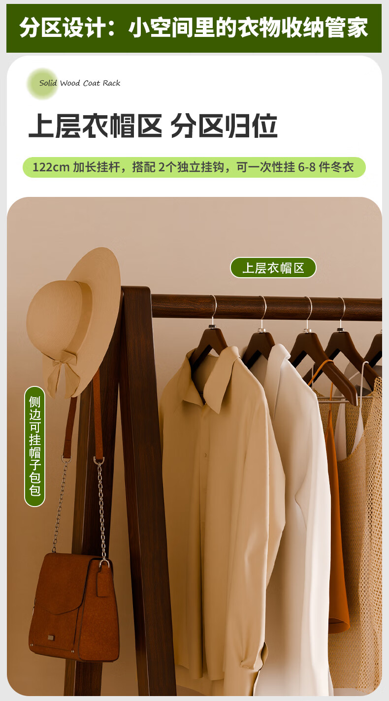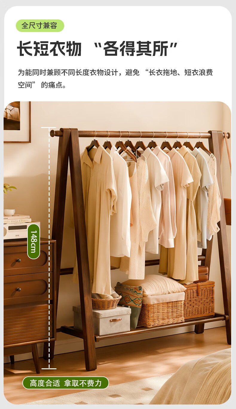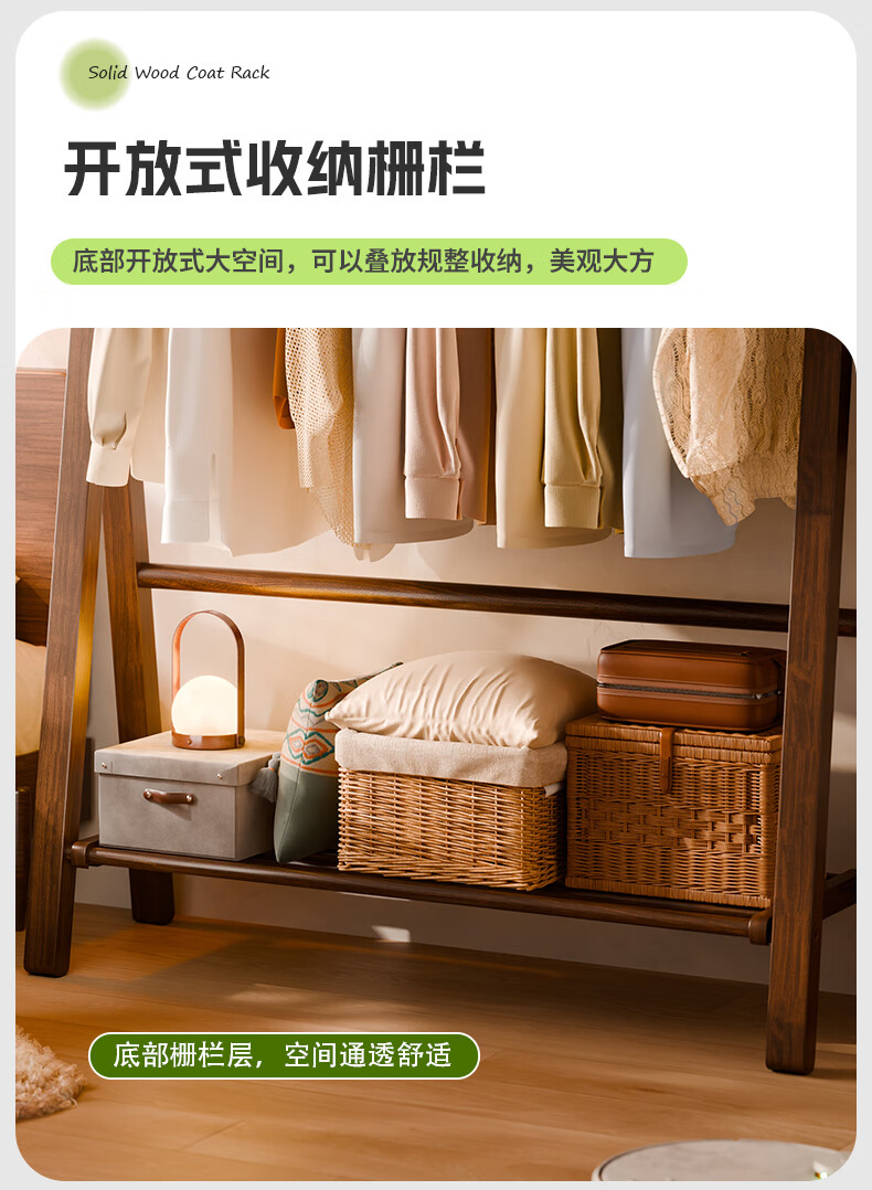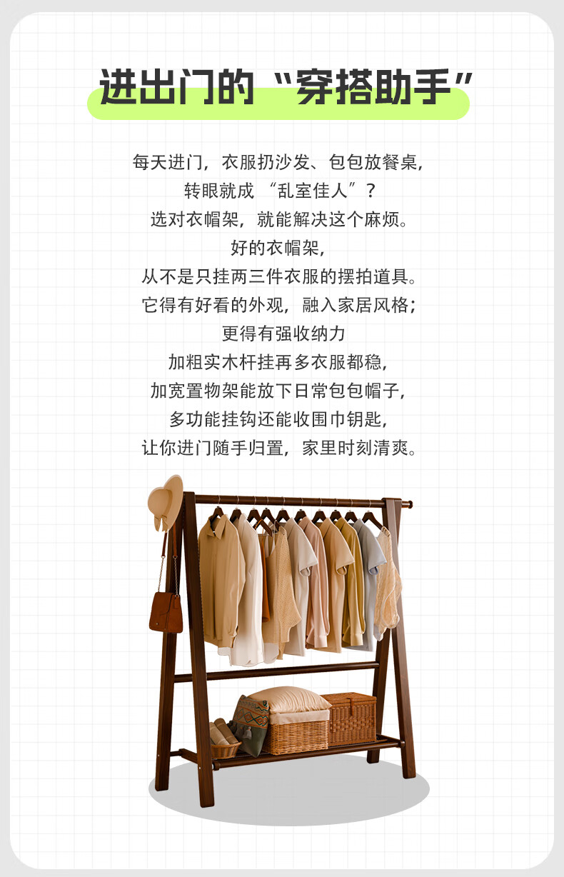 家逸衣架落地实木衣帽架卧室挂衣架可折叠衣架挂衣服架子门口置物架