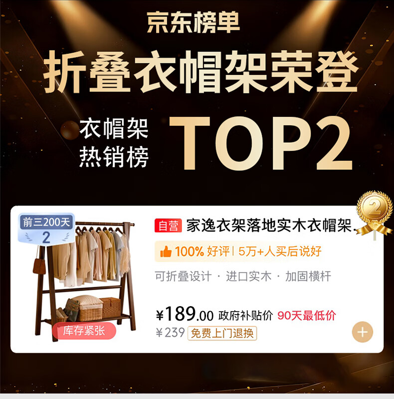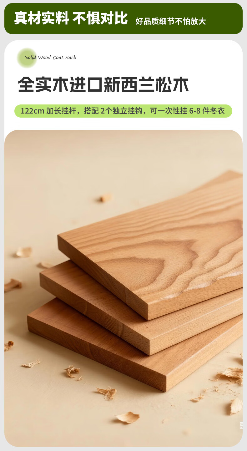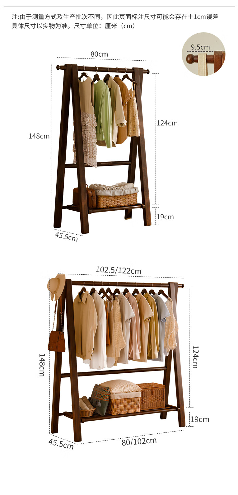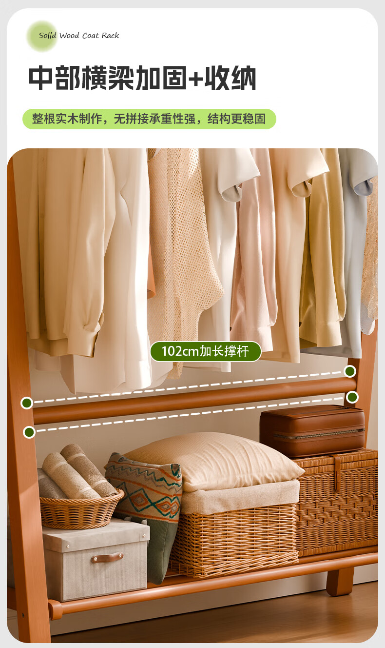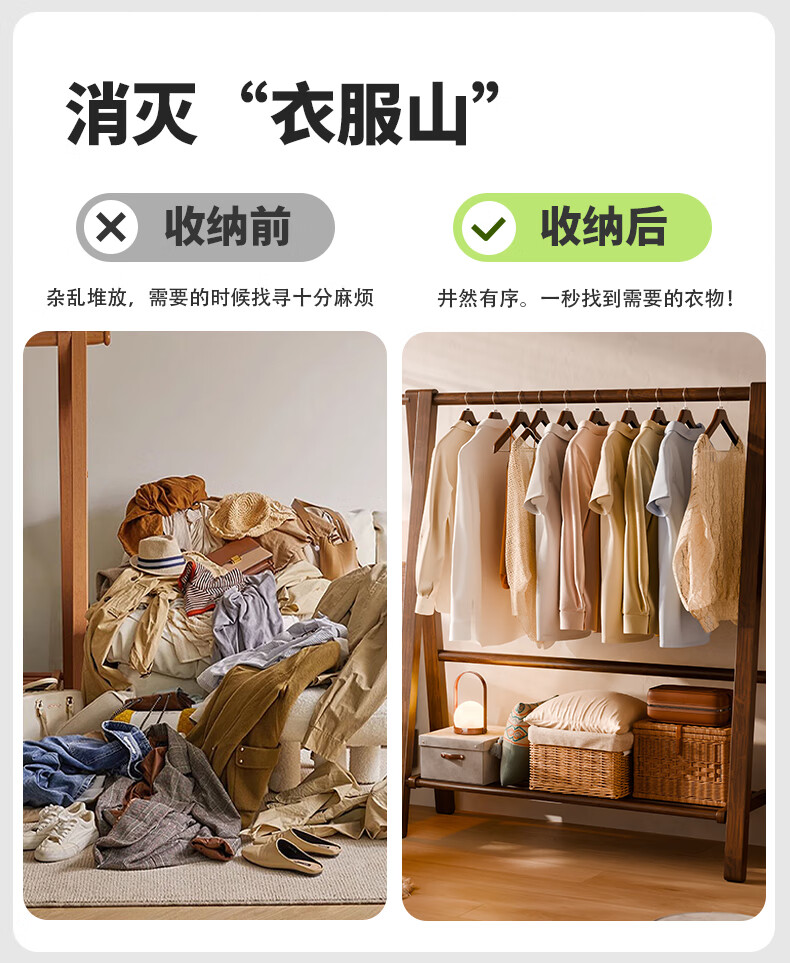 家逸衣架落地实木衣帽架卧室挂衣架可折叠衣架挂衣服架子门口置物架