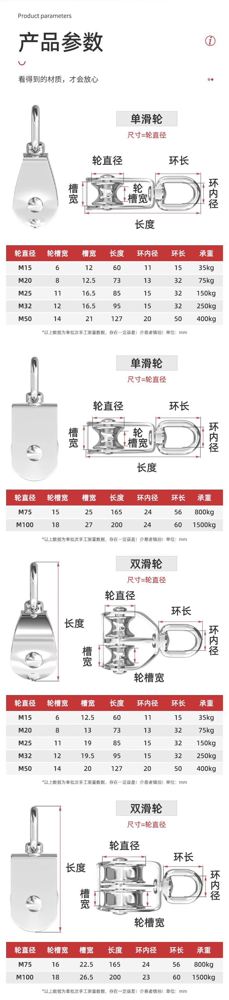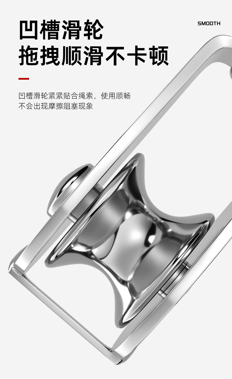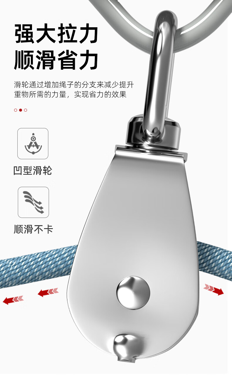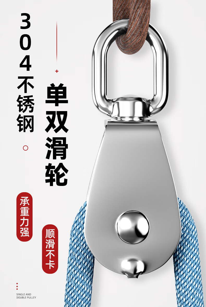 天卓五金304不锈钢滑轮钢丝绳U型吊环定滑轮单双轮子起重滑轮吊钩省力工具 M15【单轮】承重35公斤(适用6毫米以下绳子)3个