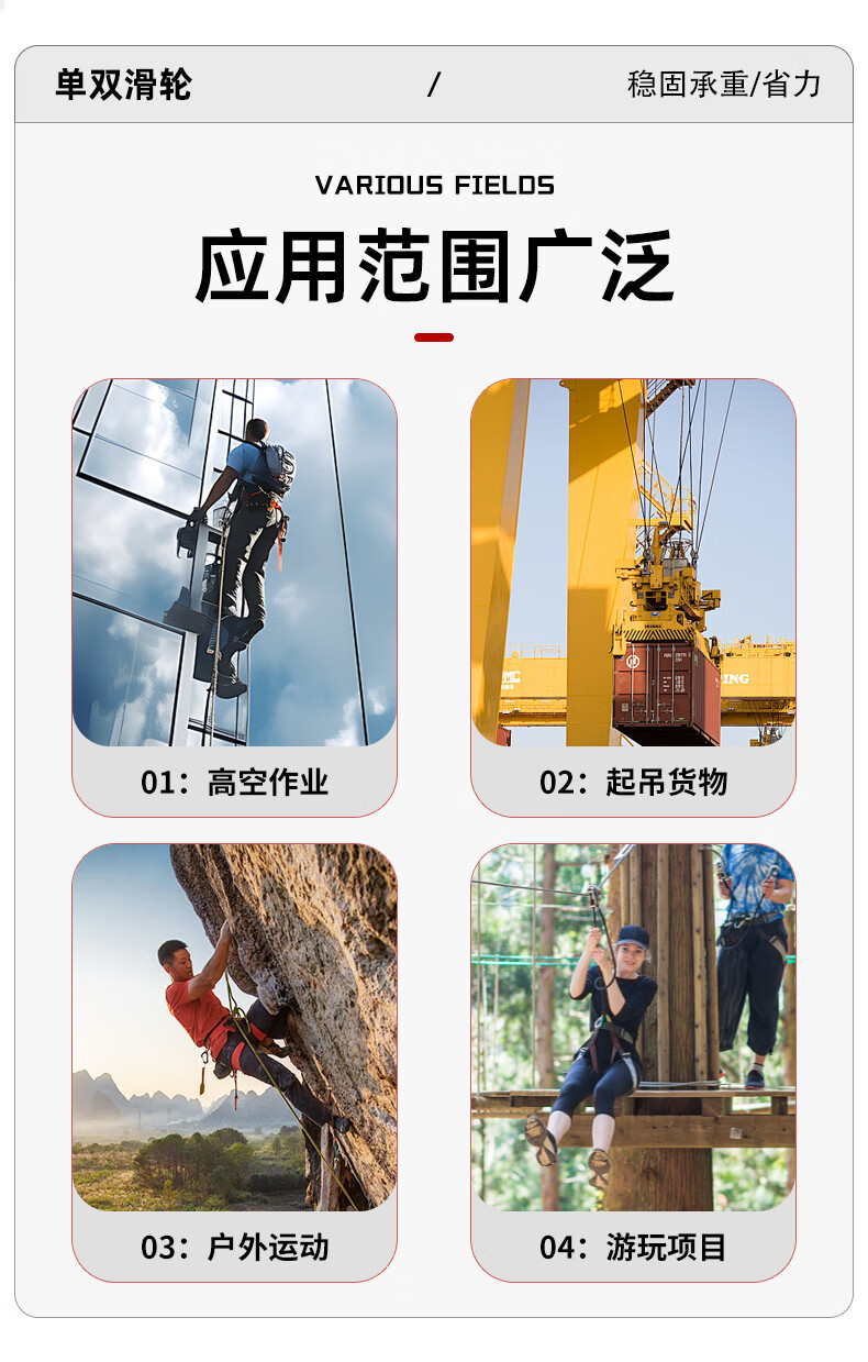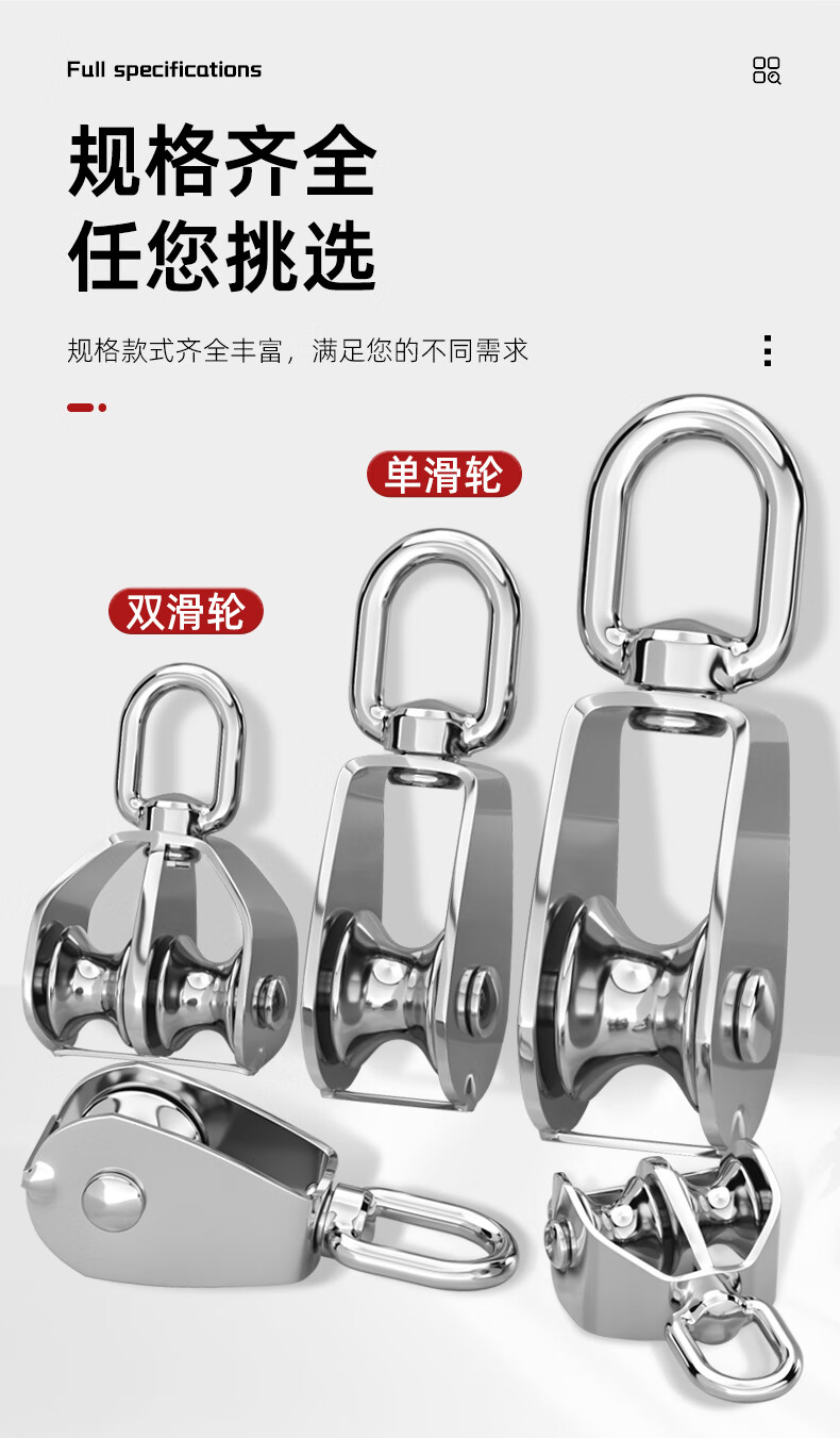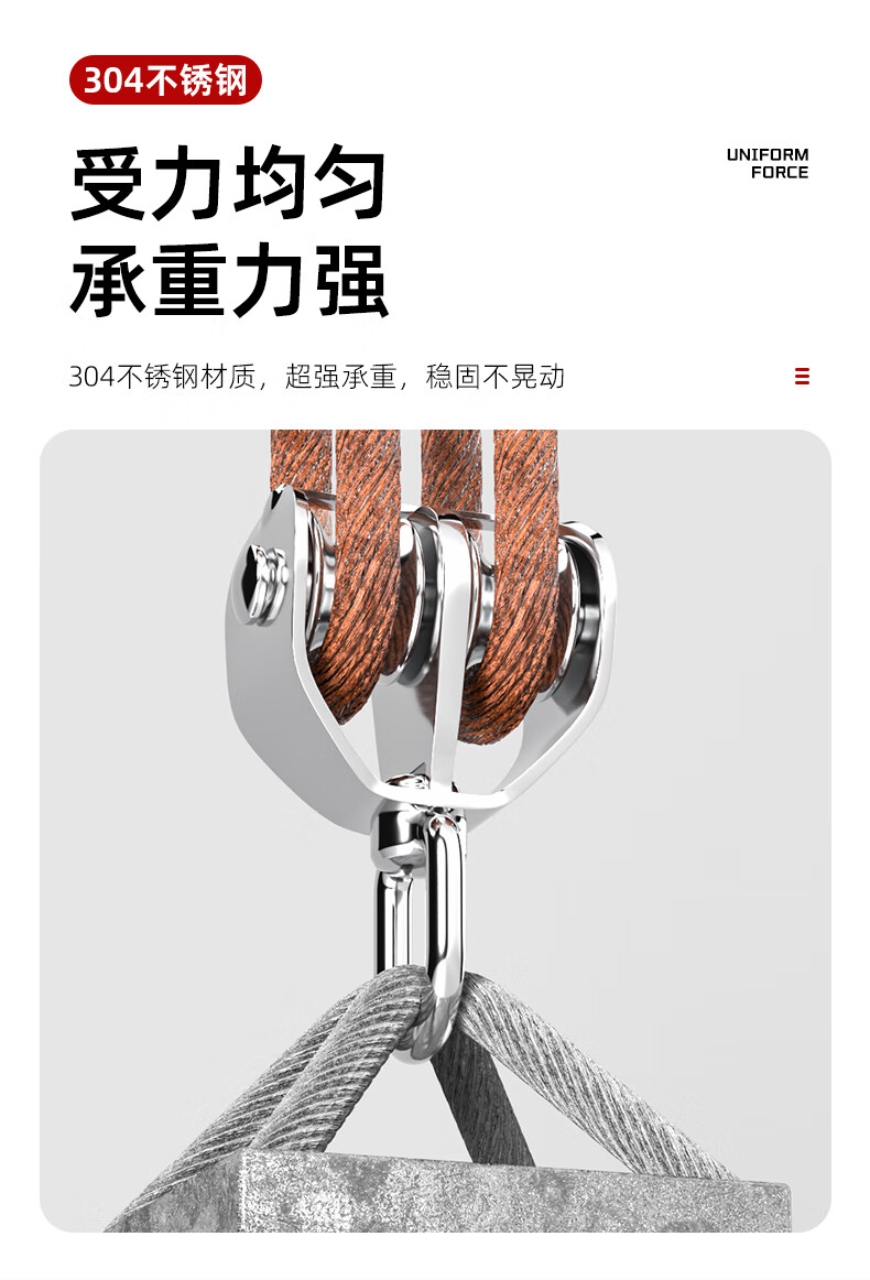 天卓五金304不锈钢滑轮钢丝绳U型吊环定滑轮单双轮子起重滑轮吊钩省力工具 M15【单轮】承重35公斤(适用6毫米以下绳子)3个