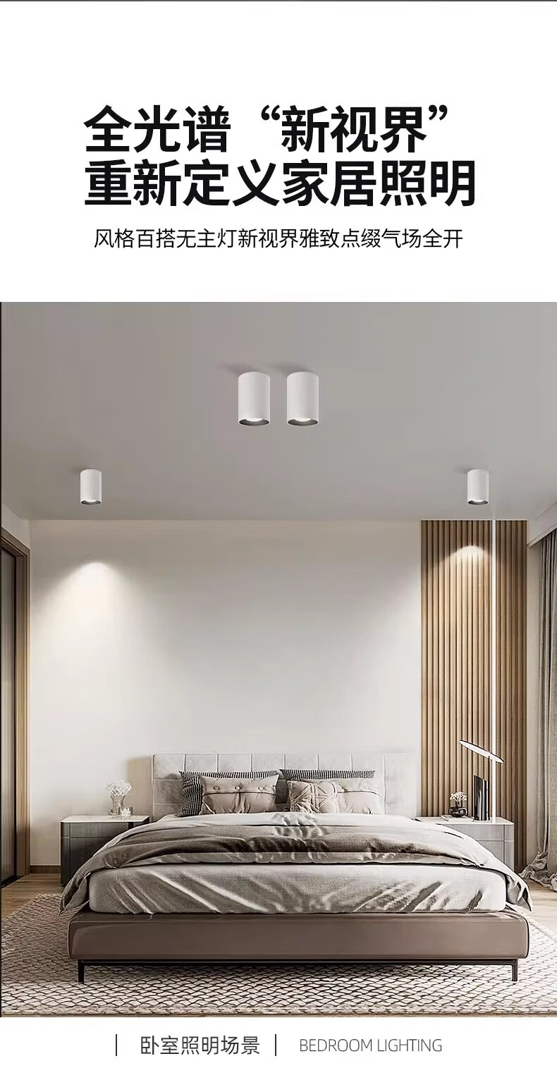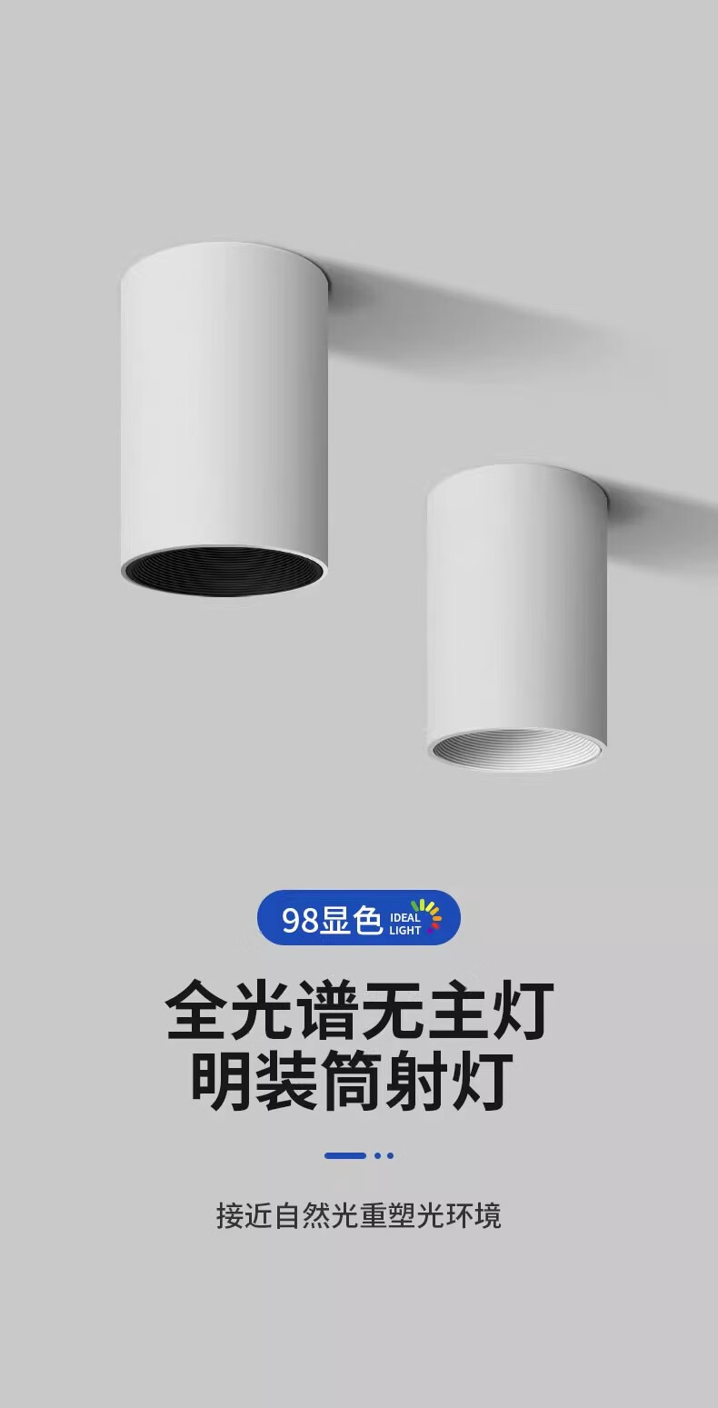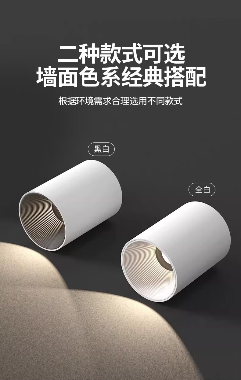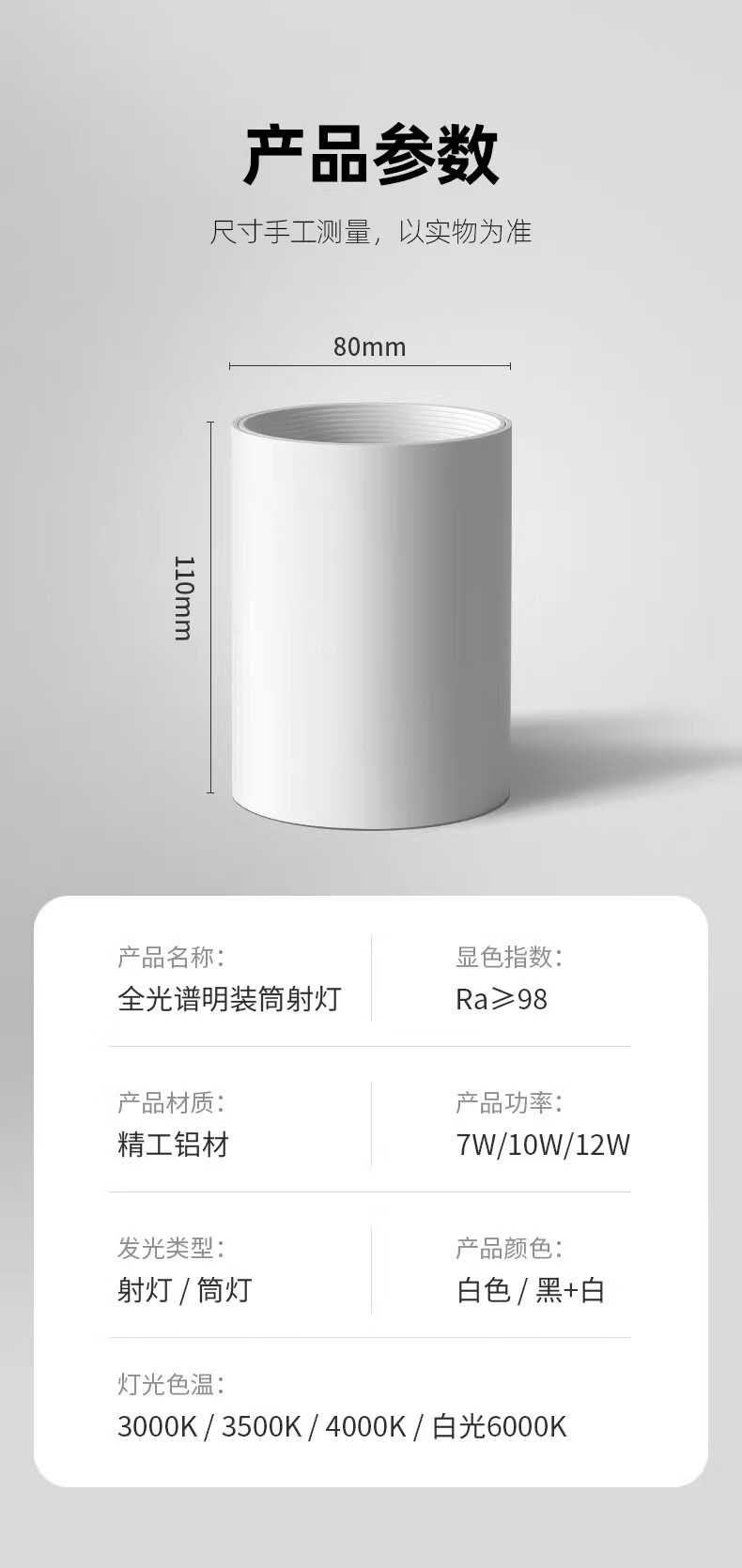 拉伯塔明装射灯长桶防眩小山丘家用无主灯免开孔天花吸顶卧室过道灯筒灯 射灯【白杯7W】普瑞全光谱 暖光3000K