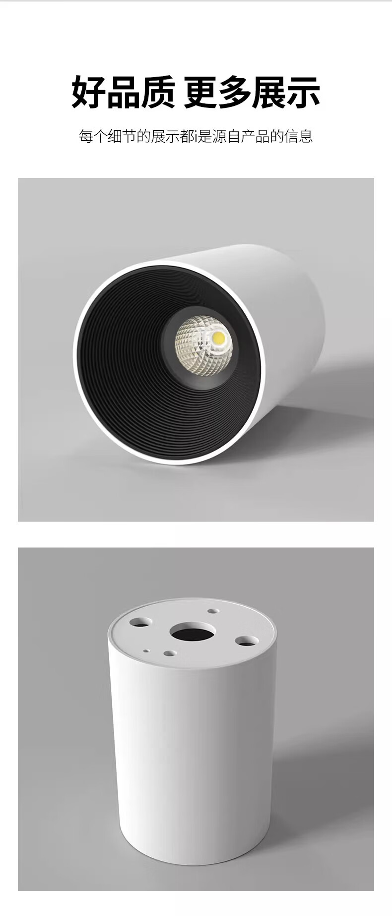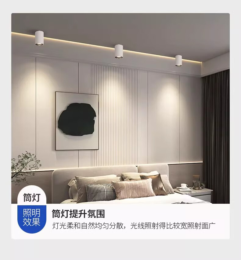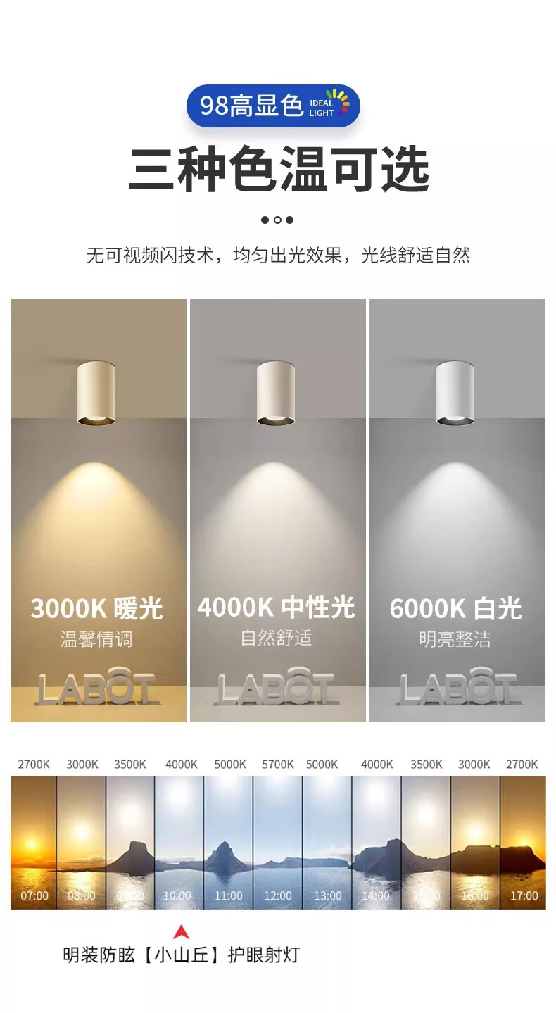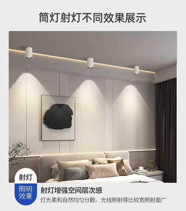 拉伯塔明装射灯长桶防眩小山丘家用无主灯免开孔天花吸顶卧室过道灯筒灯 射灯【白杯7W】普瑞全光谱 暖光3000K
