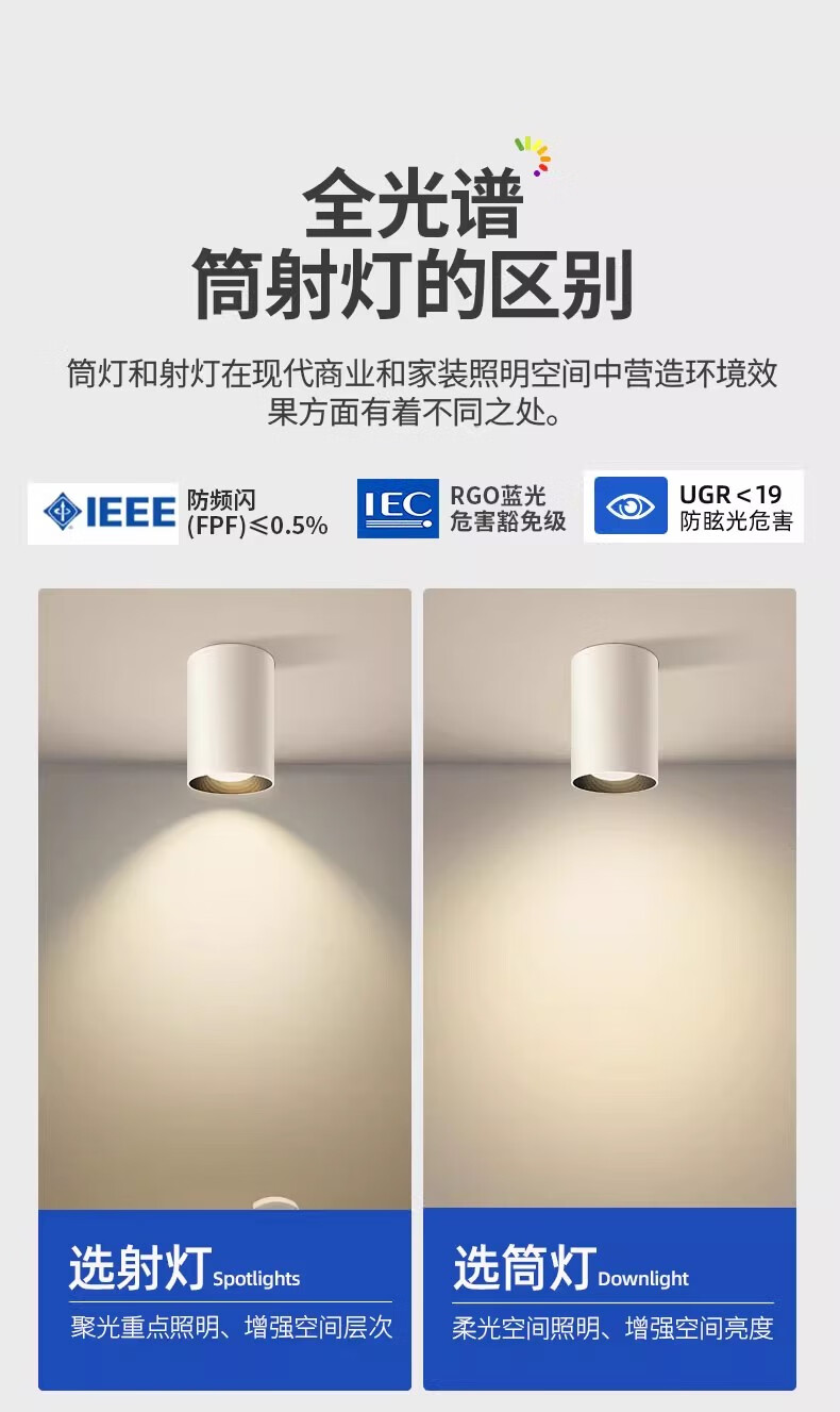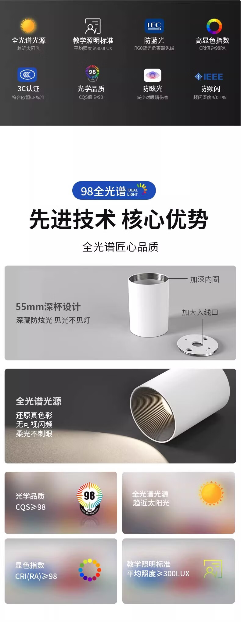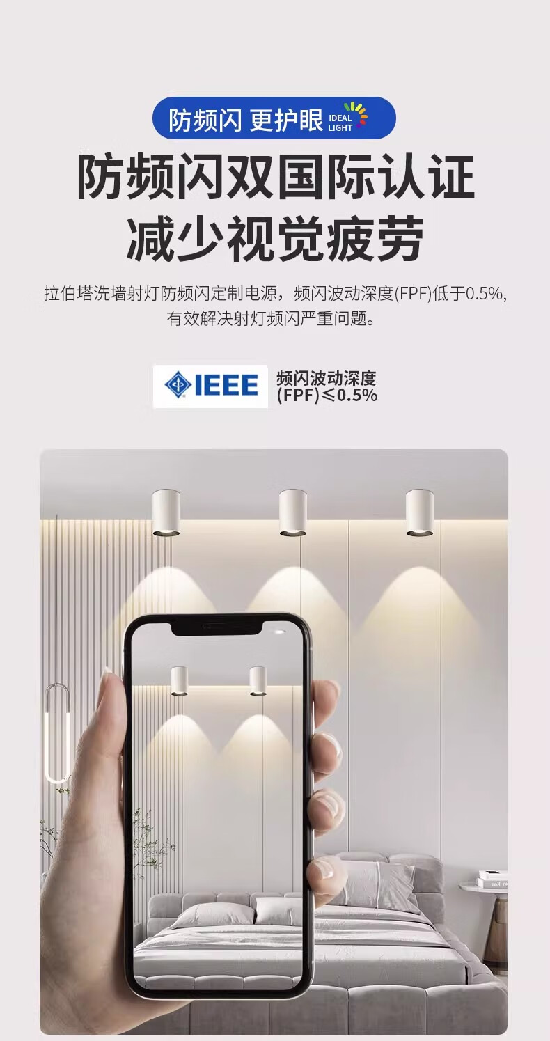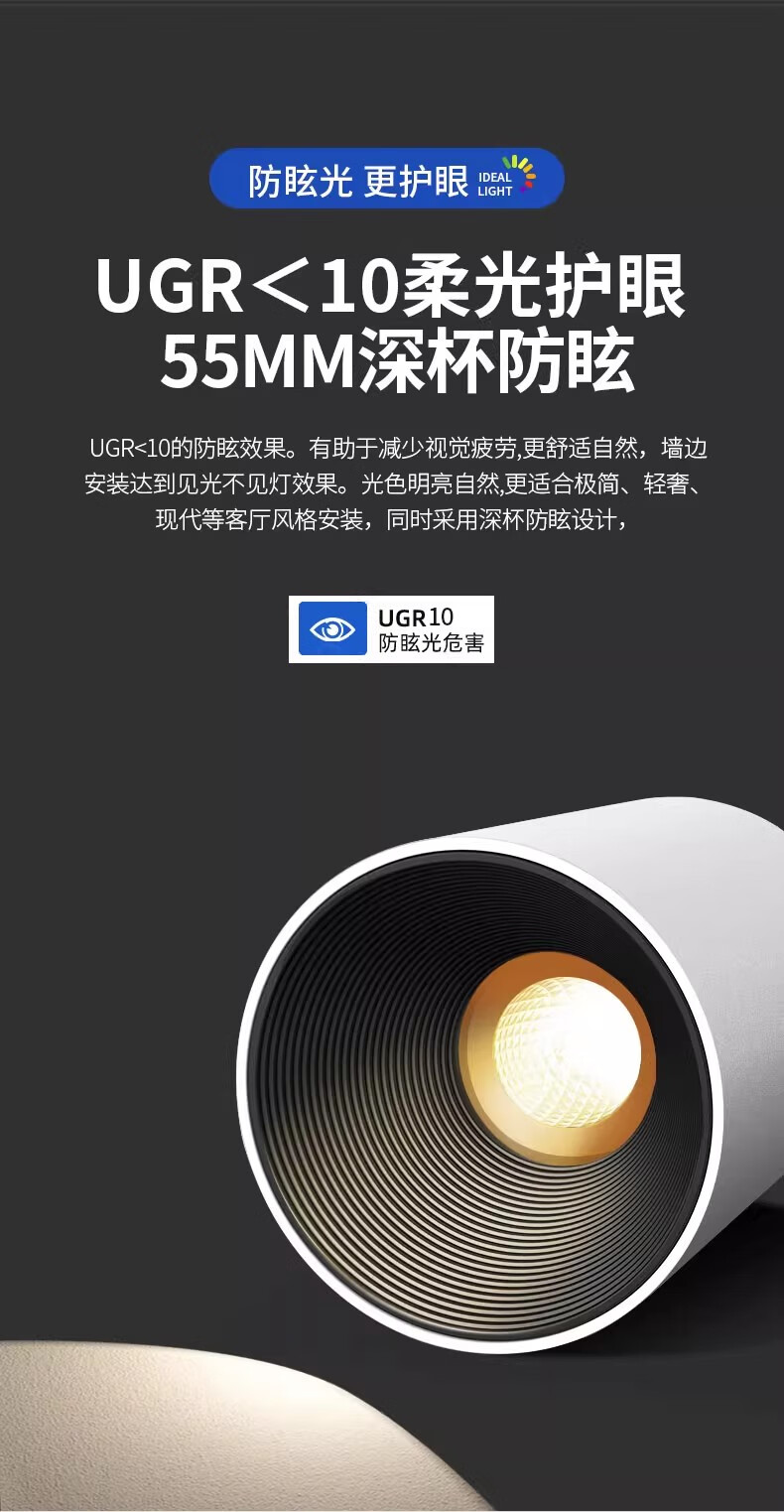 拉伯塔明装射灯长桶防眩小山丘家用无主灯免开孔天花吸顶卧室过道灯筒灯 射灯【白杯7W】普瑞全光谱 暖光3000K