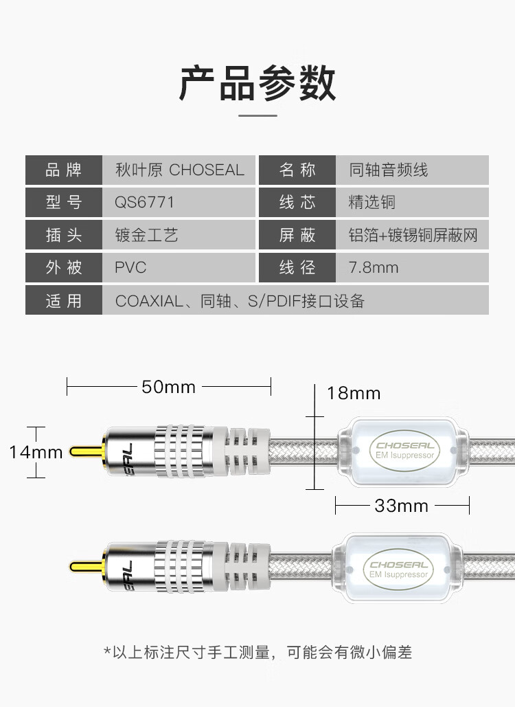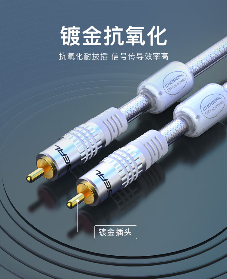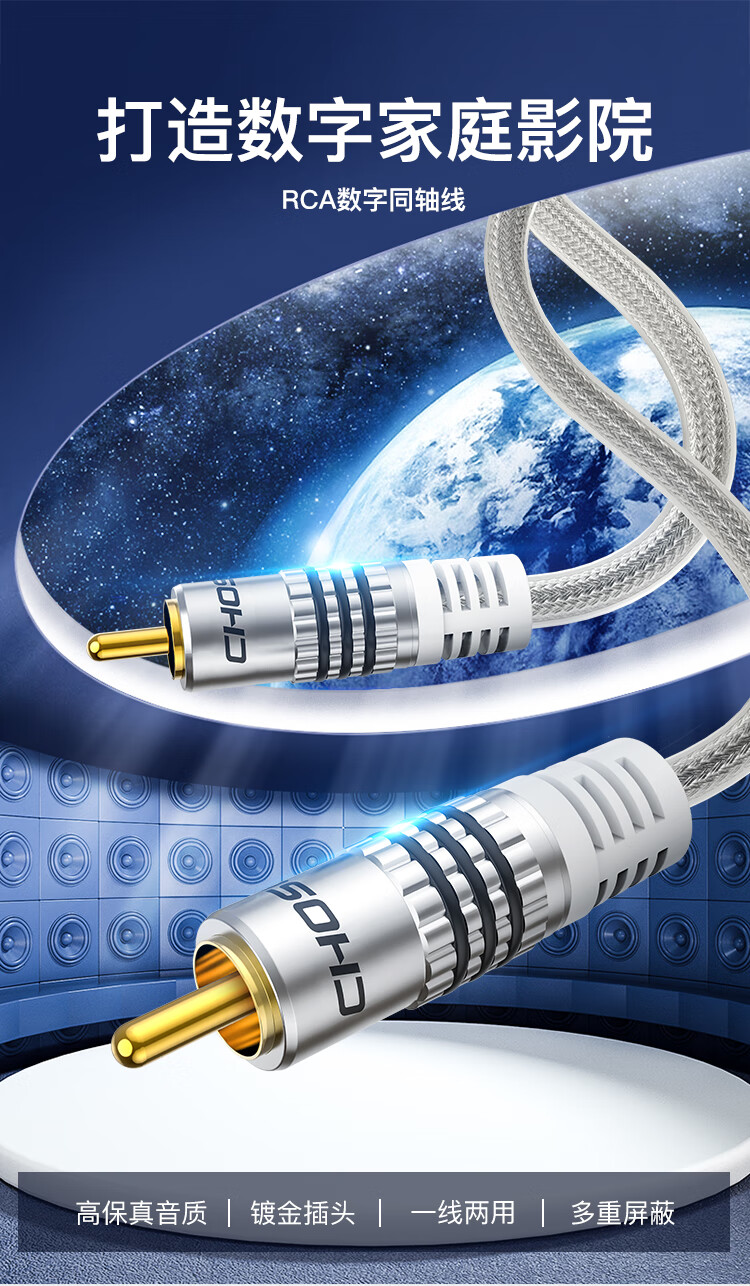 秋叶原(CHOSEAL)RCA莲花头数字同轴线音频线 公对公转接线 SPDIF5.1音响箱电视功放连接线 5米 QS6771T5