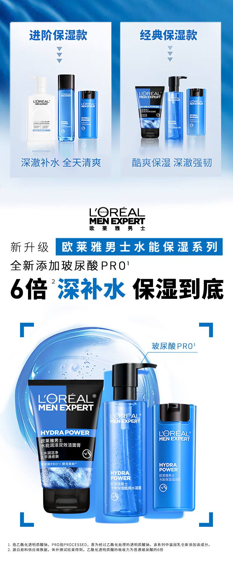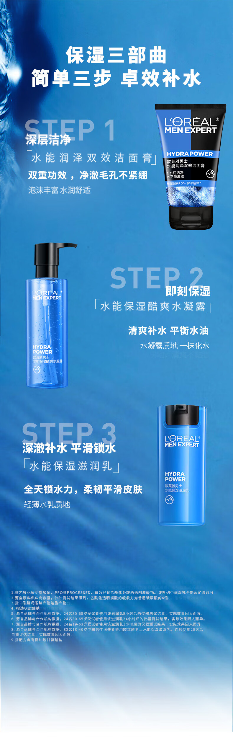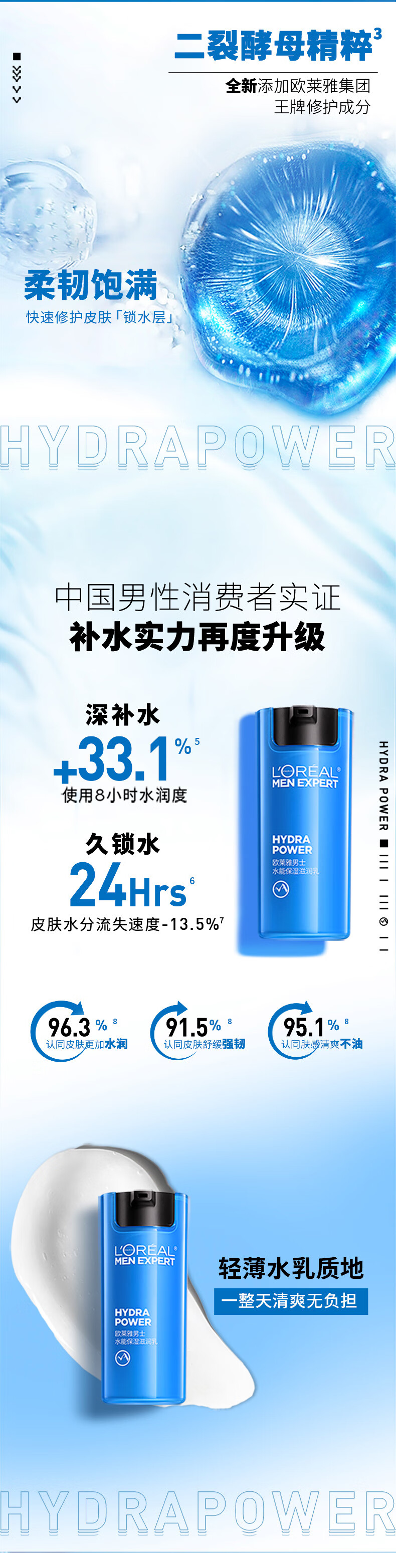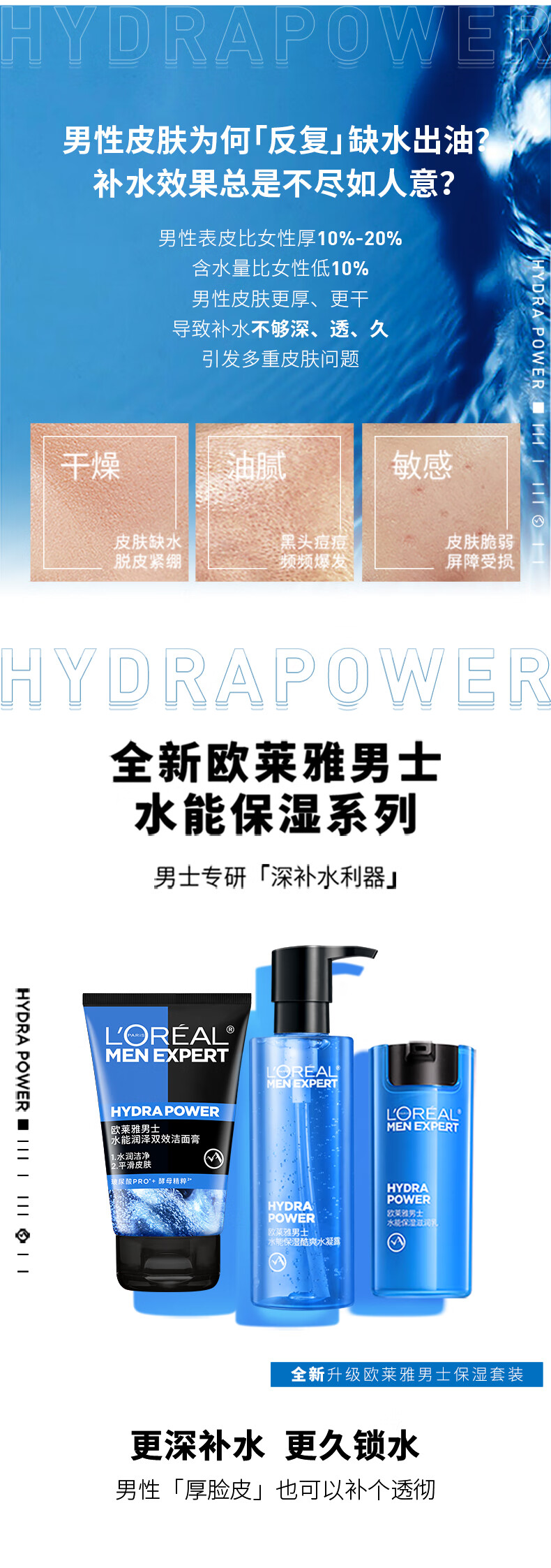 欧莱雅男士水能保湿洗面奶水乳三件套装补水护肤品生日新年礼物送男朋友