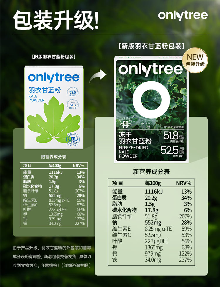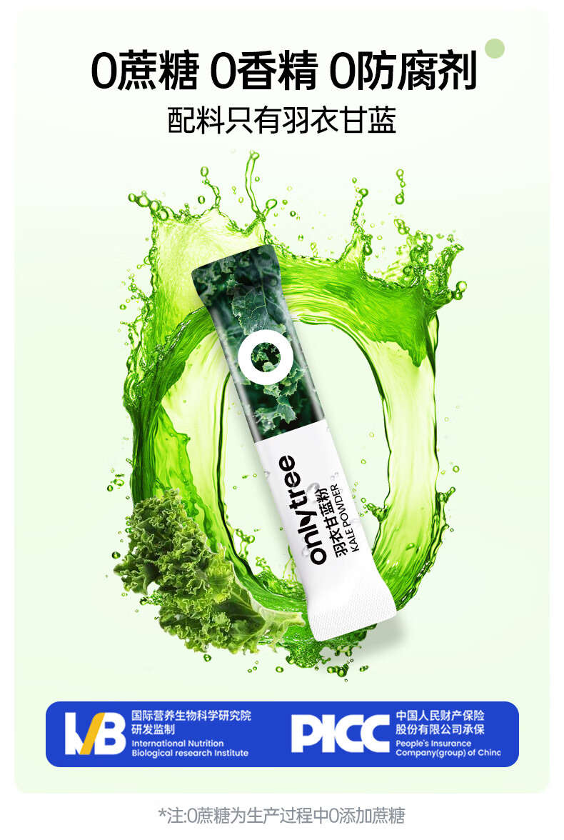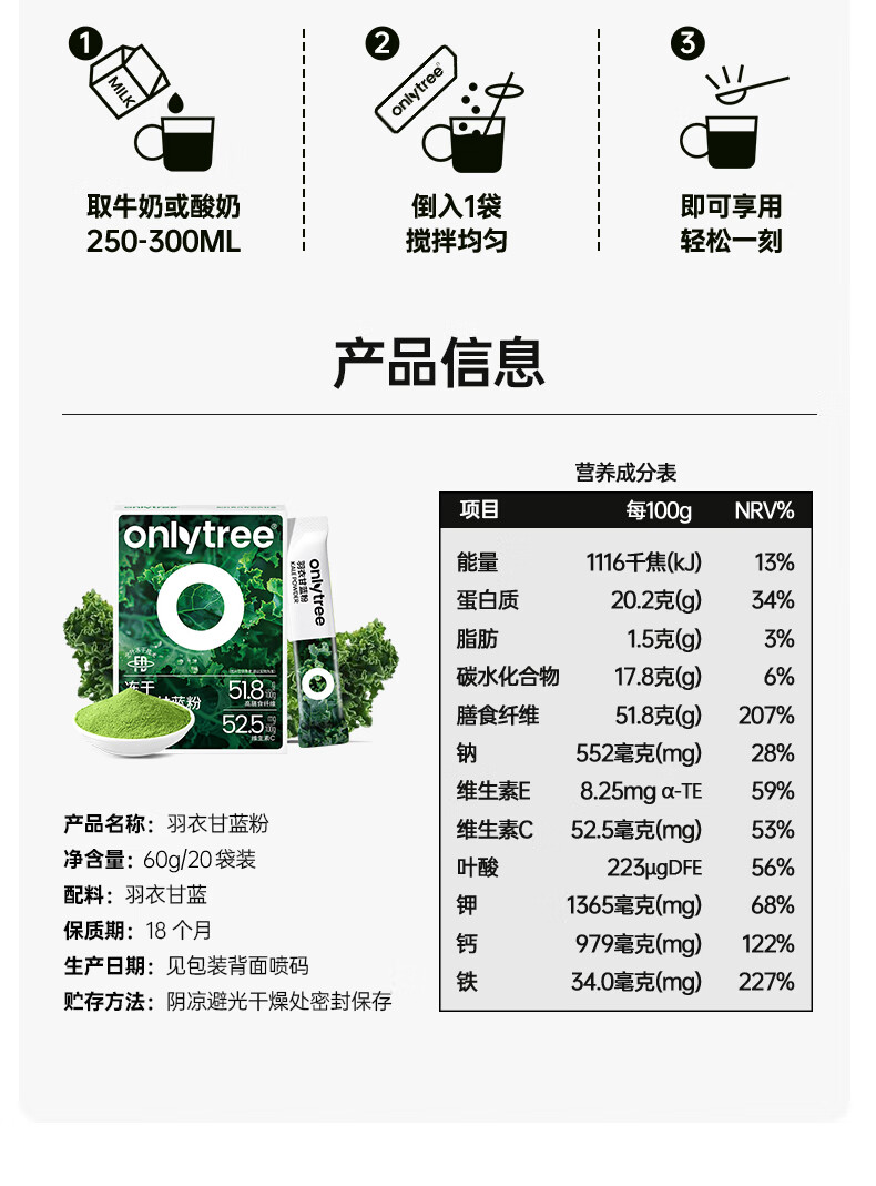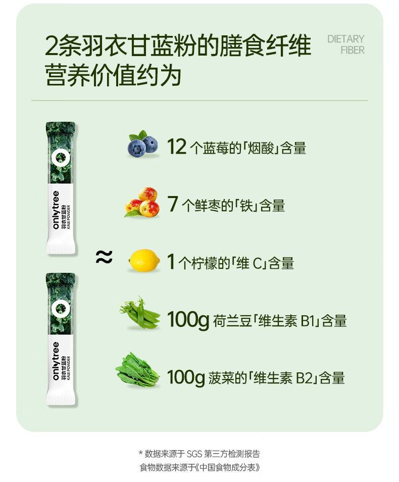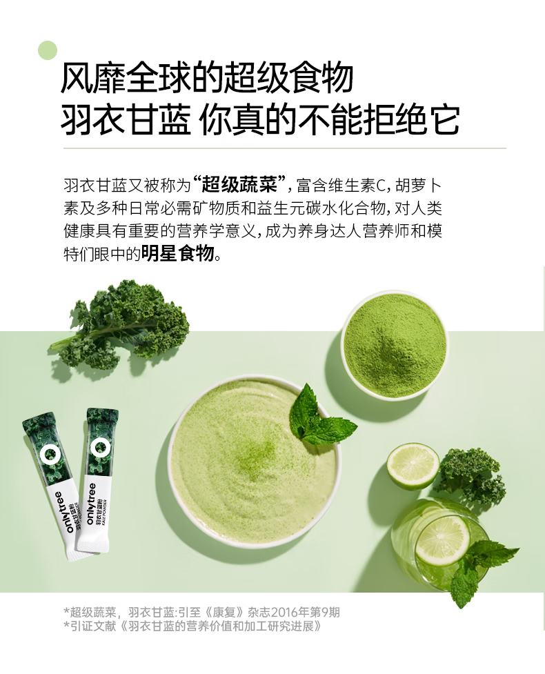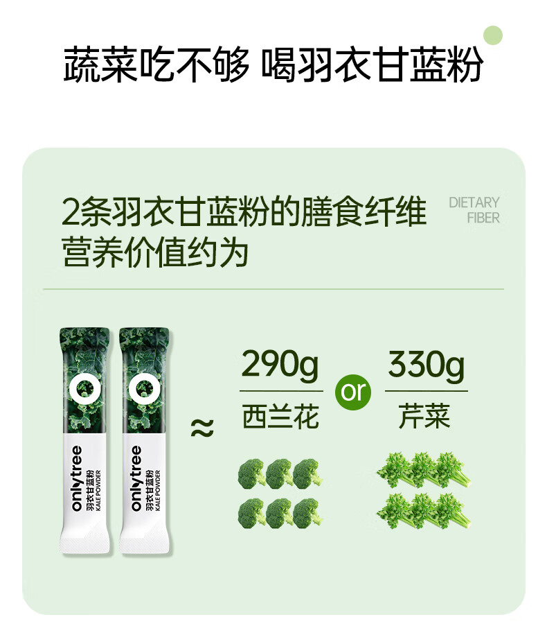 ONLYTREE有机纯冻干羽衣甘蓝粉青汁果蔬菜膳食纤维早餐冲饮代餐粉3g*20条