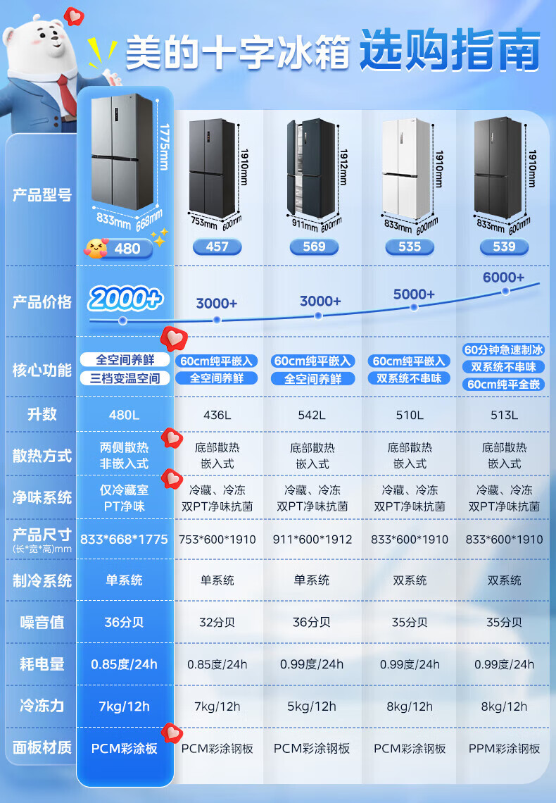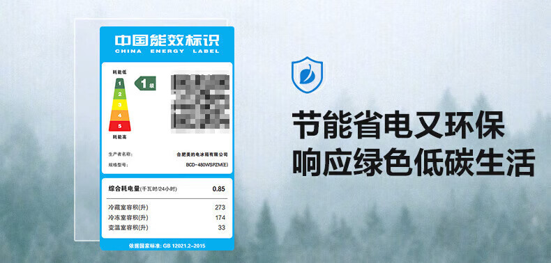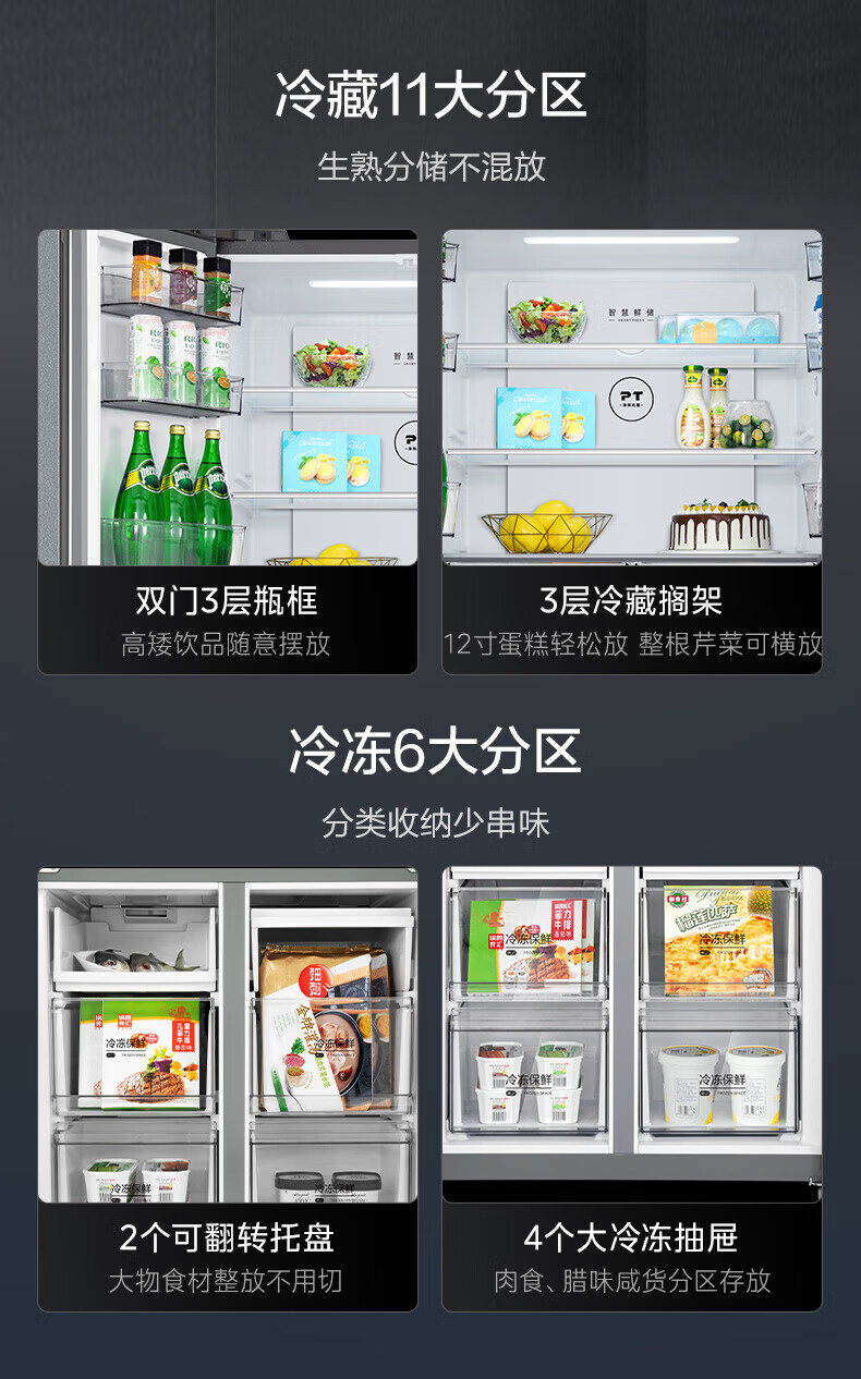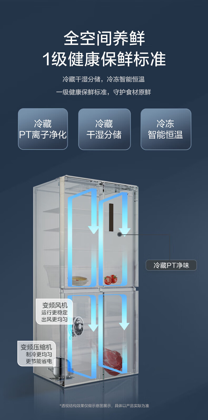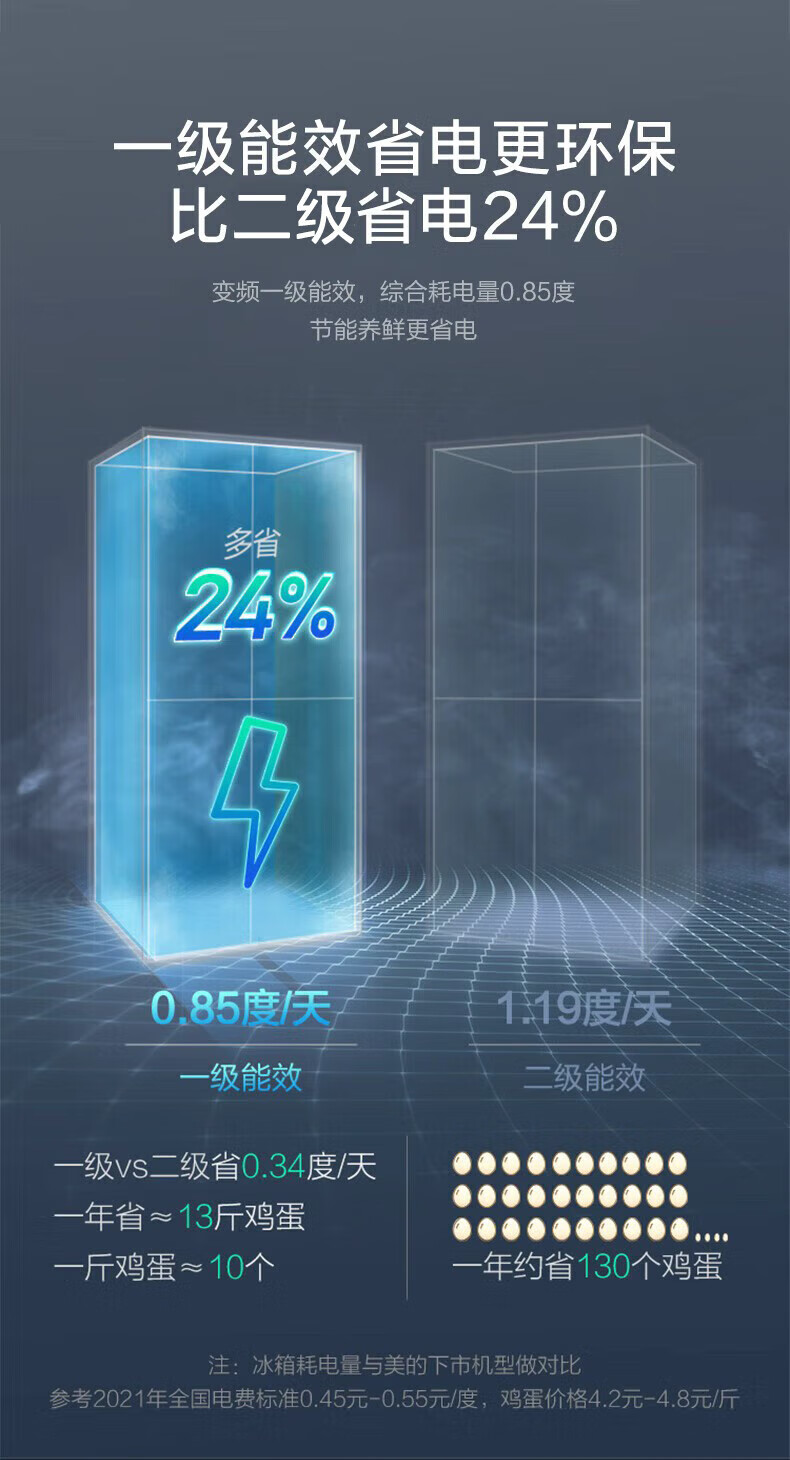 美的(Midea)慧鲜系列480升十字双对开四门冰箱 一级能效节能省电 风冷无霜大容量全空间保鲜 BCD-480WSPZM(E) 榭湖银